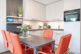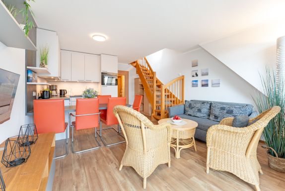 Machen Sie es ich im Wohnzimmer auf dem bequemen Sofa gemütlich, CD-Player und Radio bieten Unterhaltung und zum Abend entsteht hier bei Bedarf ein komfortabler Schlafplatz, Verdunklung ist vorhanden. Die offene Küche ist mit Annehmlichkeiten wie 4-Platten-Ceranherd, Backofen, Mikrowelle und Spülmaschine gut ausgestattet. Eins der separaten Schlafzimmer ist mit hochwertigem Doppelbett (2x 80x200 cm), Kleiderschrank und TV möbliert. Im zweiten separaten Schlafzimmer bietet ein Etagenbett zwei gemütliche Schlafplätze (je 90x200 cm), ein Kleiderschrank bietet Stauraum für die Urlaubsgarderobe und Verdunklung sorgt für erholsame Nächte. Das Badezimmer ist mit angenehmer Fußbodenheizung ausstaffiert, Dusche, Fön und Handtuchheizung bieten weiteren Komfort. Genießen Sie schöne Stunden auf Ihrem möblierten Balkon und lassen sich die herrliche frische Ostseeluft um die Nase wehen! Der WLAN-Anschluss ist für Sie inklusive. Für die kleinen Gäste steht ein Kinderhochstuhl im Objekt bereit.