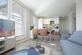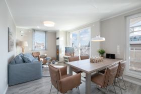 Verbringen Sie die schönste Zeit des Jahres in diesem luxuriösen Penthouse am Kurpark. Die 3-Zimmer-Wohnung verfügt über ca. 57 m² Wohnfläche, eine eindrucksvolle 60 m² große Dachterrasse mit Strandkorb und ist für bis zu 5 Personen geeignet.