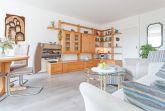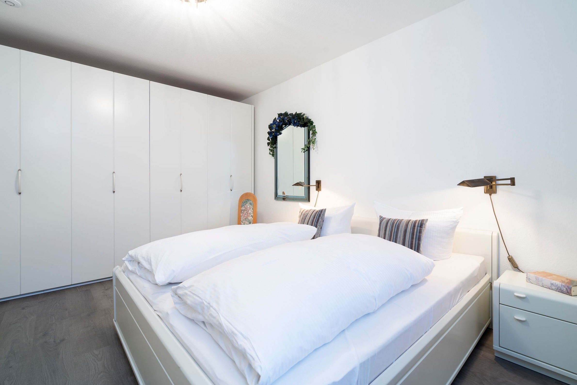 Es erwartet Sie ein großes, lichtdurchflutetes Wohnzimmer mit Essecke und gemütlicher Sitzgruppe sowie eine sehr gut ausgestattete Einbauküche mit Geschirrspüler, Herd, Backofen und Kühlschrank. Im Schlafzimmer steht ein großes Doppelbett-Boxspringbett (180x200 cm) für geruhsame Nächte zudem finden Sie hier reichlich Stauraum für Ihr Urlaubsgepäck. Durch Gardinen lässt sich das Schlafzimmer angenehm abdunkeln.