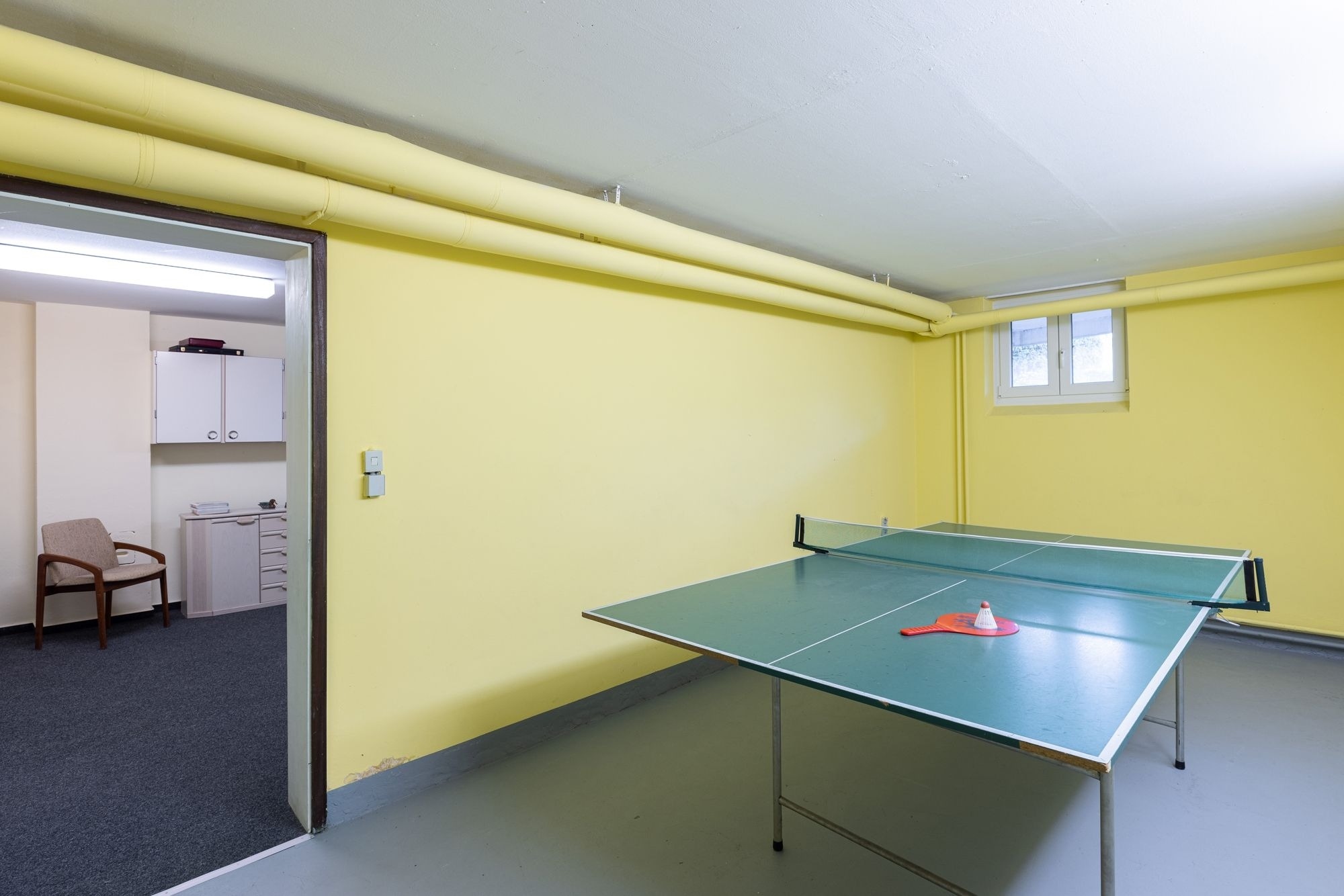 Ein PKW-Außenstellplatz ist für Sie reserviert. Im Keller steht zur Gemeinschaftsnutzung eine Tischtennisplatte zur Verfügung. Waschmaschine und Trockner sind gegen Gebühr nutzbar.