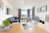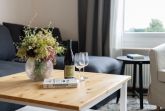 In der 6. Etage begrüßt Sie diese geschmackvolle 2-Zimmer-Ferienwohnung mit einem traumhaften seitlichen Meerblick. Hier können es sich auf ca. 45 m² bis zu 4 Personen gemütlich machen. Bis ins 5. Obergeschoss können Sie bequem den Fahrstuhl nehmen und anschließend führt Sie eine Treppe ins 6. Obergeschoss zu Ihrem Feriendomizil.