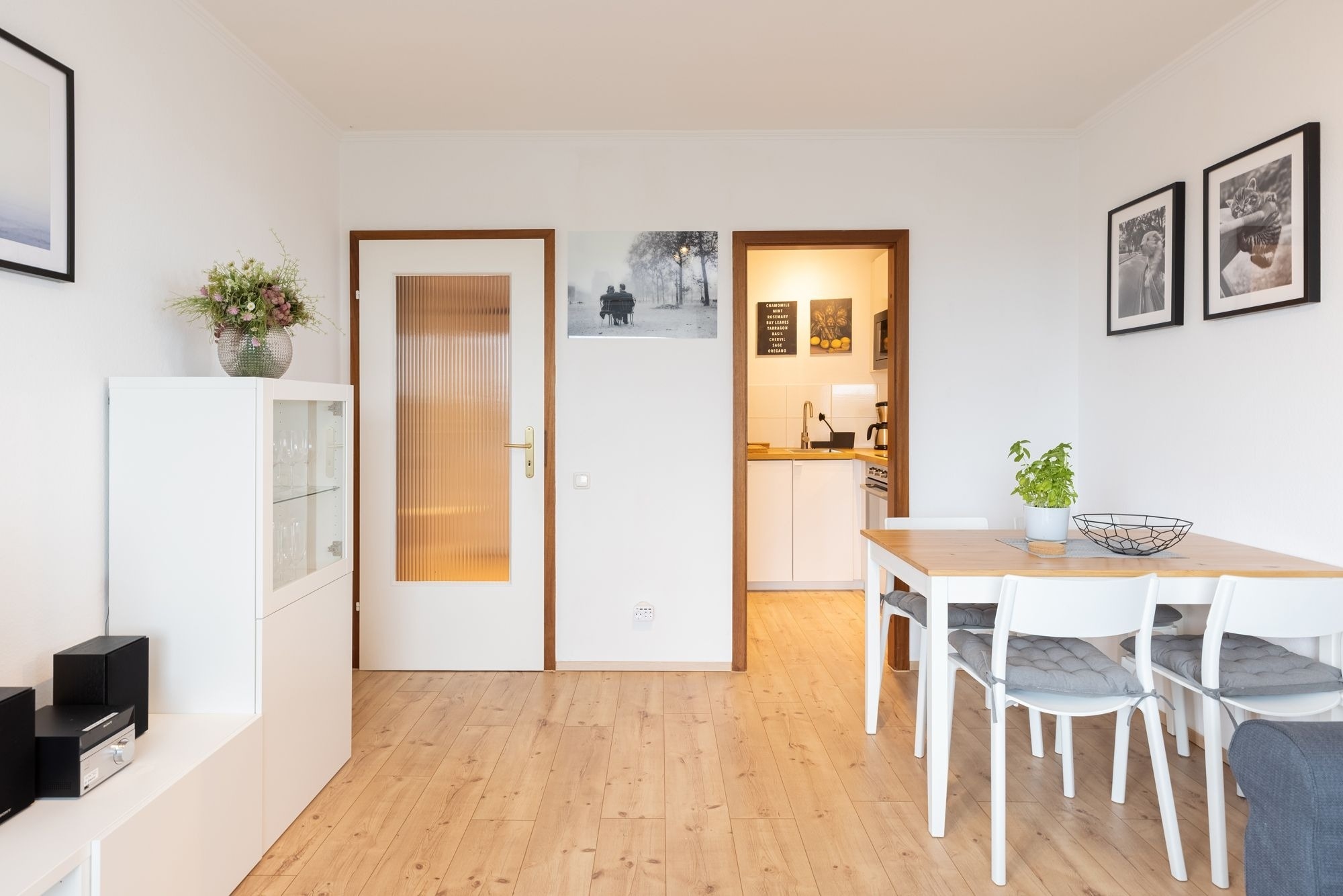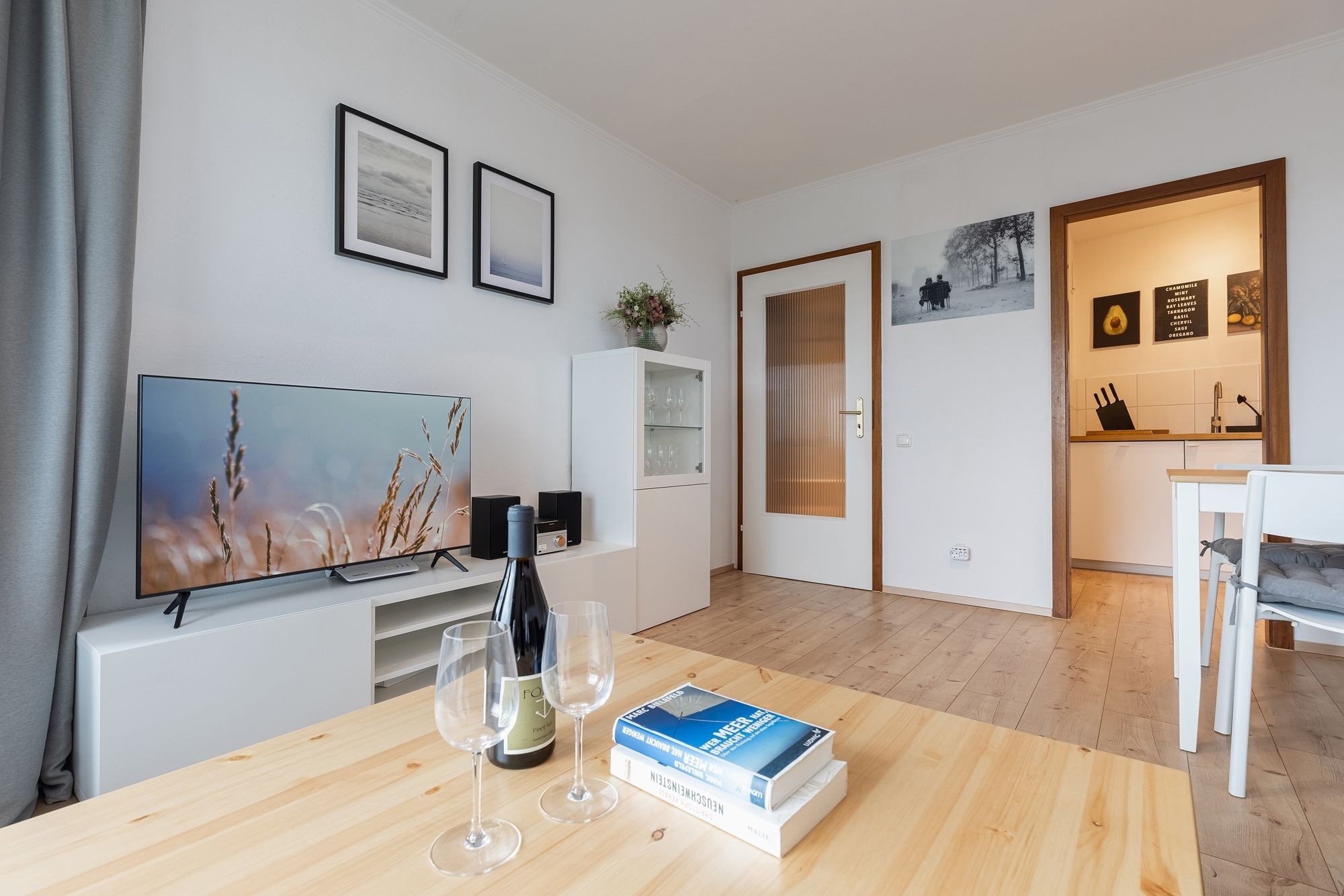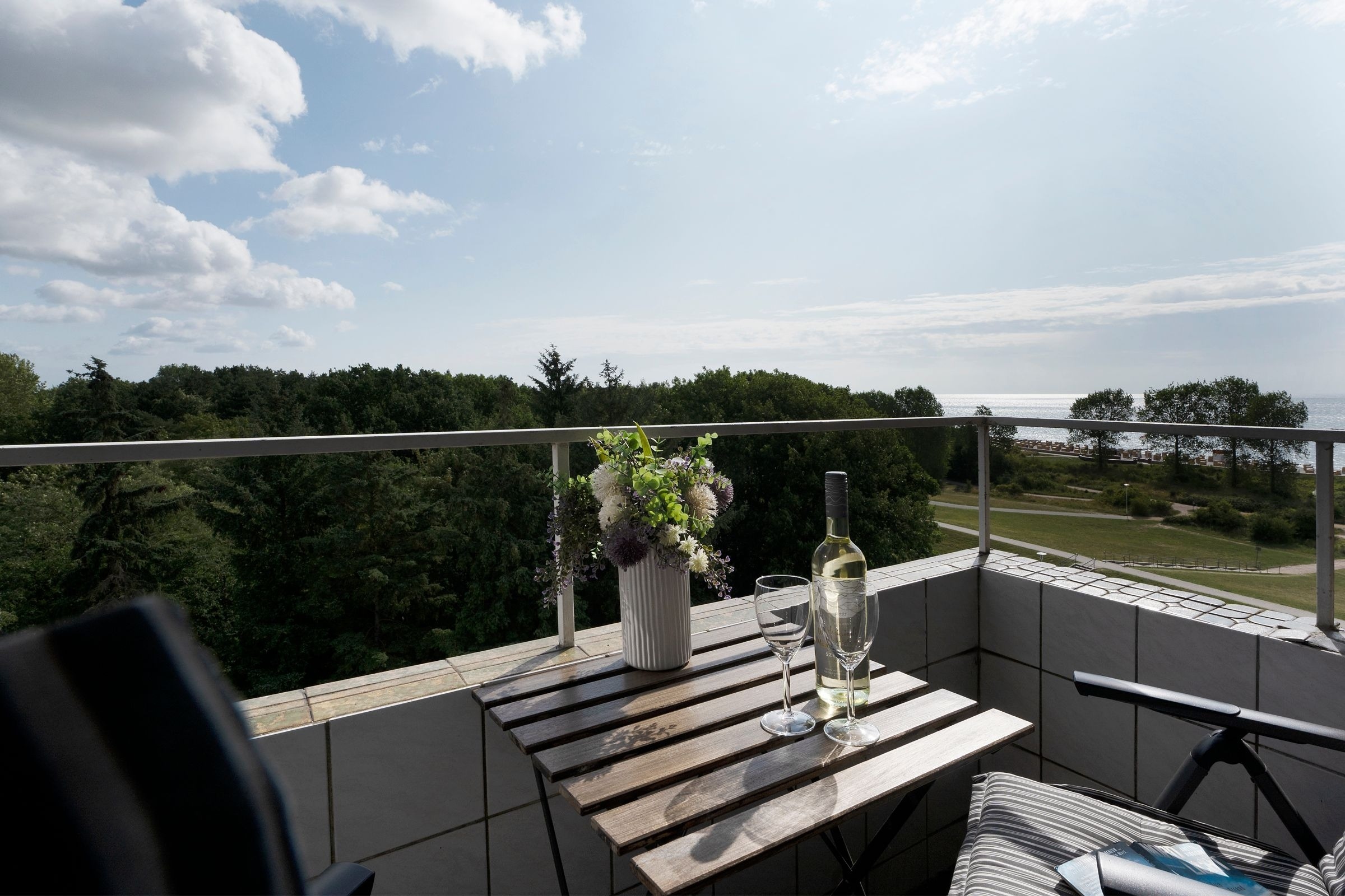 Zum Verstauen Ihrer Urlaubsgarderobe befindet sich im kleinen Flur ein praktischer Einbauschrank. Fühlen Sie sich sofort zu Hause und legen Sie nach einem langen Strandtag auf dem kuscheligen Ecksofa die Füße hoch. Abends bietet es dann nach wenigen Handgriffen mit einer Liegefläche von 140x200 cm Platz zum Träumen und Entspannen. Auf dem niedlichen Balkon mit seitlichem Meerblick hören Sie das entspannte Rauschen der Ostsee und können in Ihrer mitgebrachten Urlaubslektüre schmökern. Über den kostenlosen WLAN-Anschluss können Sie erste Urlaubseindrücke mit den Daheimgebliebenen teilen. Bevor Sie Grömitz erkunden oder sich zum Strand auf machen, decken Sie morgens den Frühstückstisch und bereiten Sie in der modernen Küche für Ihre Lieben ein leckeres Frühstück vor. Hier finden Sie auf kleinem Raum alles, was Sie brauchen. Im Schlafzimmer mit bequemem Doppelbett (2x 90x200 cm) können Sie dann traumhaft schlafen und neue Kraft tanken. Ein Kleiderschrank darf natürlich nicht fehlen. Das hell geflieste Badezimmer mit Dusche rundet die Ausstattung dieser schönen Ferienwohnung ab.
