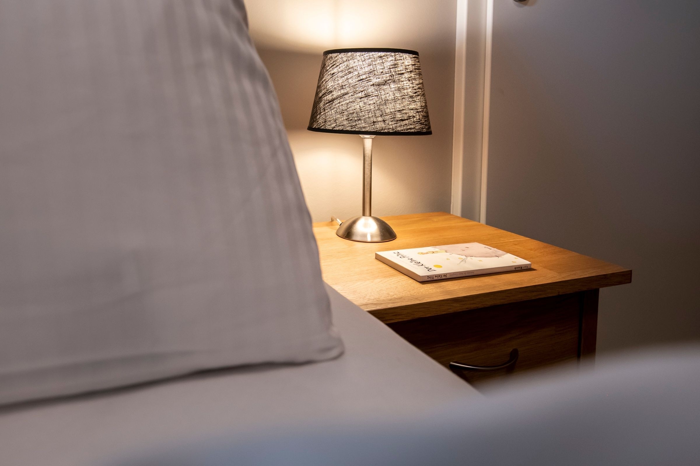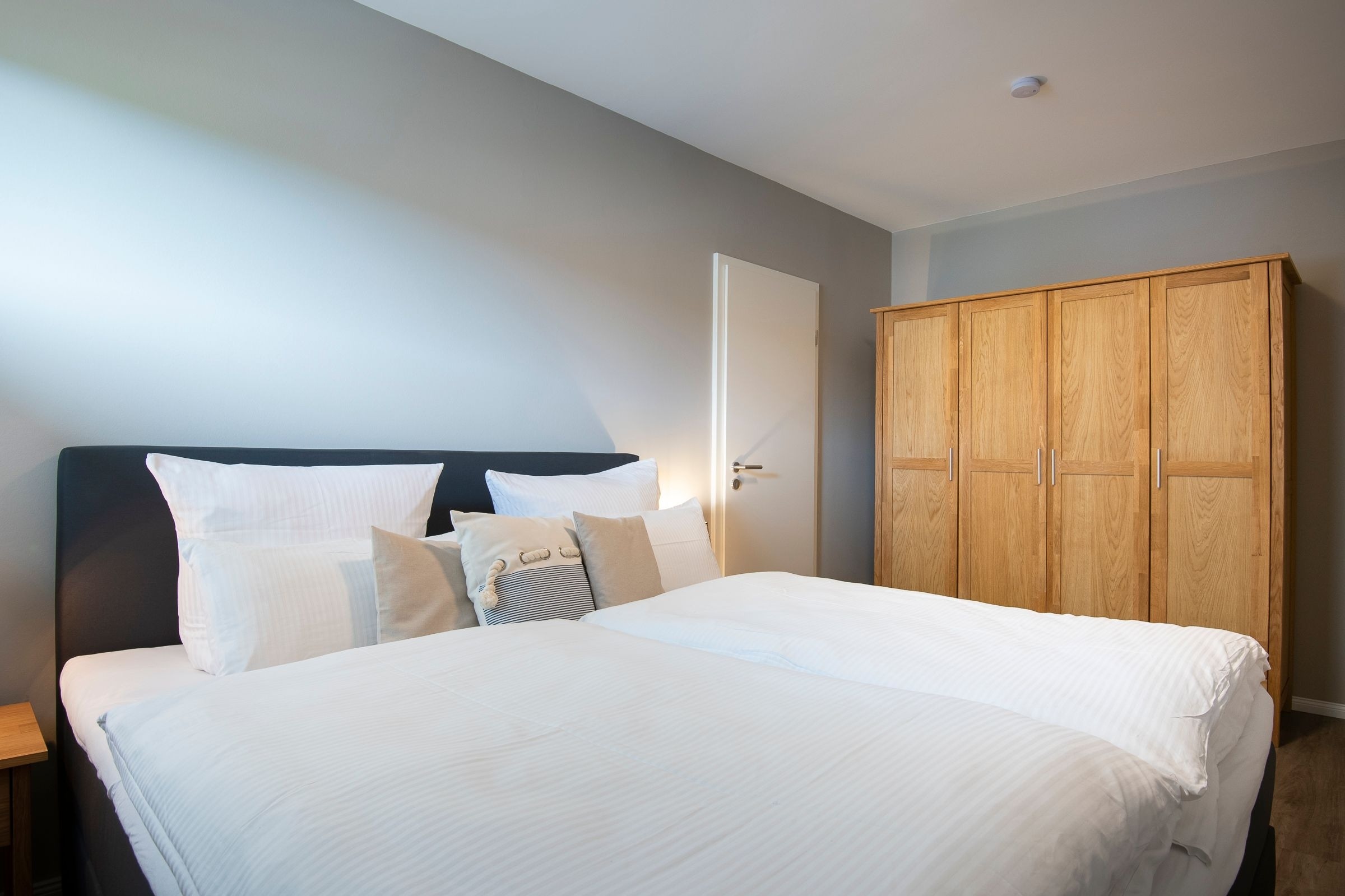 Schlafzimmer: 1 Boxspring-Doppelbett (180x200 cm), Kleiderschrank, Verdunkelung (Vorhänge und Plissee), TV