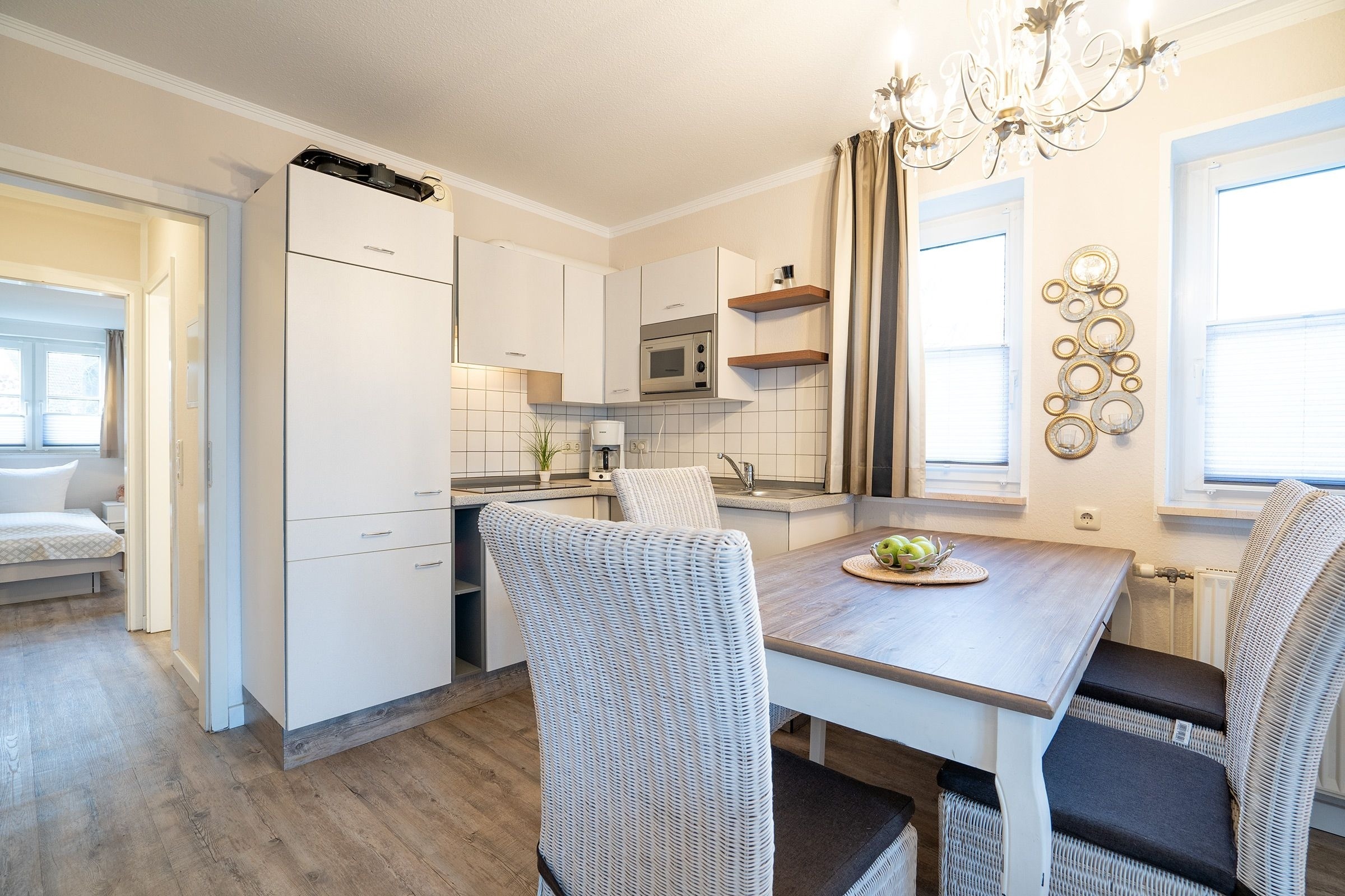 Die Ferienwohnung verfügt über 3 Zimmer auf 2 Ebenen und bietet auf ca. 54m² Platz für bis zu 4 Personen.