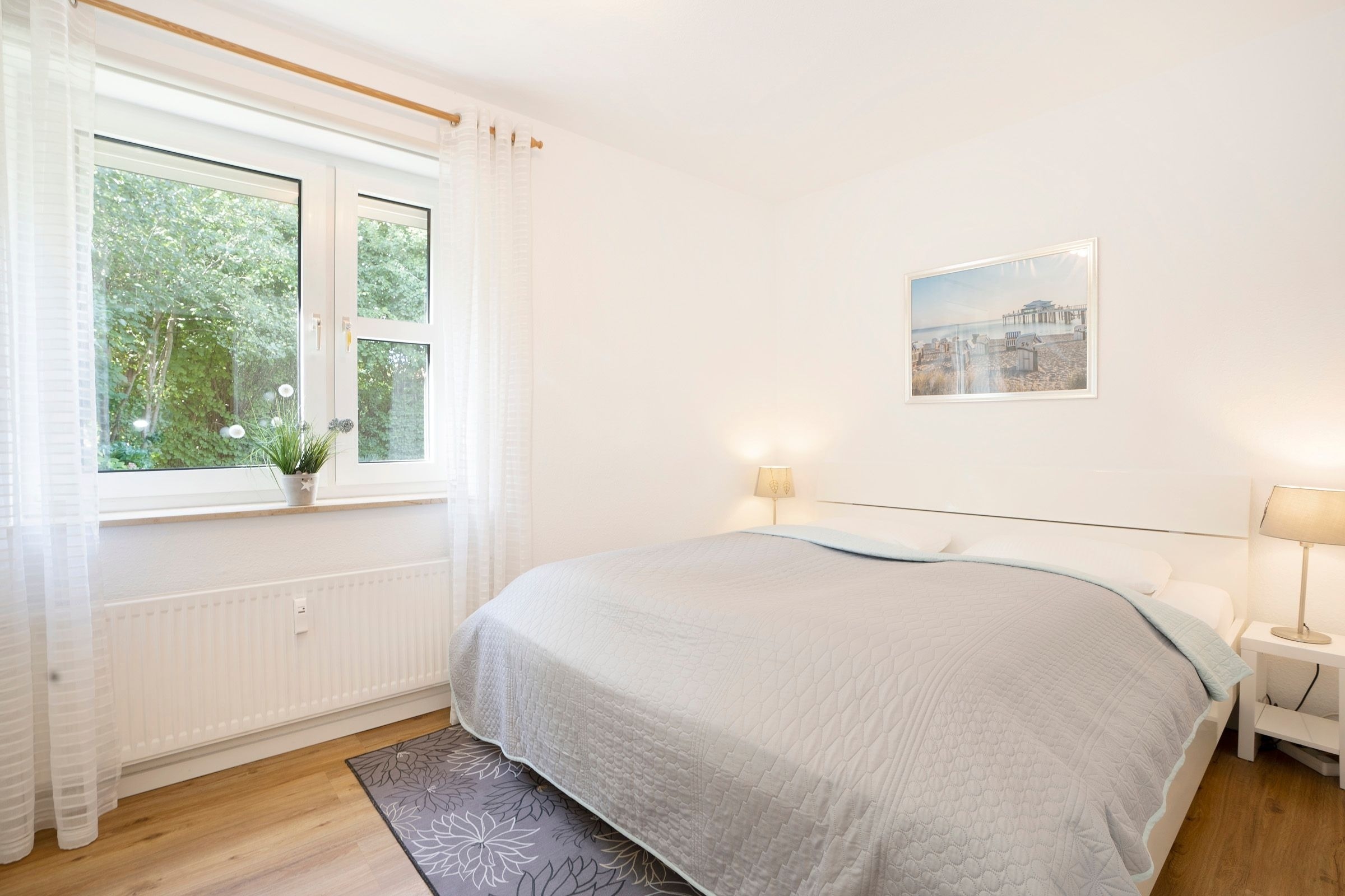 Schlafzimmer: 1 Doppelbett (2x 90x200 cm), Kleiderschrank, Verdunkelungsmöglichkeit (Rollläden)