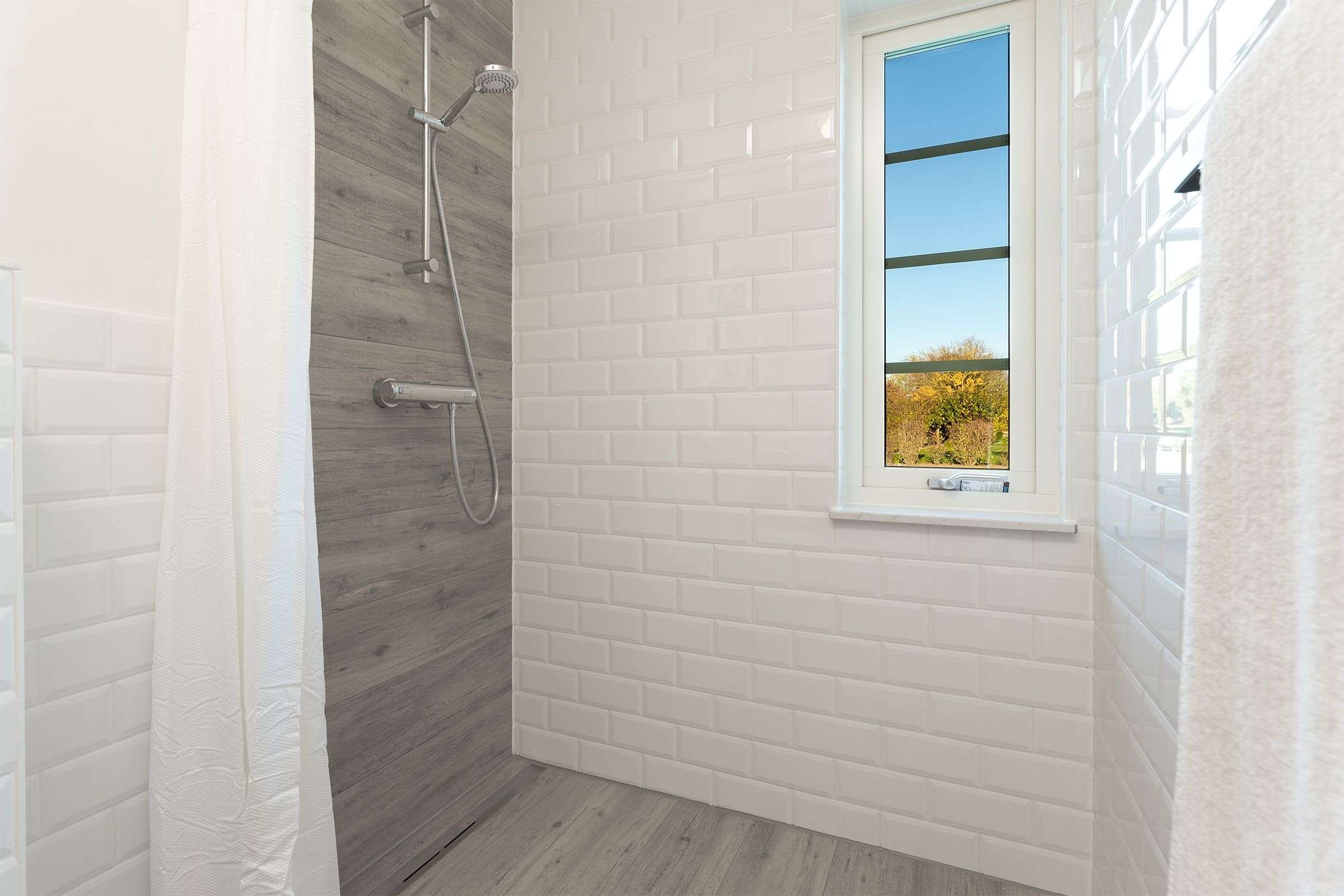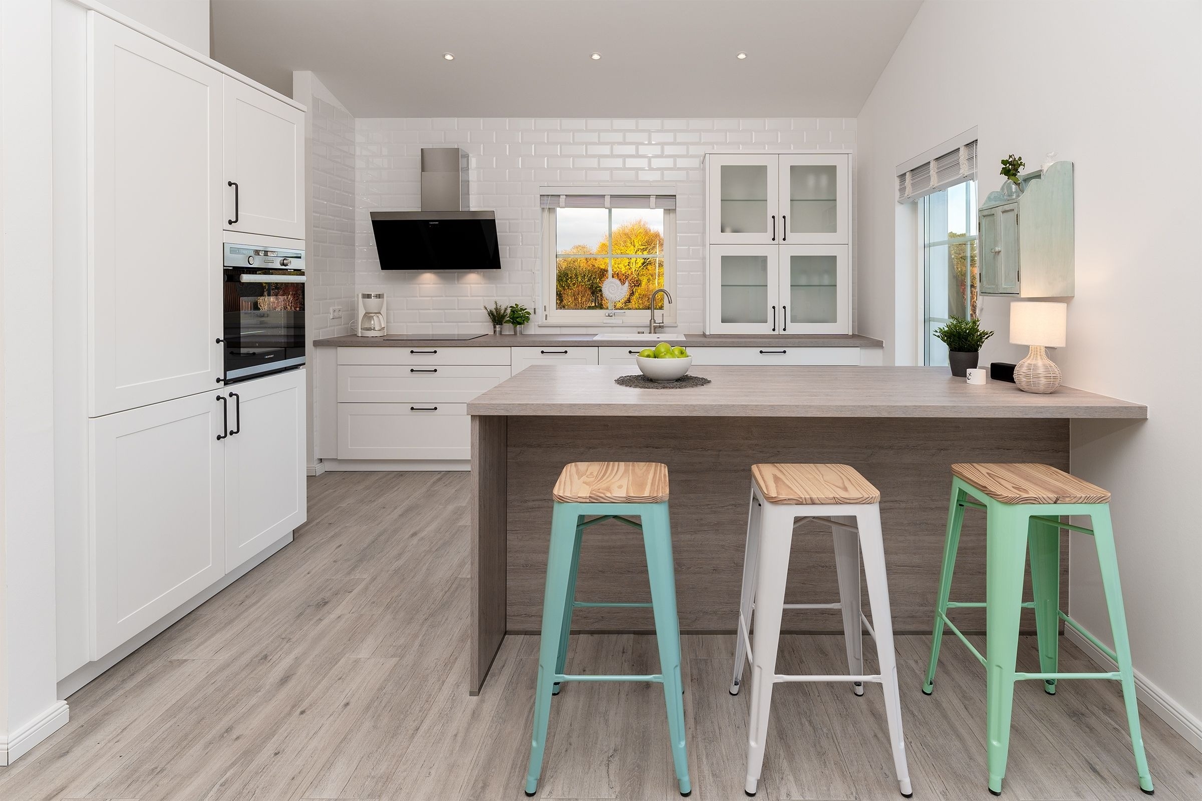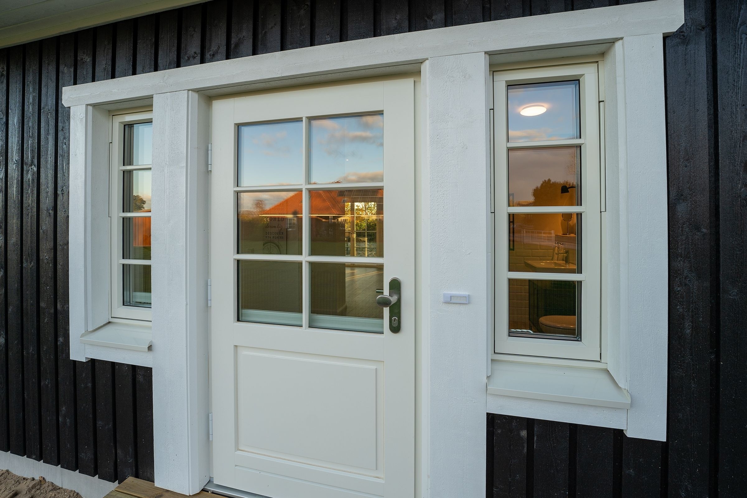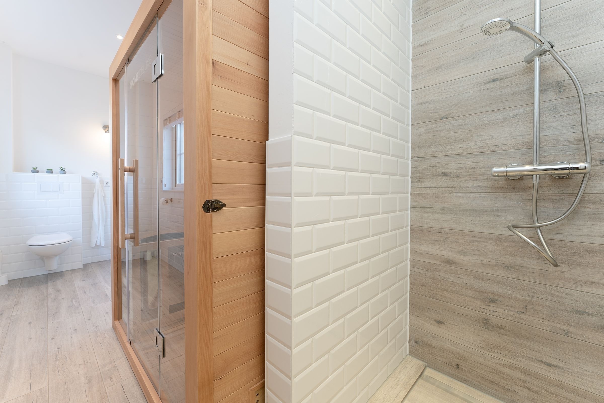 Das Ferienhaus aus Holz empfängt Sie in skandinavischem Stil mit einem offenen Wohnraum mit hoher Decke. Die geschmackvolle Einrichtung und das gemütliche Sofa laden direkt zum Entspannen ein. Während hier ein Teil der Mitreisenden auf dem Sofa das flackernde Feuer im Kaminofen beobachtet, können sich weitere Gäste in der offenen Küche mit angrenzendem Tresen auf den Urlaub einstimmen. Für die nächtliche Erholung gibt es drei Schlafzimmer, eines mit einem Boxspringdoppelbett (180x200 cm), eines mit normalem Doppelbett (140x200 cm) und eines mit einem Etagenbett (2x 80x200 cm) und eigenem TV-Gerät. Für den frischen Start in den Tag stehen zwei Tageslicht-Bäder zur Verfügung, die jeweils mit offener Dusche und Fußbodenheizung begeistern. Als besonderes Highlight gibt es eine eigene Sauna im Haus. Der Außenbereich lässt mit Süd-Ost-Terrasse, Gartenmöbeln und Sonnenliegen keine Wünsche offen. Die Terrasse ist überdacht, sodass Sie bei jeder Wetterlage die frische Luft genießen können.