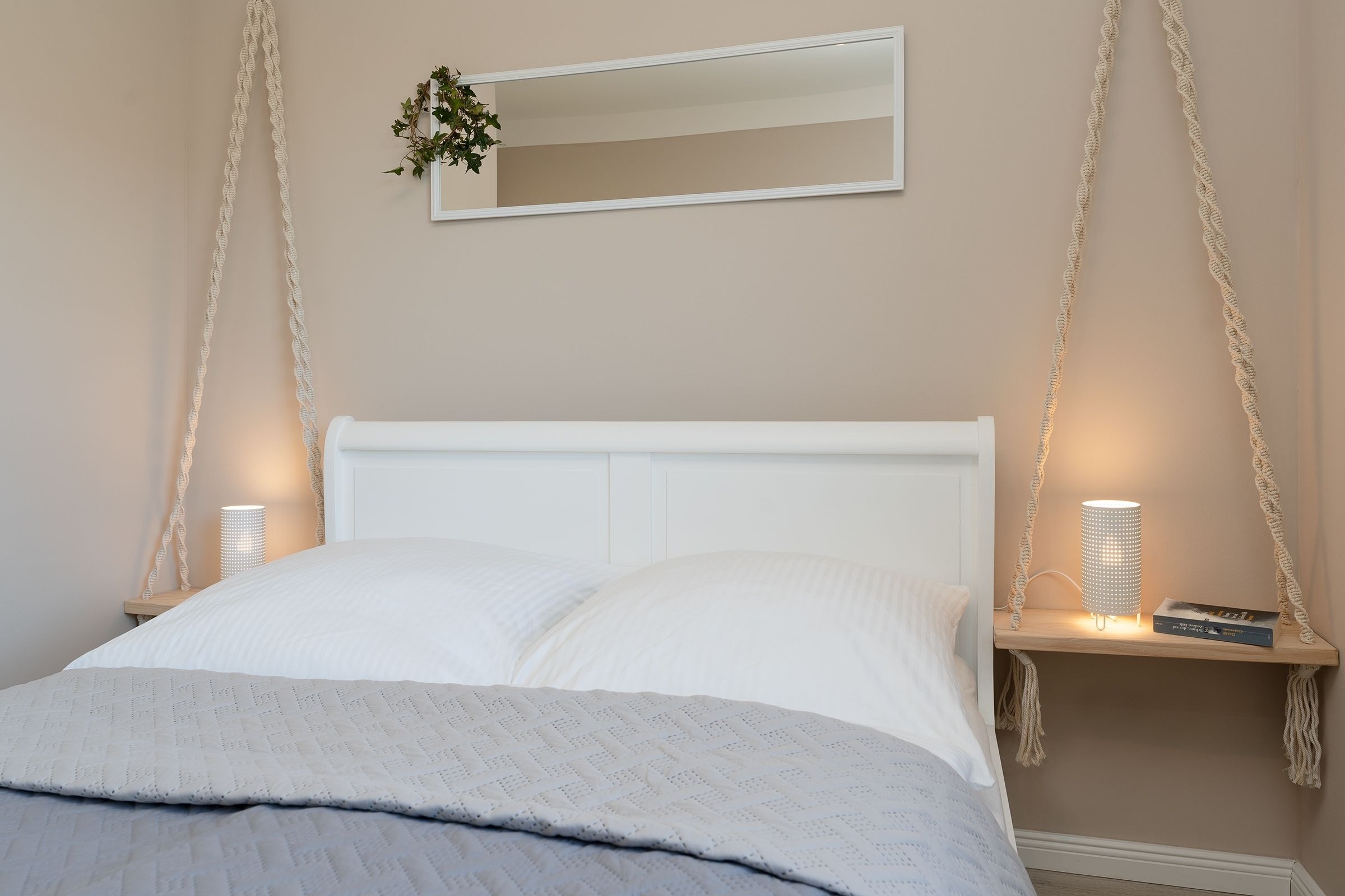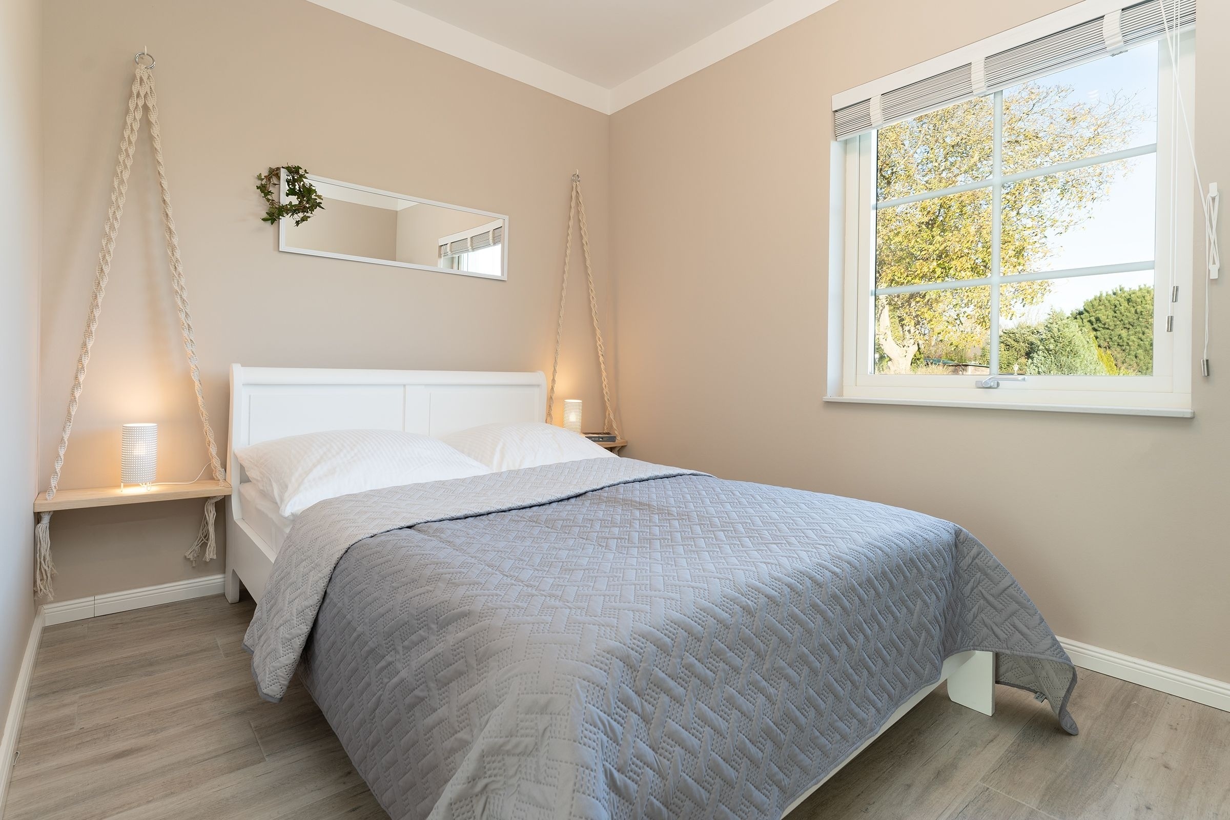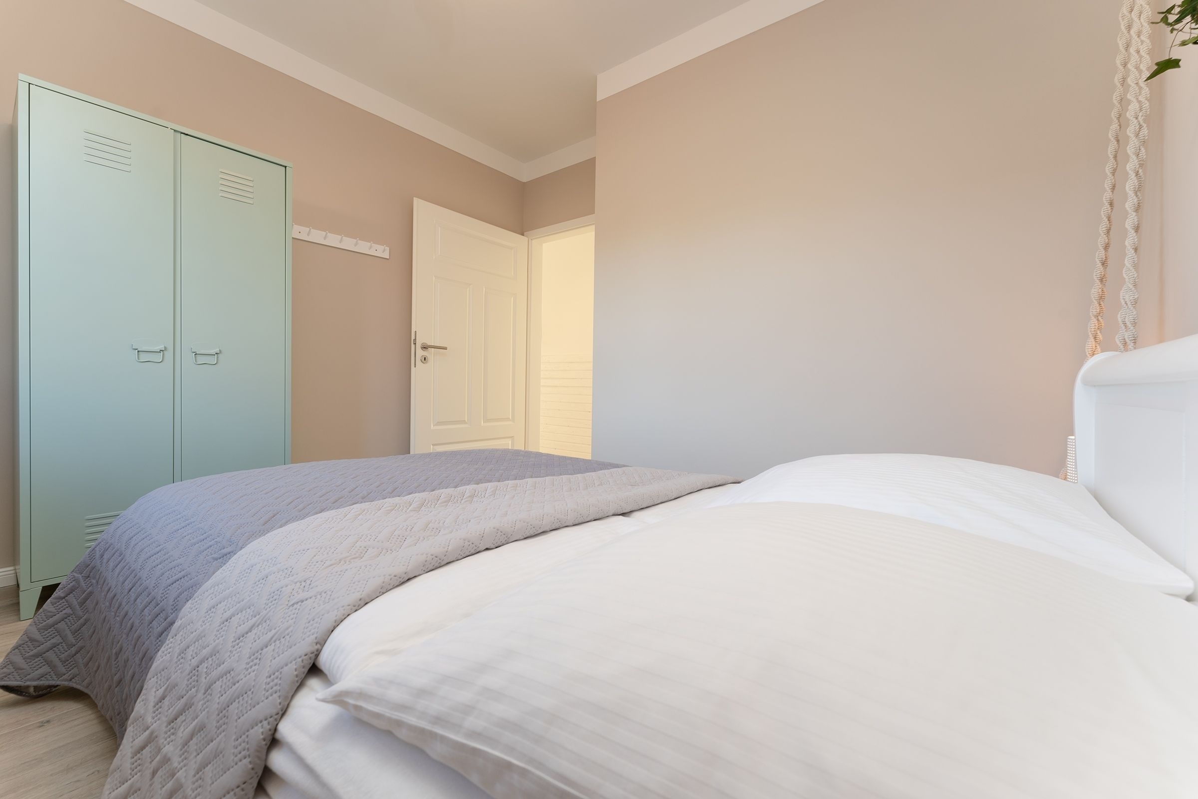 Schlafzimmer 1: 1 Boxspring-Doppelbett (180x200 cm), Kleiderschrank, Verdunkelung (Holzjalousien), Platz für Babybett