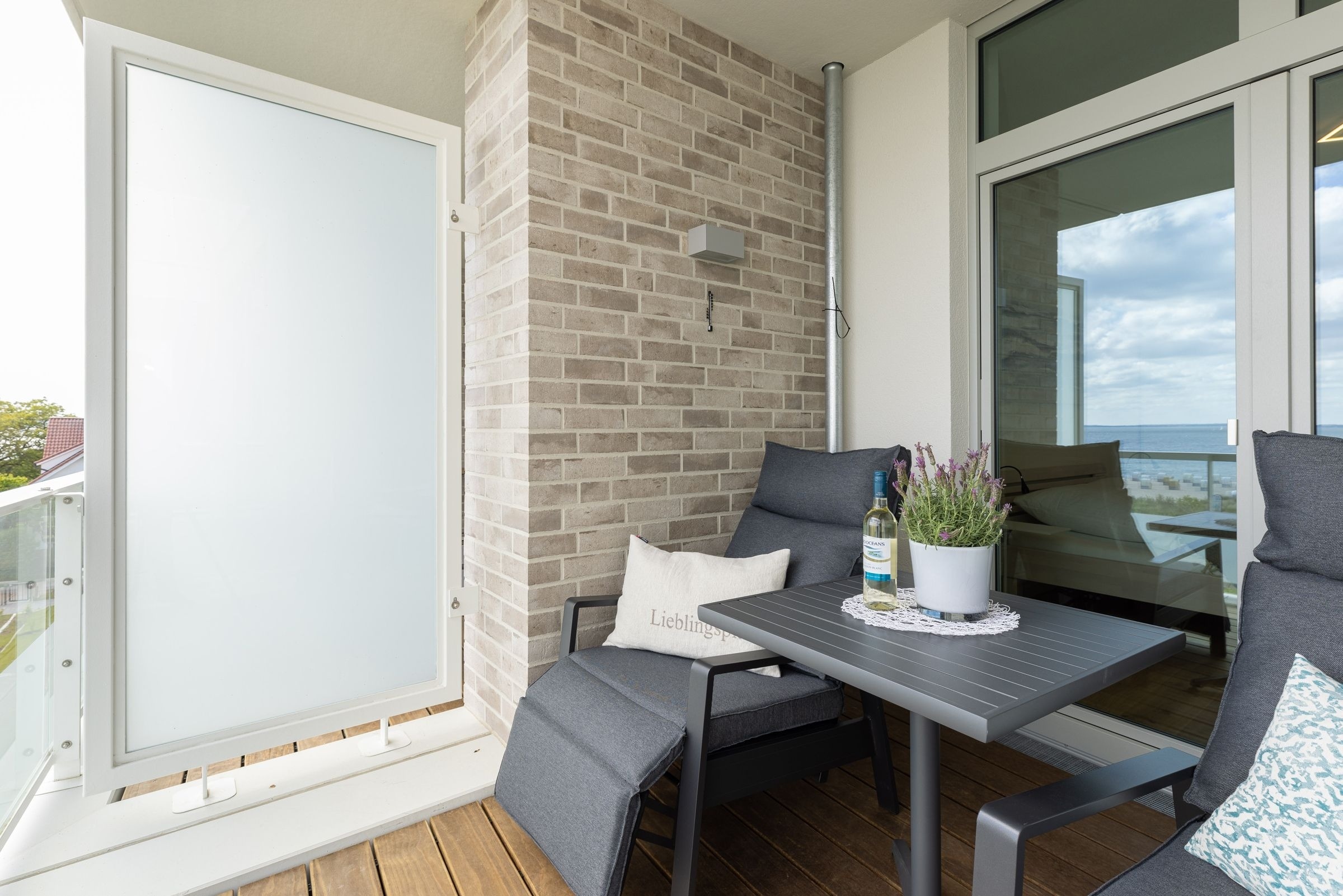Diese modern eingerichtete 2-Zimmer-Ferienwohnung begrüßt bis zu 3 Personen auf ca. 55 m² Wohnfläche. Der Balkon bietet Ihnen einen unvergesslichen Meerblick.