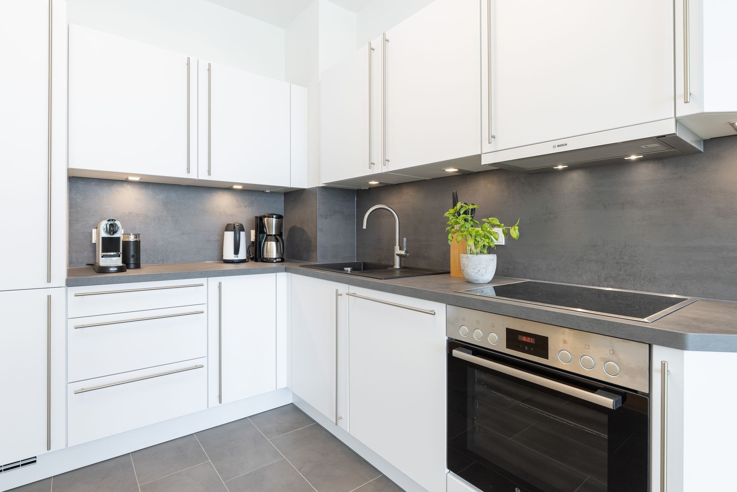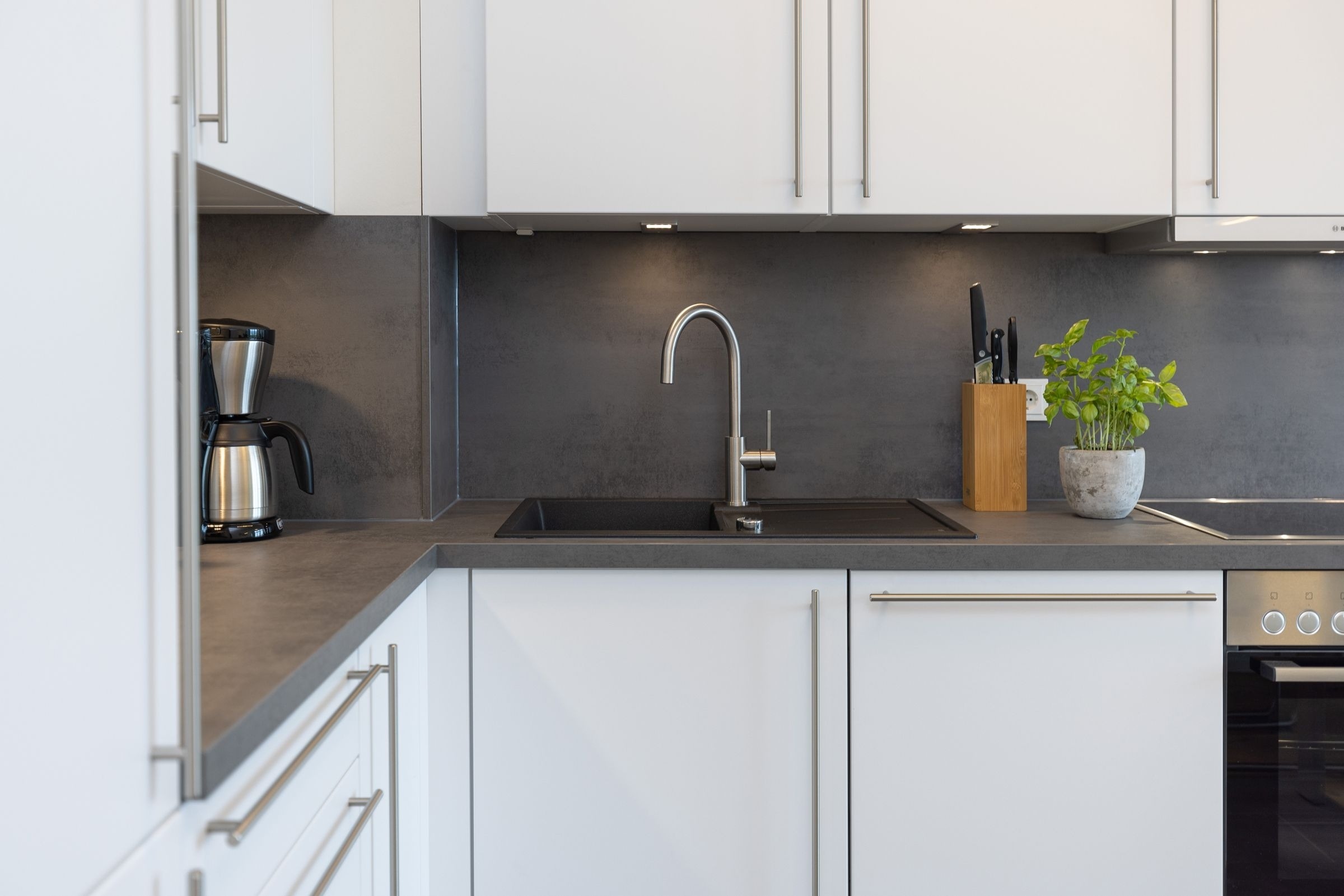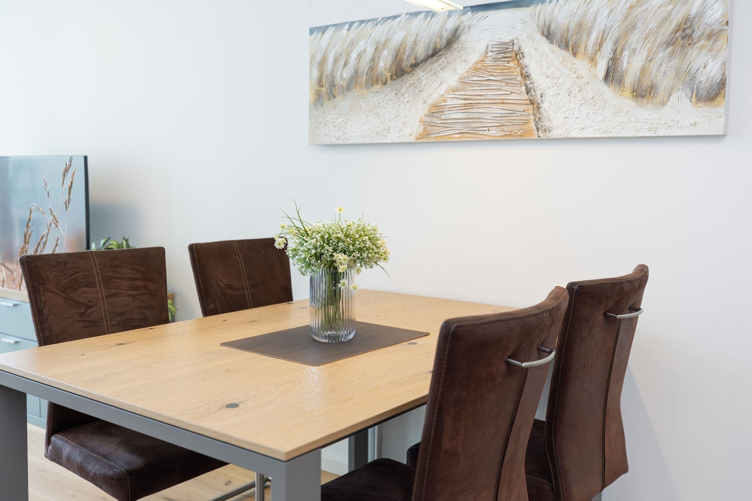 Der kombinierte Wohn- und Essbereich ist stets lichtdurchflutet und grenzt offen an die voll ausgestattete Küchenzeile. Unmittelbar vor der großen Fensterfront mit Blick auf die Ostsee steht Ihnen ein komfortables Sofa (Schlafmöglichkeit, 140x200 cm) mit Sichtschutzplissees zur Verfügung. Ein großer Flachbildfernseher sorgt für Unterhaltung. Das separate Schlafzimmer mit Doppelbett (2x 90x200 cm), Verdunkelungsgardinen und Kleiderschrank bietet Ihnen ebenfalls Zugang zum Balkon. Das innenliegende Badezimmer erwartet Sie mit WC, bodengleicher Dusche und beheizbarem Handtuchhalter. Viele erholsame Stunden können Sie auf dem überdachten, möblierten Balkon verbringen und dabei den Ausblick auf die Ostsee genießen. Den Gästen im Eichenhain steht außerdem ein gemeinschaftlich genutzter Garten inklusive Sandspielplatz zur Verfügung.