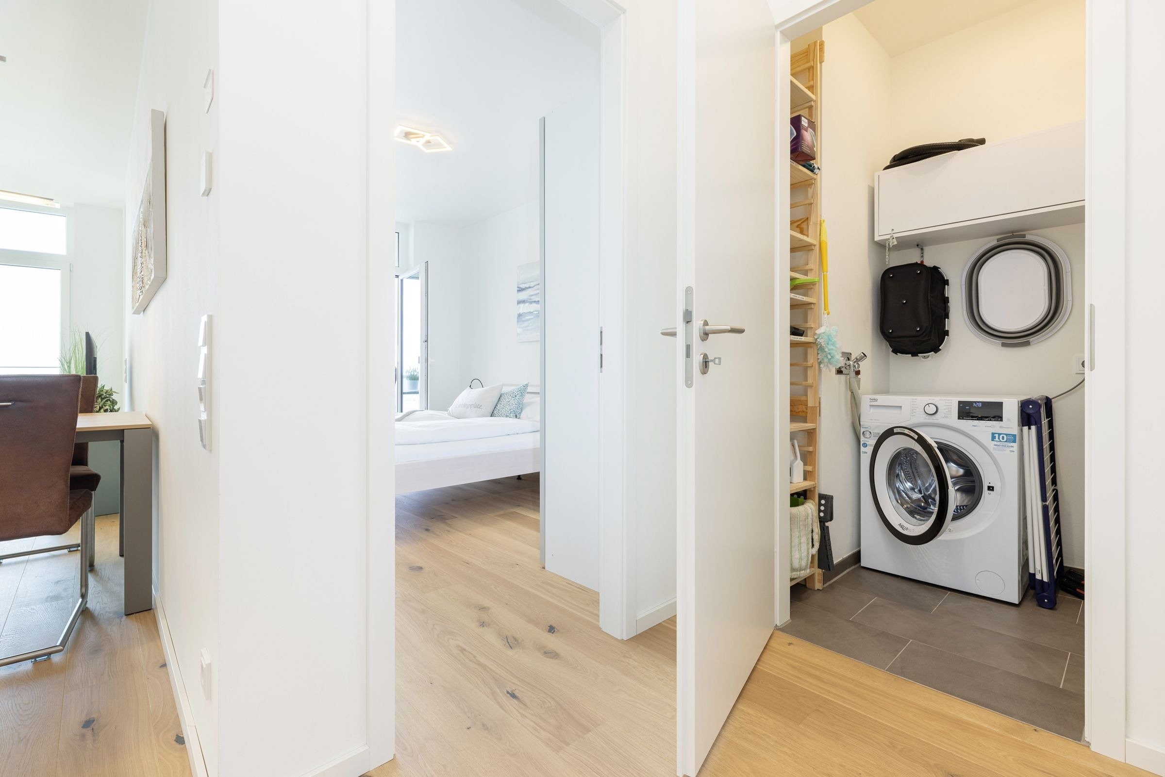 Ein PKW-Außenstellplatz ist für Sie reserviert. Für mitgebrachte Fahrräder ist ein gemeinschaftlicher Fahrradkeller vorgesehen. Eine Waschmaschine steht Ihnen zur Eigennutzung zur Verfügung.
