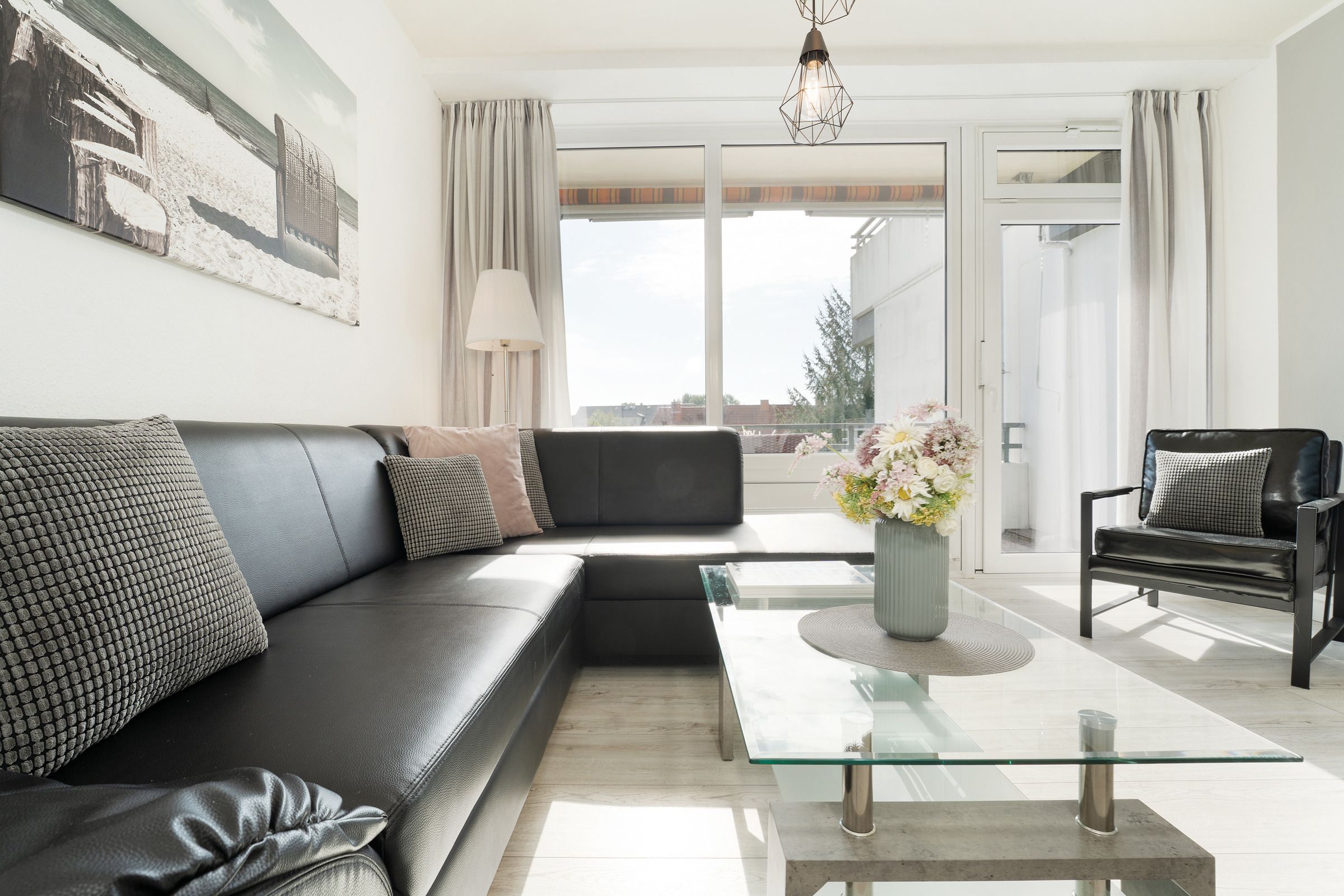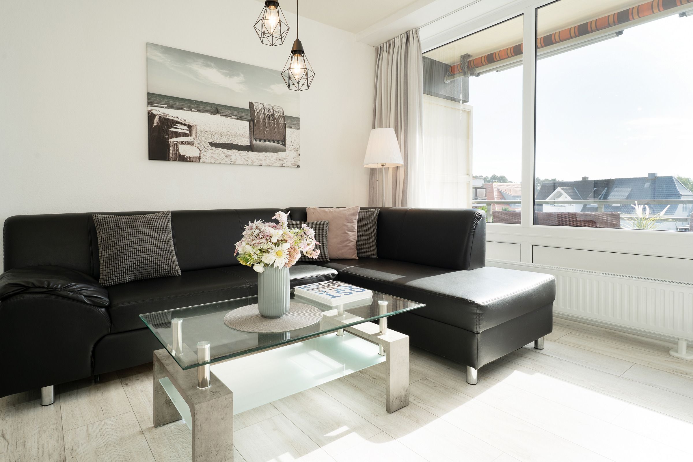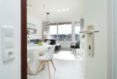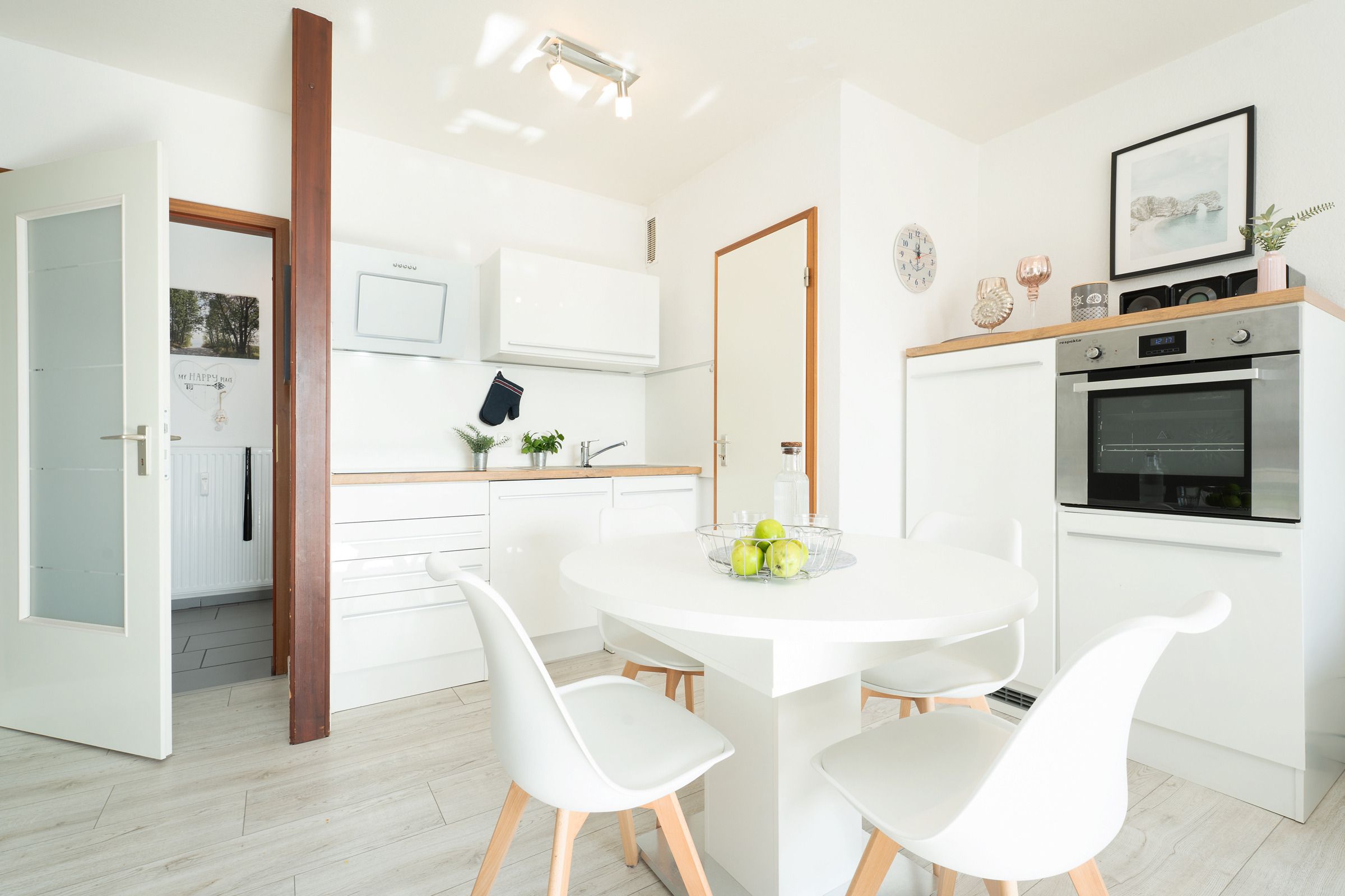 Durch den Eingang gleich rechts erreichen Sie den hellen, stets lichtdurchfluteten Wohnbereich mit Sofa und Flachbildfernseher. Der Esstisch bietet bequem Platz für die ganze Familie. Vom Wohnbereich aus gelangen Sie auf den möblierten Balkon mit Süd-Ost-Ausrichtung. In der voll ausgestattete Küche können Sie köstliche Mahlzeiten zubereiten. Das separate Schlafzimmer ist mit einem Doppelbett (2x 90x200cm), einem weiteren TV sowie einem Kleiderschrank ausgestattet und lässt sich zur Nacht angenehm abdunkeln. Genießen Sie den Komfort im hellgefliesten Badezimmer mit Dusche und beheizbaren Handtuchhalter.