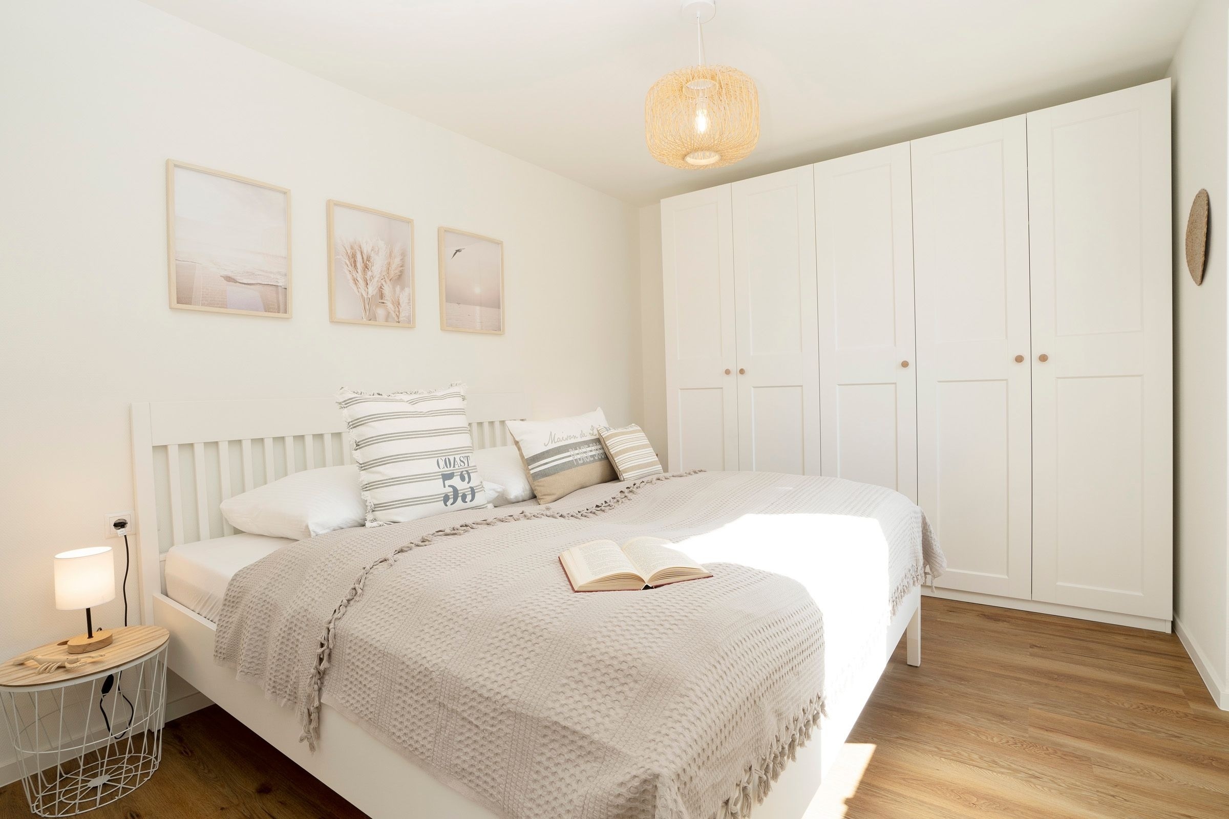 Schlafzimmer: 1 Doppelbett (2x 90x200 cm), Kleiderschrank, TV, Verdunkelung: Gardinen, Platz für Babybett vorhanden
