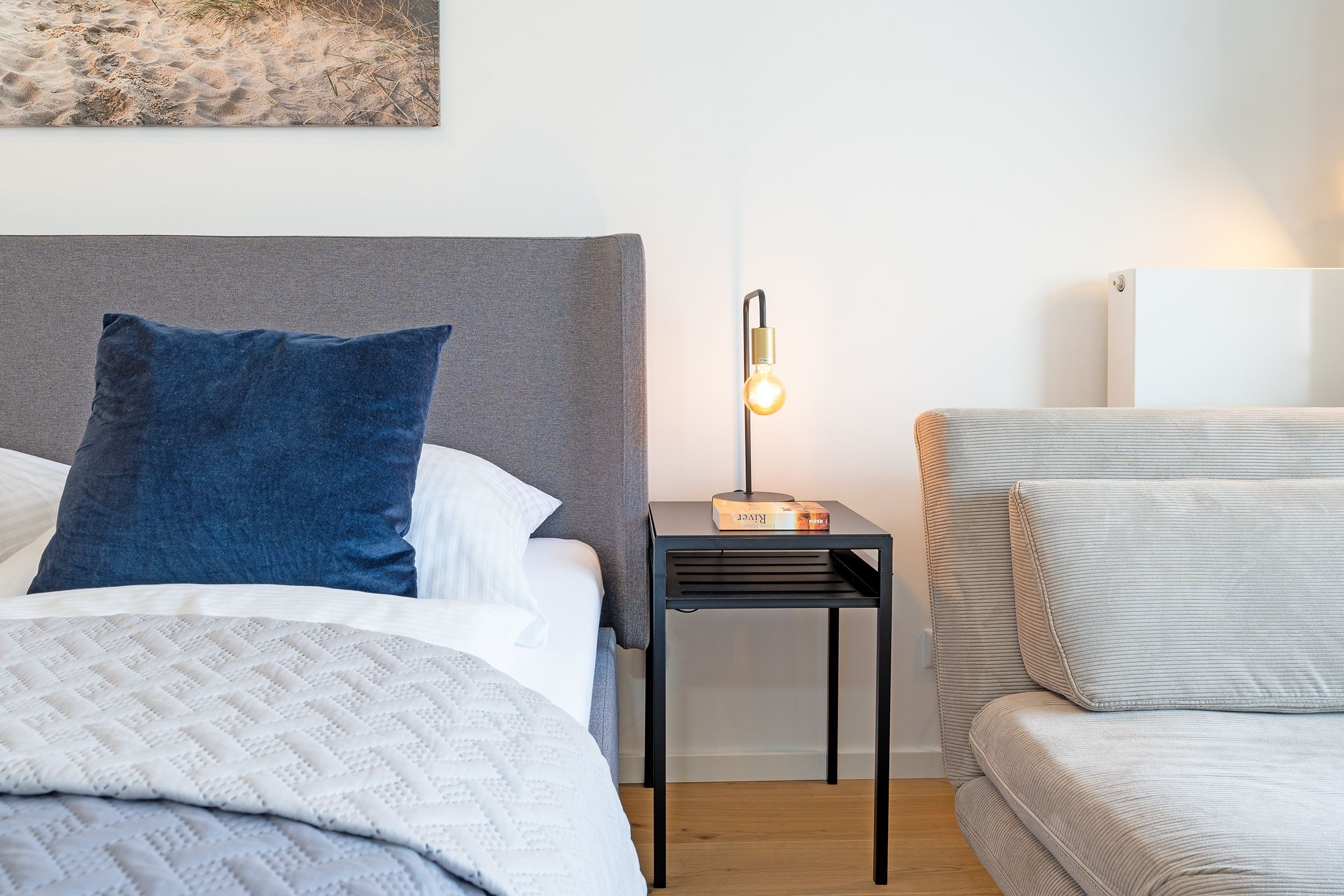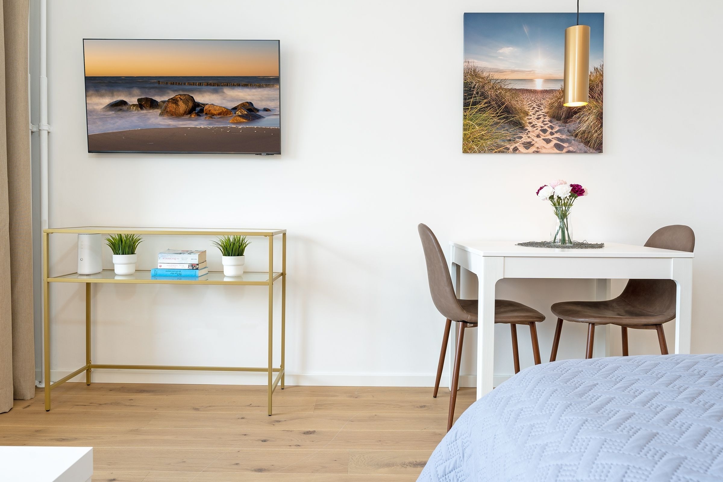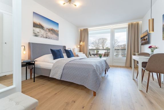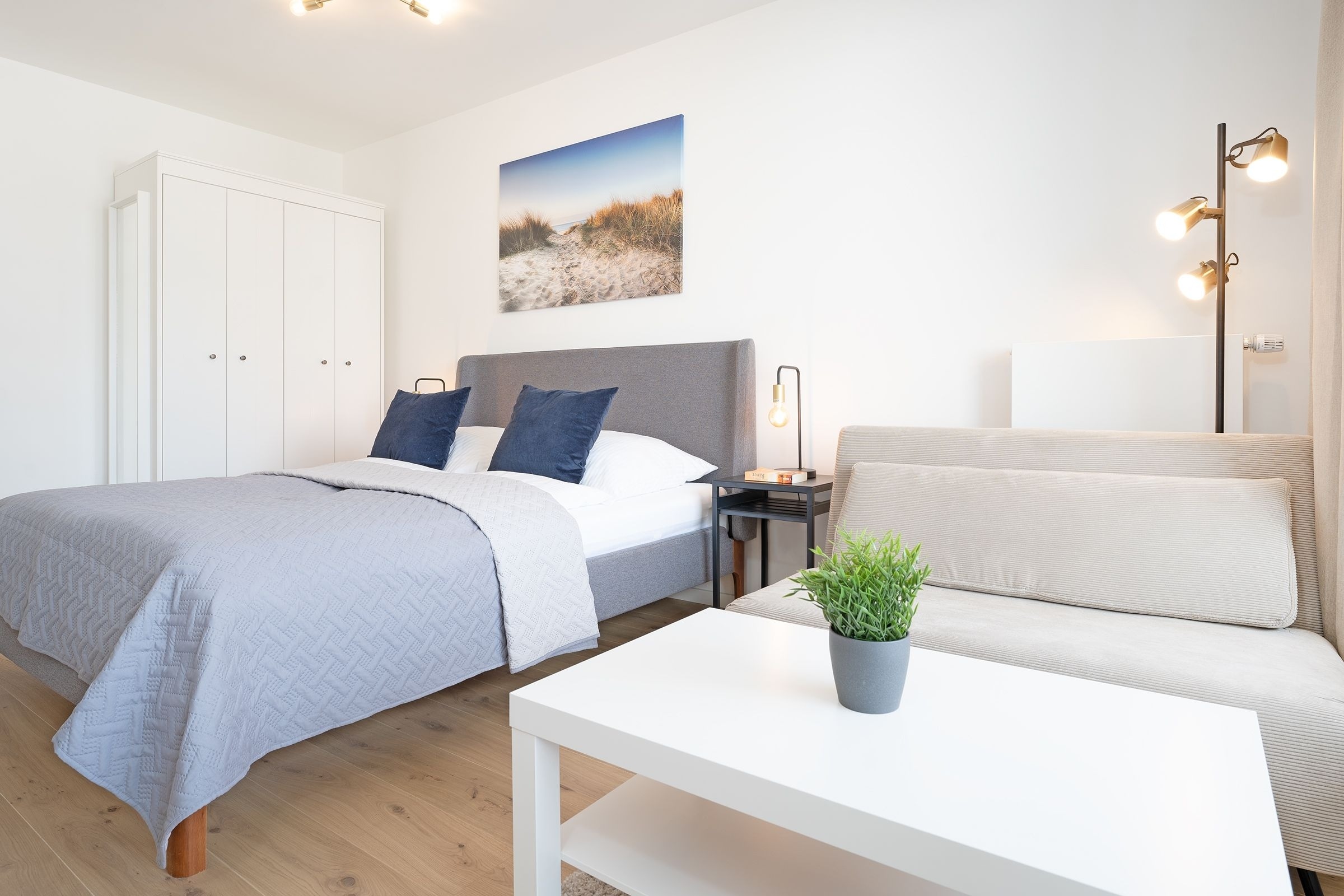 Diese hochwertig eingerichtete 1-Zimmer-Wohnung bietet mit 31 m² Wohnfläche genug Platz für bis zu 2 Erwachsene und ein Kind. Genießen Sie die Strandnähe vom Balkon mit seitlichem Meerblick auf die neu gestaltete Seebrücke, wenn Sie den ersten Kaffee des Morgens trinken. Die Nespresso-Maschine steht schon für Sie bereit.