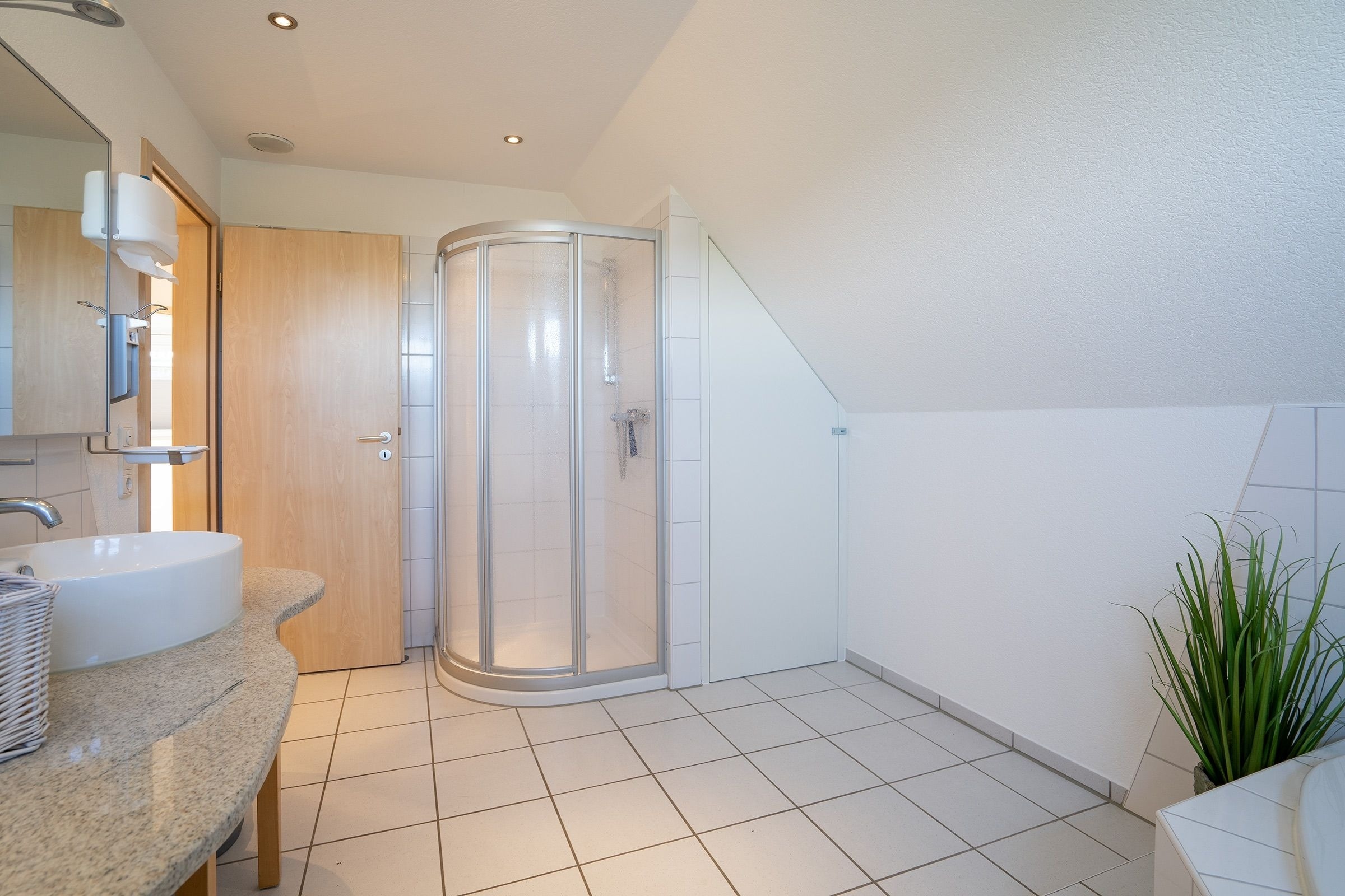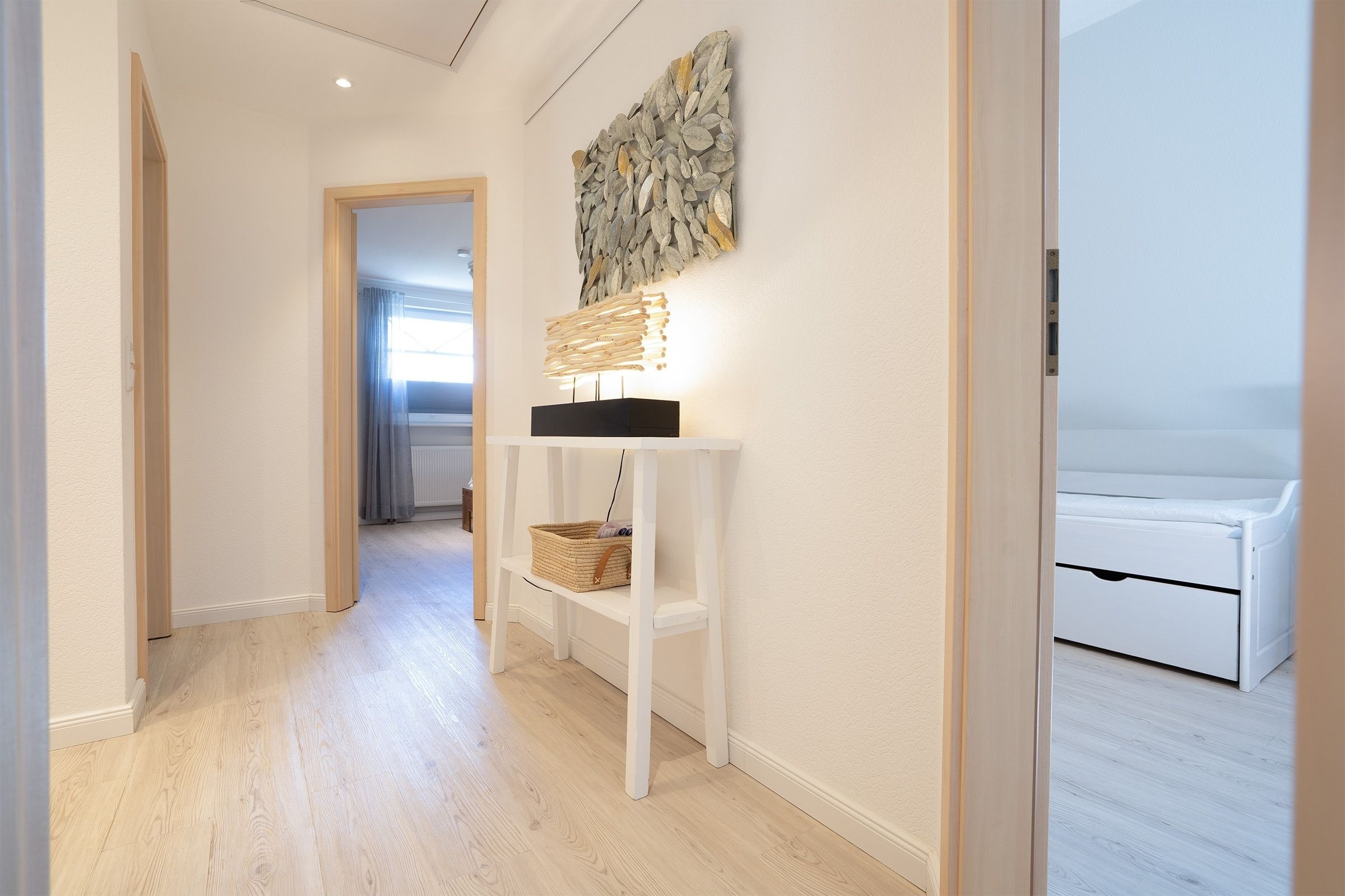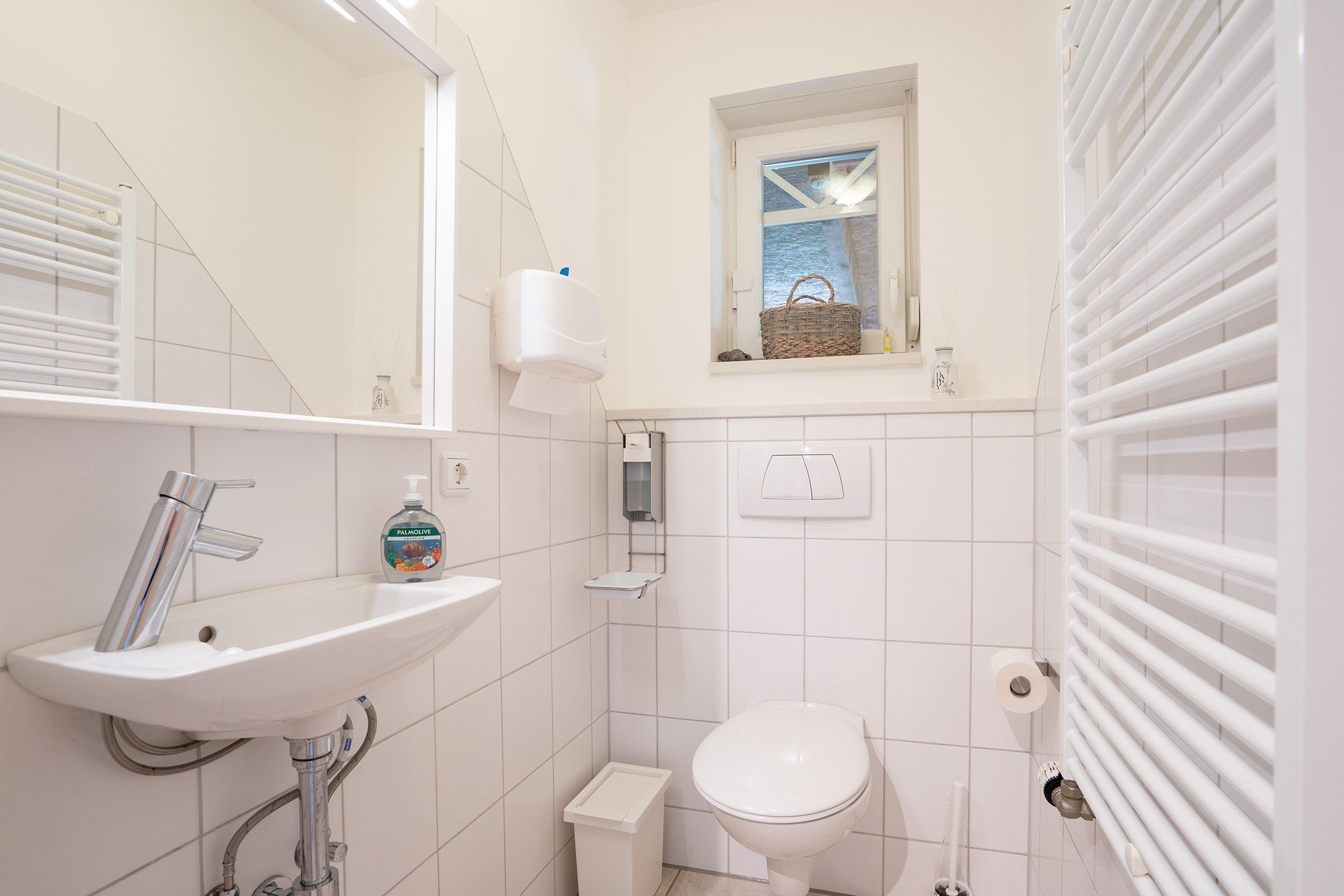 Das Ferienhaus beeindruckt durch ein lichtdurchflutetes Wohnzimmer mit einem Flachbild-TV und einer Sofalandschaft. In der offenen, integrierten Küche bereiten Sie Ihre Mahlzeiten zu und können diese am angrenzenden Essplatz gemeinsam einnehmen. Von hier aus gelangen Sie auf die möblierte Terrasse und in den Garten. Lassen Sie den Tag im Strandkorb oder in der Hängematte ausklingen. Ein Kohlegrill steht für gemeinsame Grillabende bereit. Im 1. Obergeschoss erwarten Sie drei Schlafzimmer, eines davon mit Doppelbett (140x200 cm). Das zweite Schlafzimmer bietet mit zwei Einzelbetten (90 x 200 cm) viel Schlafkomfort. Das letzte Schlafzimmer verfügt ebenfalls über zwei Einzelbetten (je 80 x 200 cm und 90 x 200 cm), wovon ein Bett zu einem weiteren Schlafplatz (80 x 200 cm) ausgezogen werden kann. Alle Schlafzimmer sind mit einem Kleiderschrank und einer Verdunkelungsmöglichkeit (Plissees) ausgestattet, Platz für ein Babybett ist ebenfalls vorhanden. Für das Rundum-Urlaubsgefühl sorgen im Badezimmer eine Fußbodenheizung, die große Eckbadewanne und eine Dusche sowie ein separates Gäste-WC im Erdgeschoss.