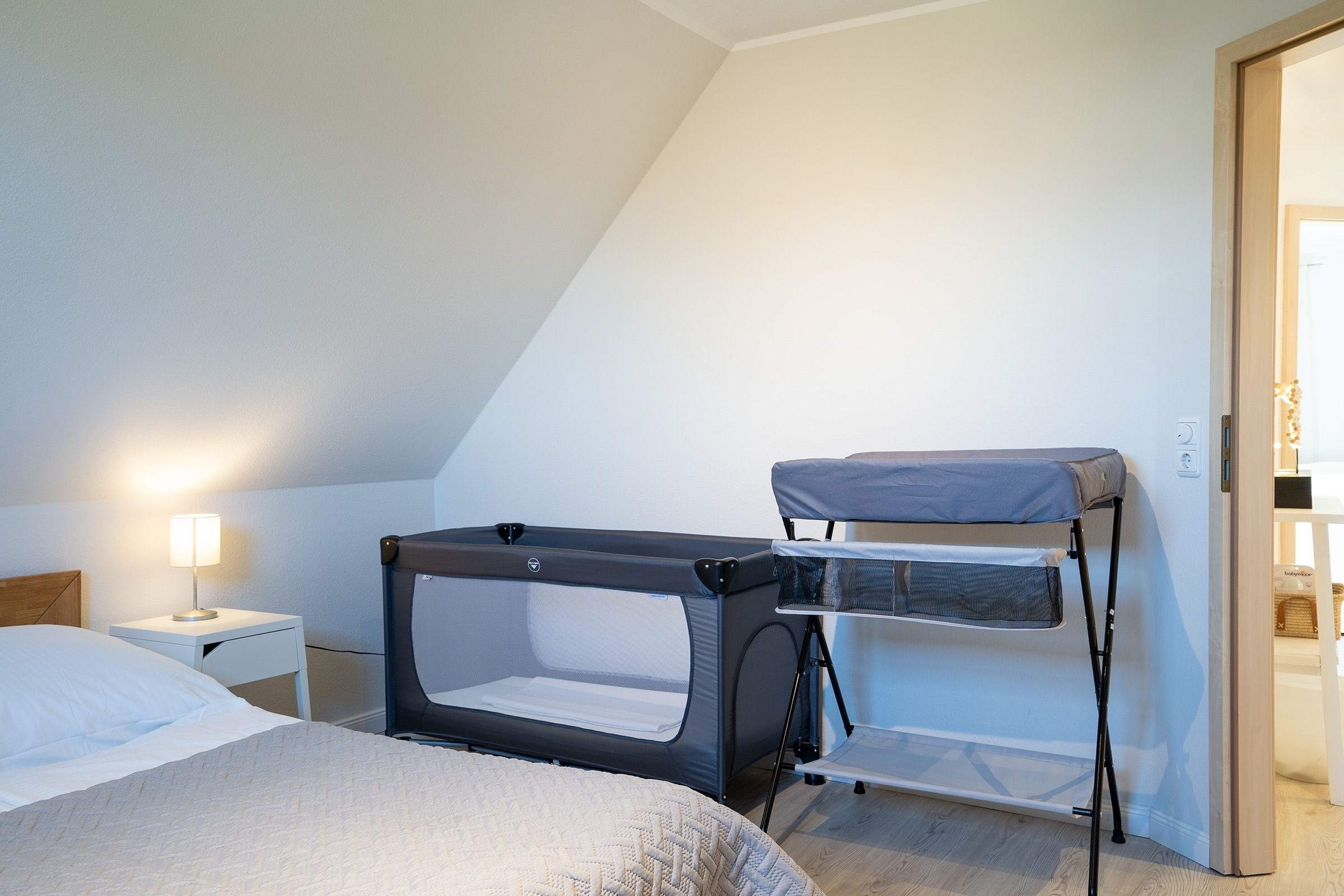 Mitgebrachte Fahrräder können ebenfalls im Carport untergestellt werden. Eine Waschmaschine steht Ihnen zur Eigennutzung gegen Gebühr zu Verfügung. Zur Grundausstattung für die kleinen Gäste gehören ein Kinderreisebett, eine Wickelvorrichtung, ein Kinderhochstuhl sowie ein Bollerwagen.