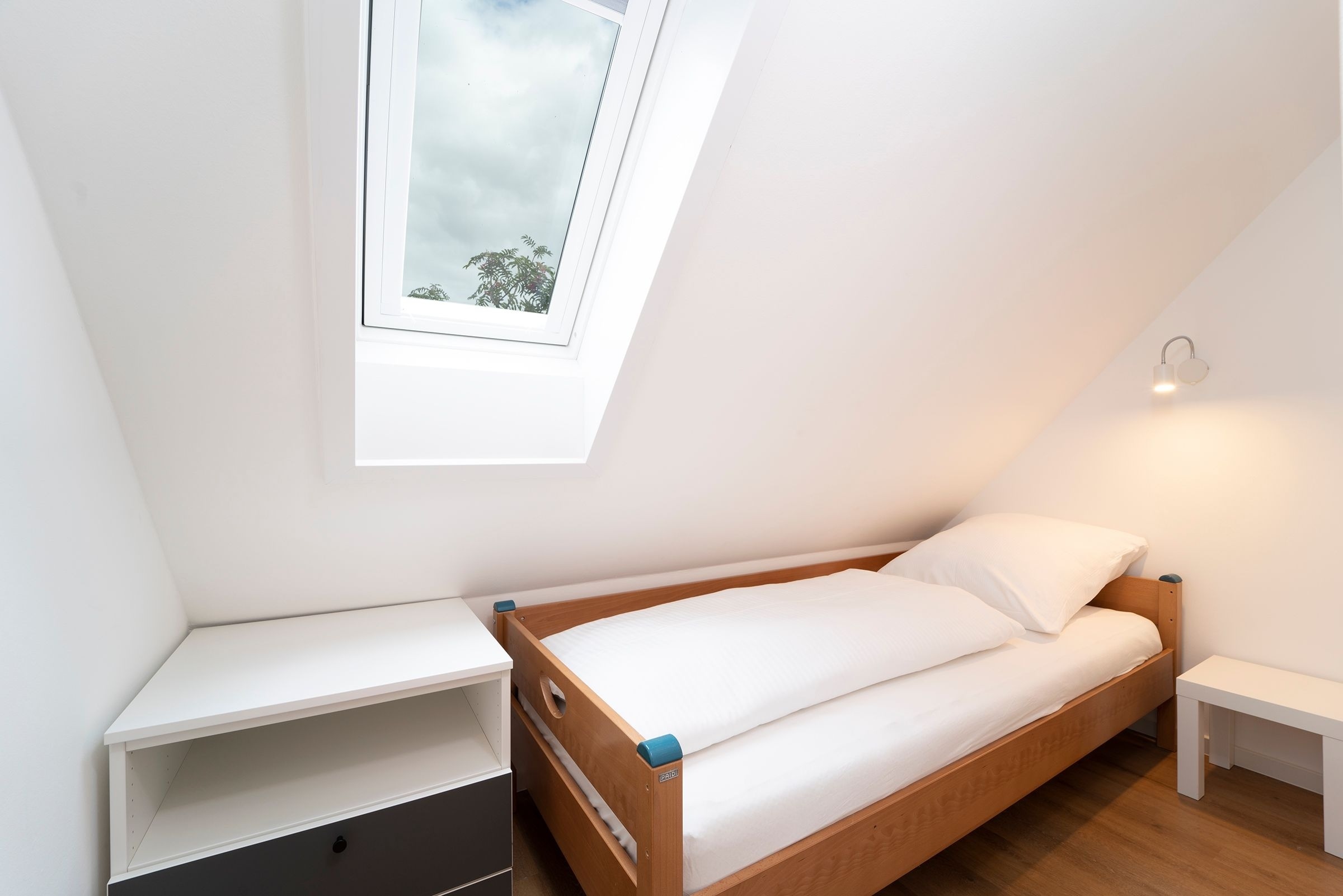 Schlafzimmer 3: 1 Einzelbett (90x200 cm), Verdunkelung: Plissee