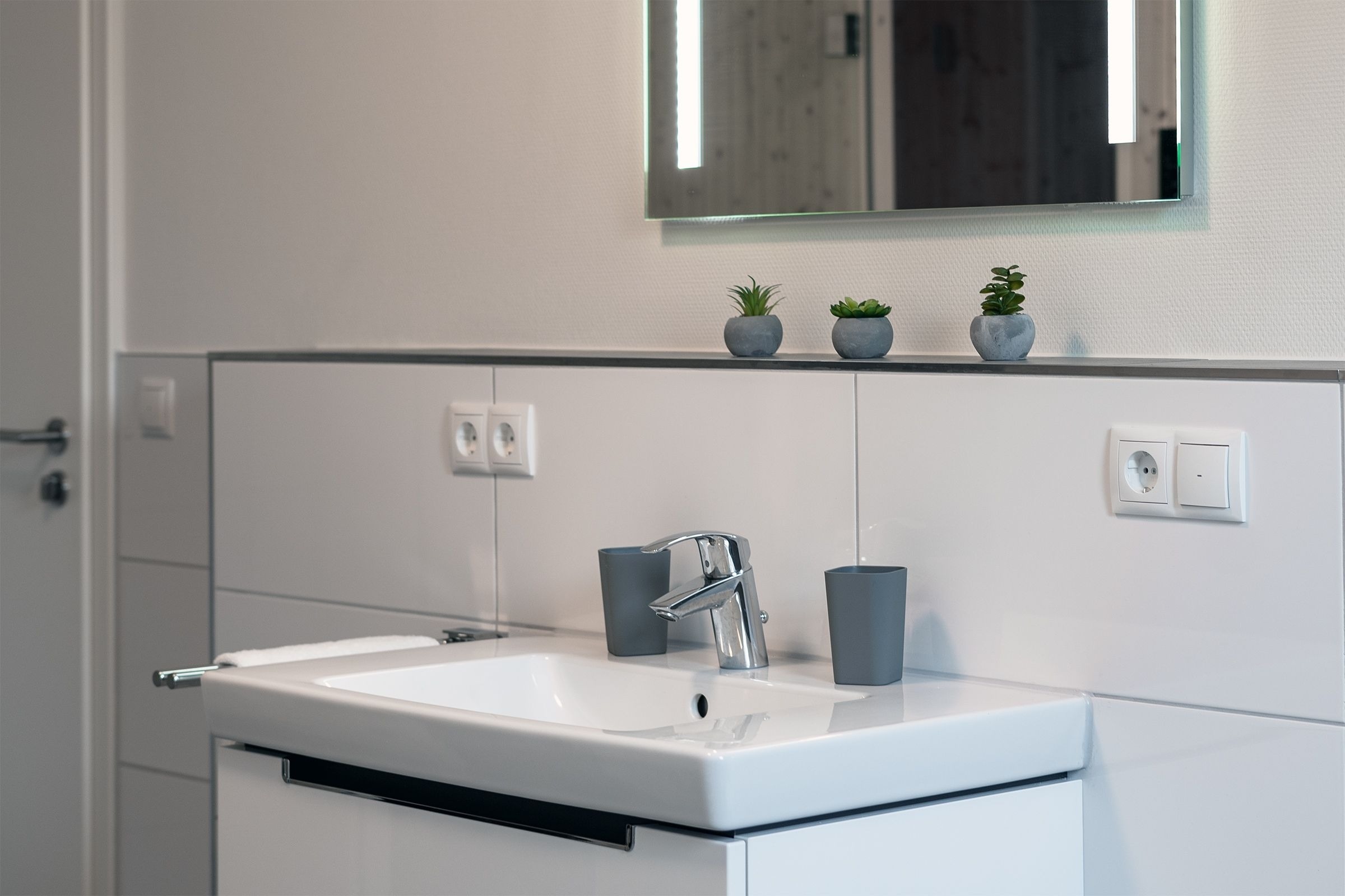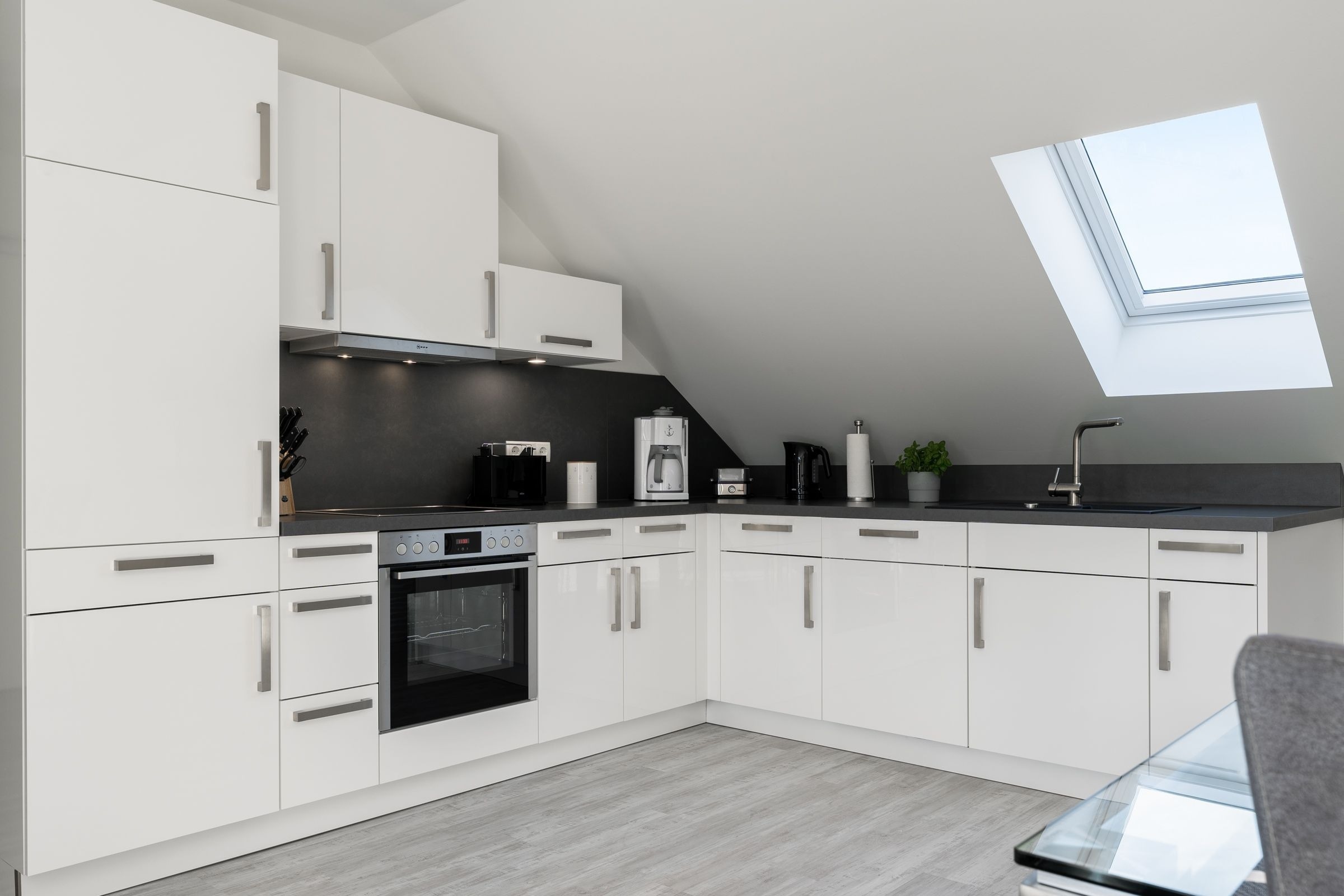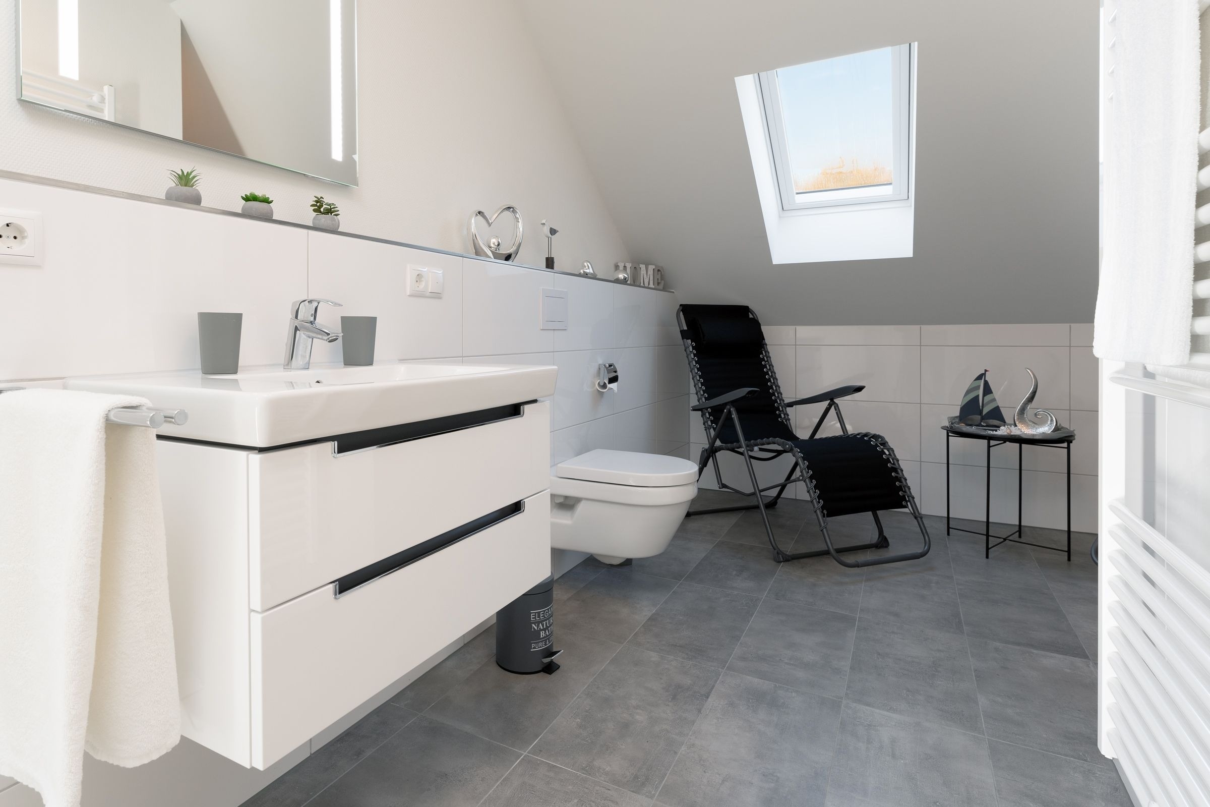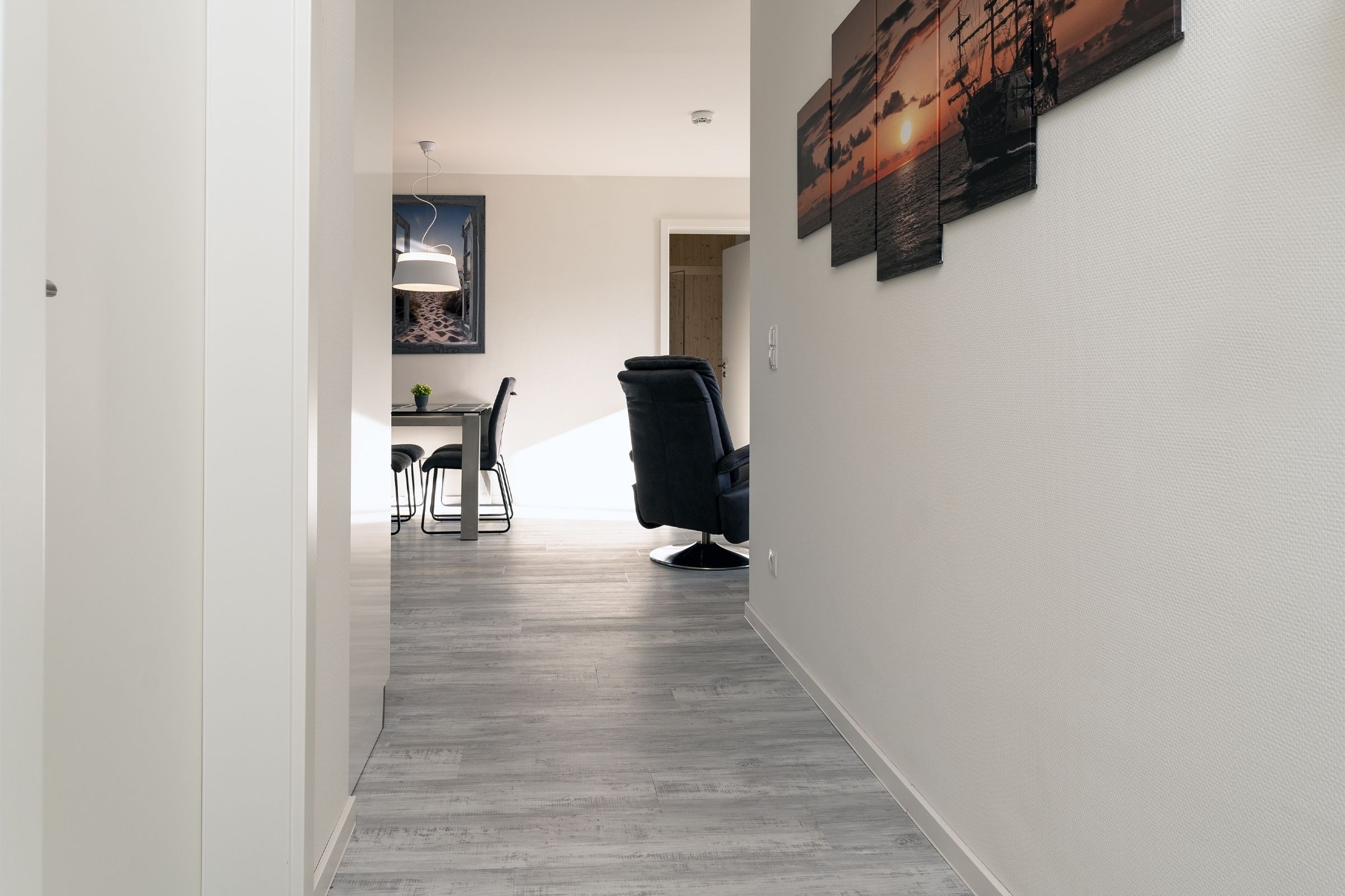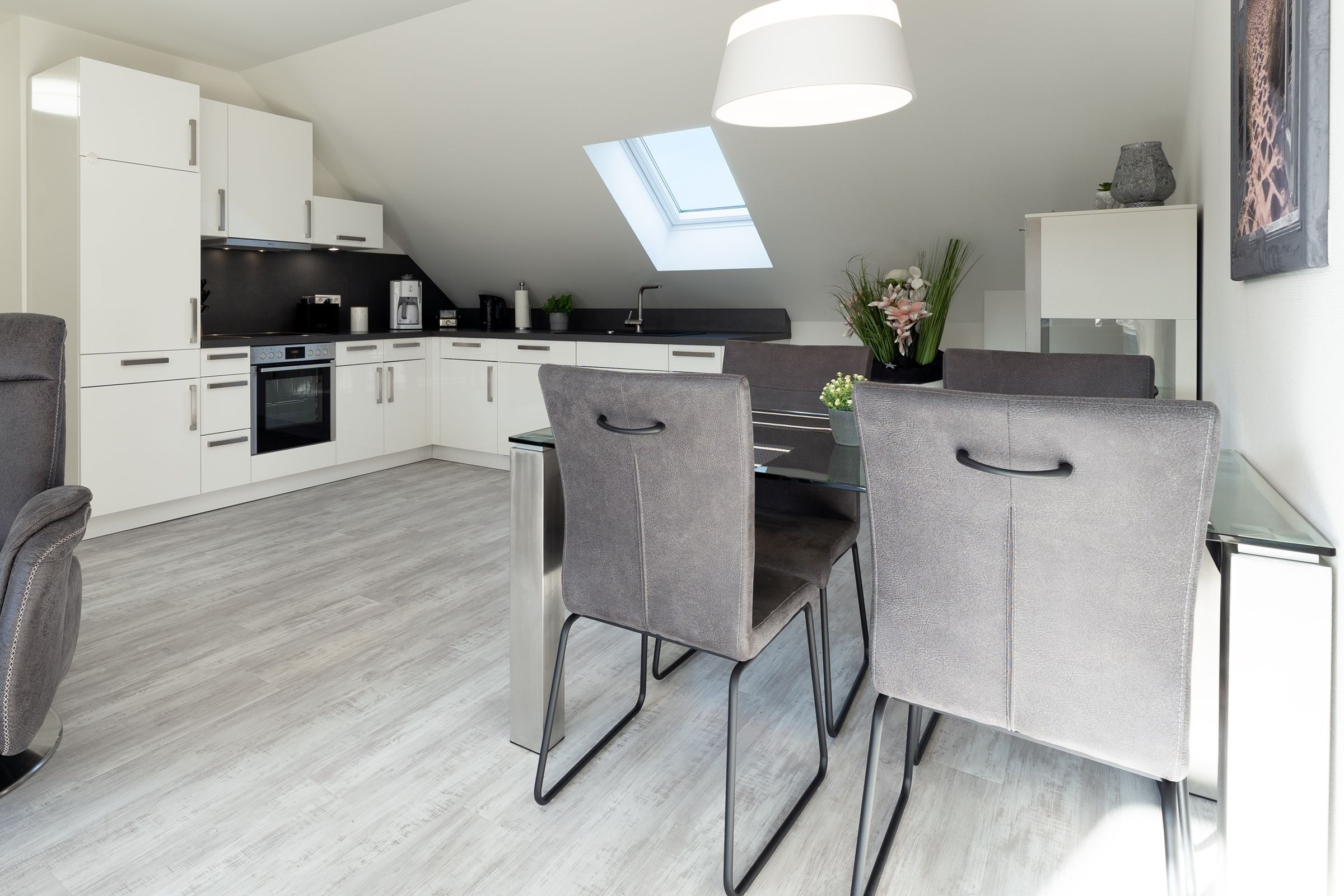 Das Herzstück dieser Wohnung bildet das Wohnzimmer mit Schlafsofa (130x200cm) und offener Küche, welche zum Verweilen und gemeinsamen Kochen einlädt. Von dort gelangen Sie auf den Balkon mit Südausrichtung, der mit Sonnenschirm und Balkonmöbeln ausgestattet ist. Für die Erholung im Urlaub gibt es ein separates Schlafzimmer, das sich mit Jalousien abdunkeln lässt, und mit eigenem TV und Boxspringbett (2x 90x200cm) überzeugt. Das Tageslichtbad verfügt über eine bodengleiche Dusche und Annehmlichkeiten wie einen Haartrockner und eine Handtuchheizung, damit es Ihnen an nichts fehlt, wenn Sie aus der eigenen Sauna kommen. Als weitere Besonderheit verfügt die gesamte Wohnung über eine angenehme Fußbodenheizung. Kostenfreies WLAN und ein Internetradio stehen hier zur Verfügung.