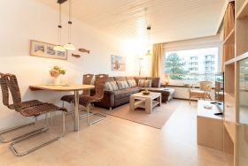 In dieser 2-Zimmer-Ferienwohnung genießen Sie die Nähe zum Strand auf ca. 42 m² für bis zu 3 Personen. Ein Fahrstuhl bringt Sie bequem in Ihr Feriendomizil im 3. Stock des Hauses 1 in der gepflegten Appartementanlage Hanseat.