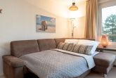 Wohnzimmer: 1 Schlafsofa (140x200 cm), Verdunkelung: Vorhang, Platz für Babybett vorhanden