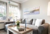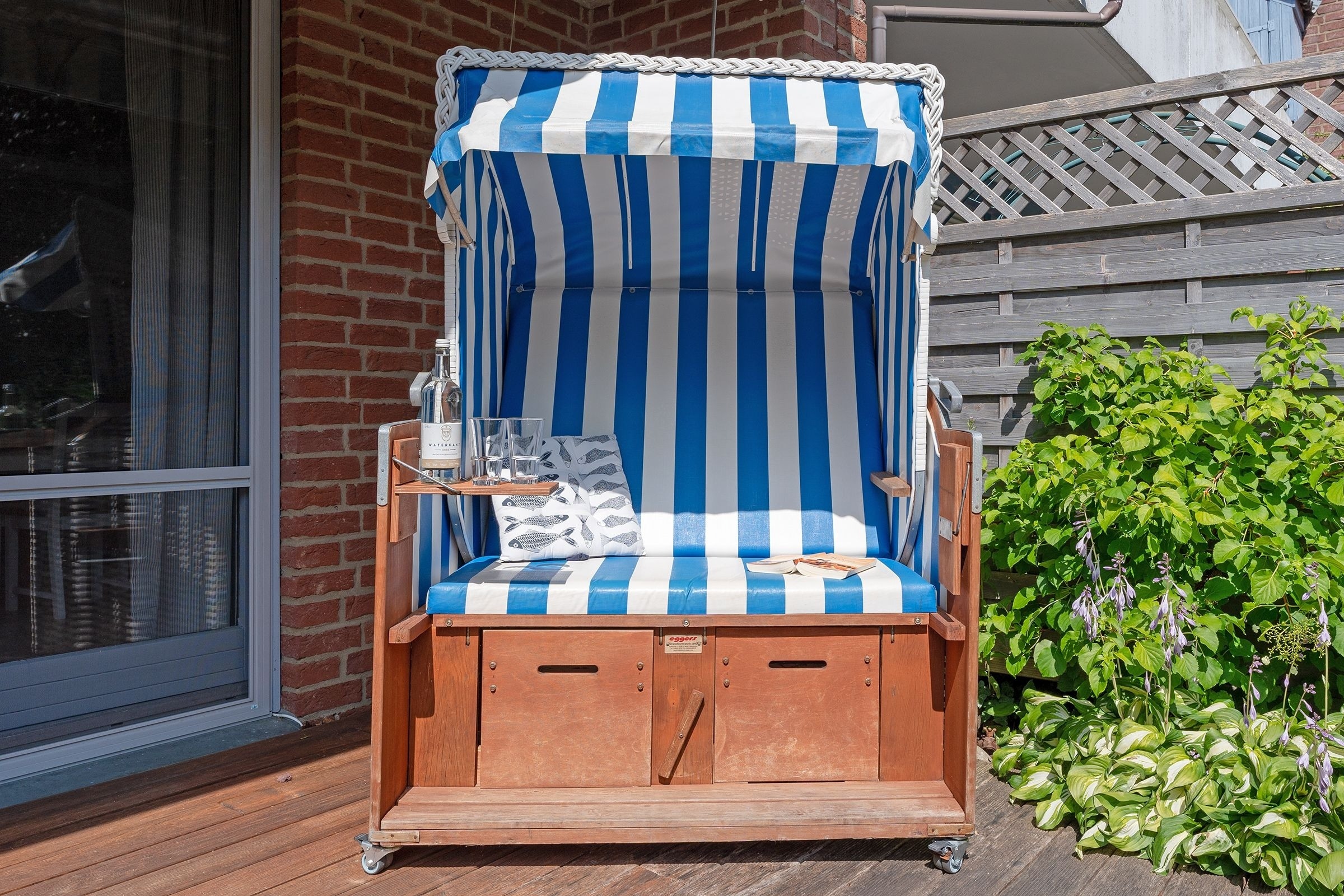 Hell und modern empfängt Sie Ihr Urlaubsdomizil mit dem geräumigen Wohnbereich. Die große Couch kann bei Bedarf in einen weiteren Schlafplatz (160x200 cm) verwandelt werden. Highlight dieser Unterkunft ist die ca. 20 m² große Südterrasse mit Strandkorb und kleinem Gartenstück zur Eigennutzung. Die in den Wohnbereich integrierte Küche ist mit allem ausgestattet, was Sie zum Zubereiten Ihrer Mahlzeiten benötigen. Diese können Sie anschließend am angrenzenden Esstisch gemeinsam einnehmen.