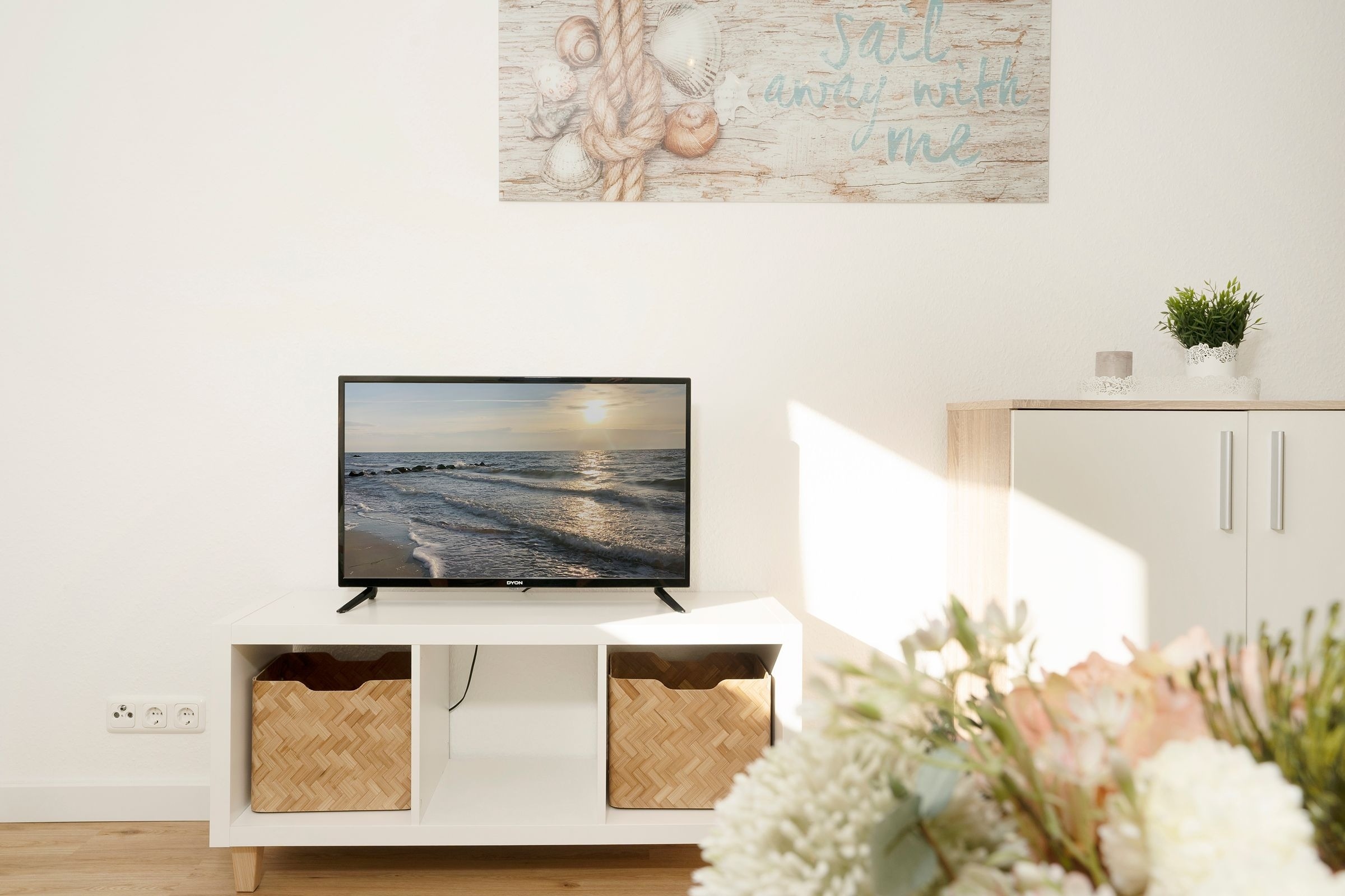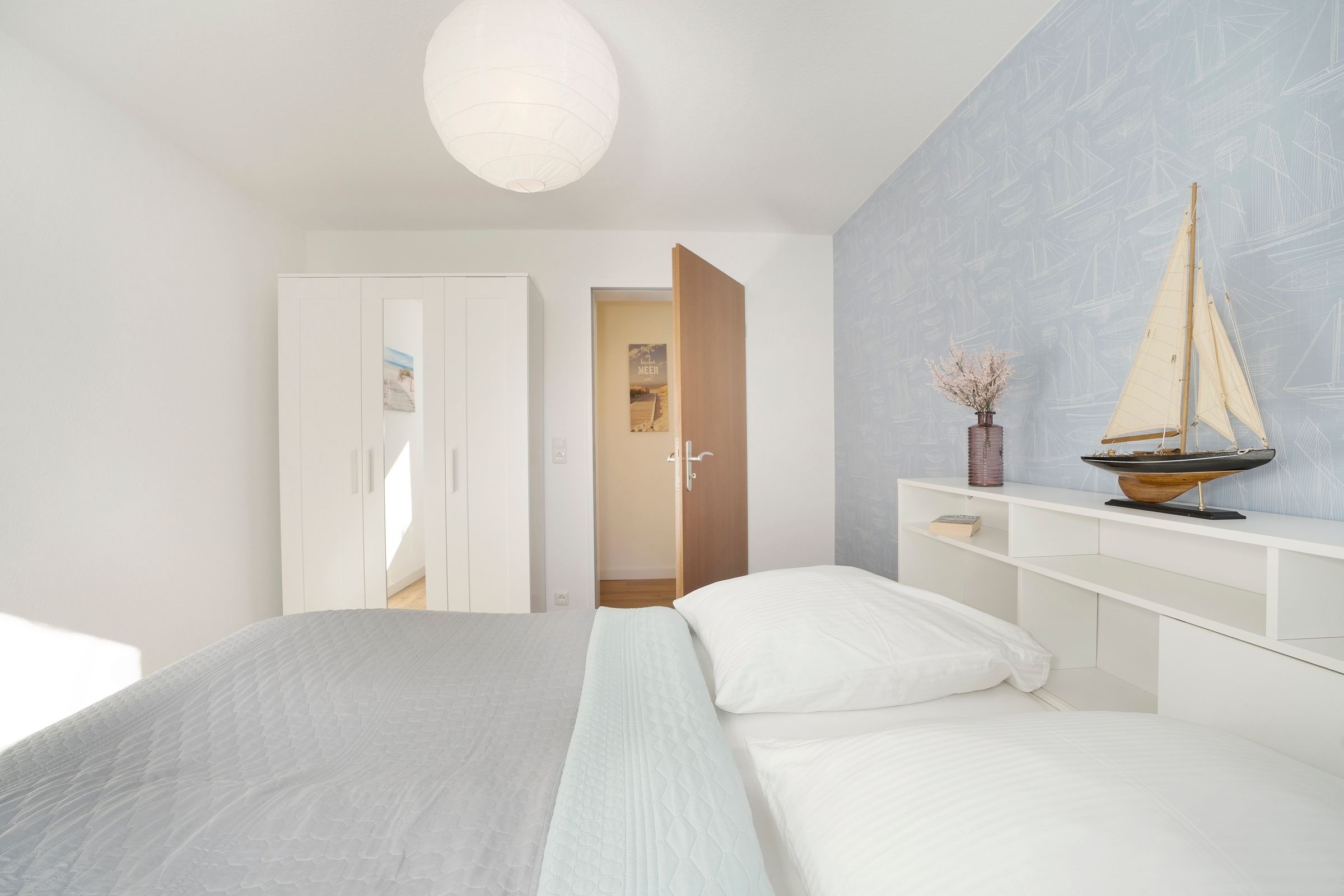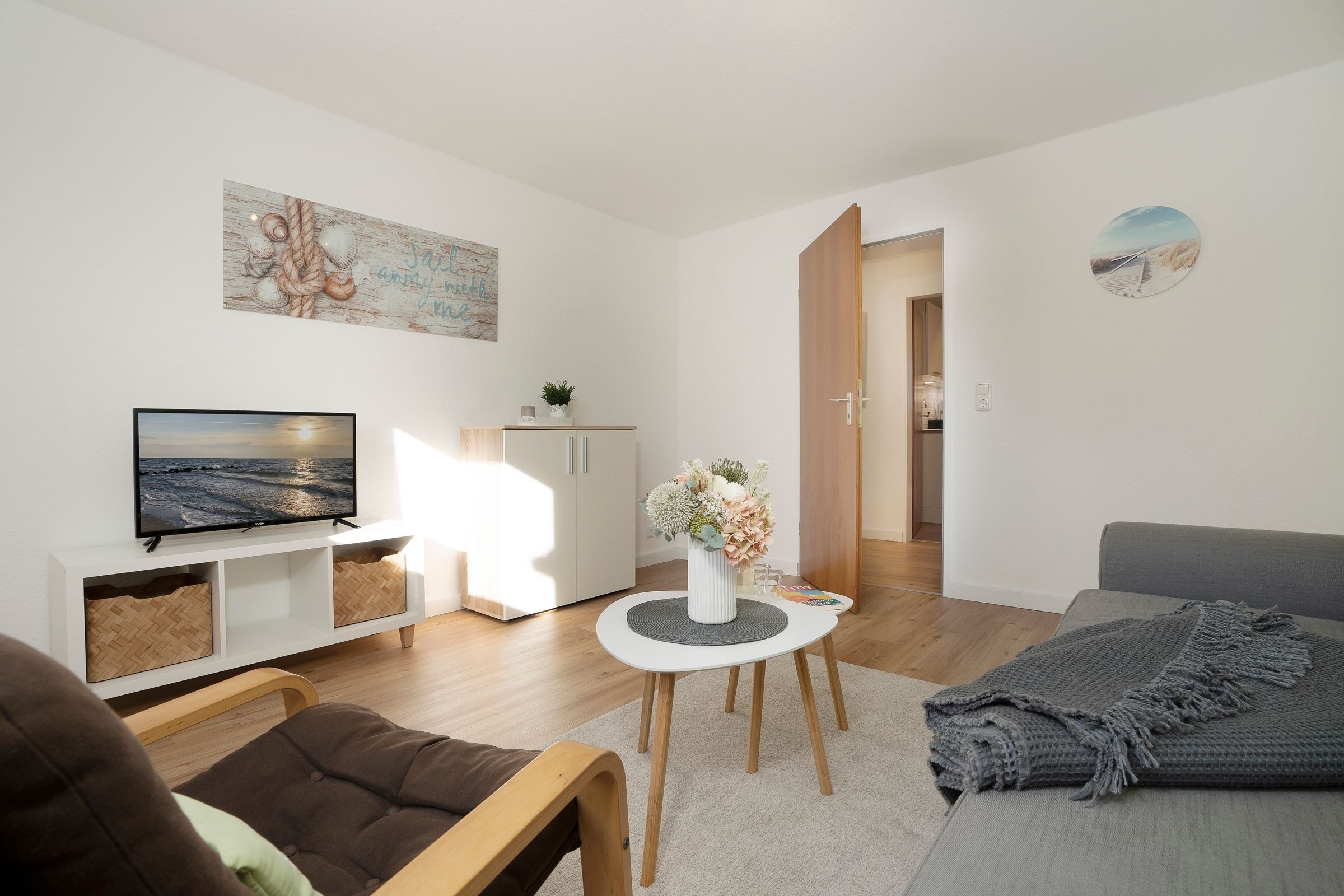 Im gepflegten Wohnzimmer ziehen Sie sich nach einem ereignisreichen Urlaubstag zum Ausklingen des Tages zurück. Genießen Sie das Fernsehprogramm, anschließend können Sie das Sofa mit wenigen Handgriff in eine kuschelige Schlafgelegenheit (ca. 160x200 cm) verwandeln. In der separaten Küche ist ausreichend Platz, um gemeinsam zu kochen und zu essen. Die Wohnung verfügt außerdem über ein Schlafzimmer mit einem gemütlichen Doppelbett (2x 90x200 cm) und Kleiderschrank für die Urlaubsgarderobe. Auch das hell geflieste, moderne Duschbad wird Sie mit ausreichend Stauraum für Ihre Hygieneartikel überzeugen. Die norddeutsche Sonnen können Sie entspannt auf der möblierten Süd-Terrasse genießen. Wem es zu hell ist - die Wohnung verfügt über elektr. Außenjalousien, die für eine angenehme Verdunkelung sorgen.
