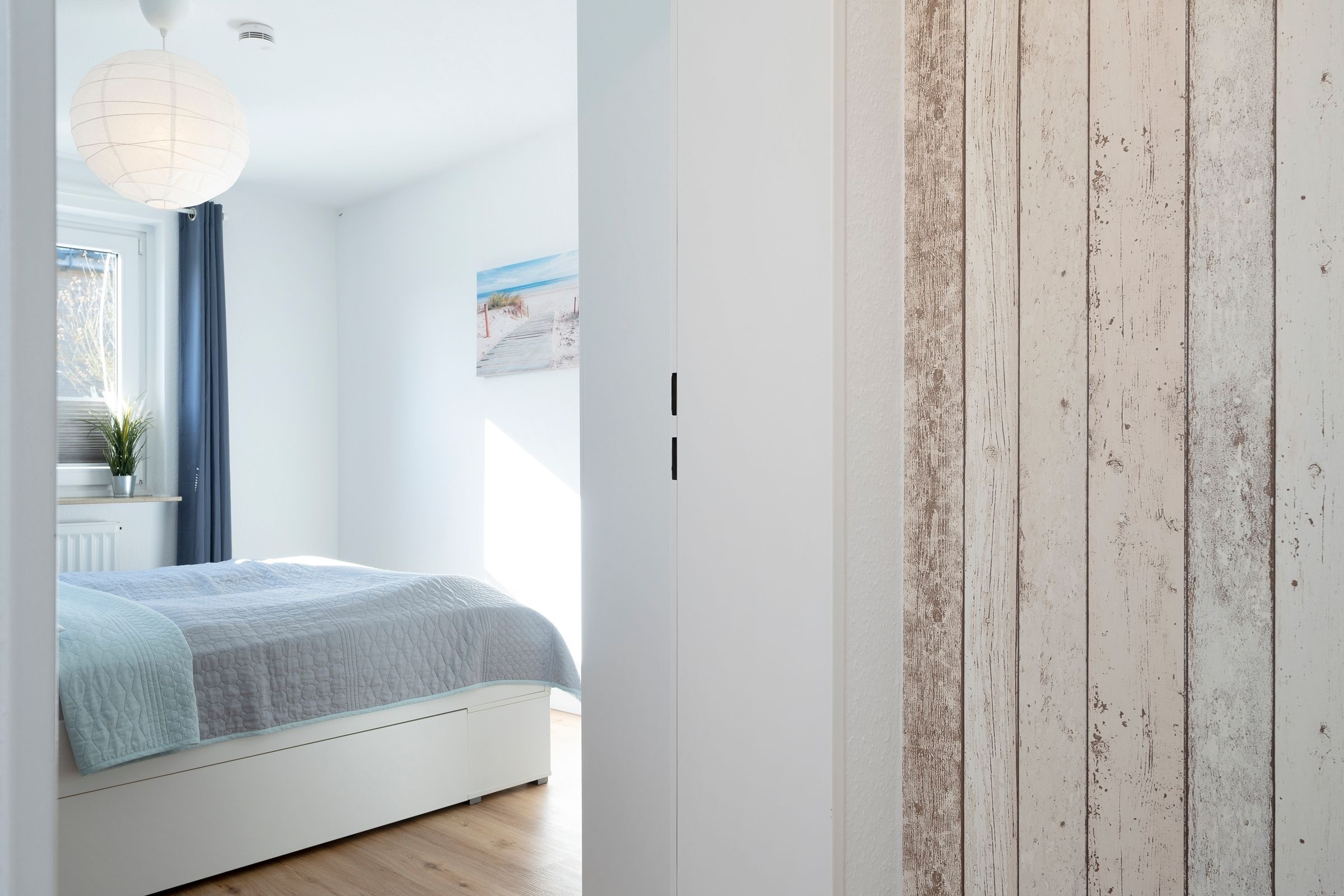 Schlafzimmer: Doppelbett (ca. 2x 90x200cm), Kleiderschrank, Verdunkelung (Plissee, Gardinen, elektr. Aussenjalousien), kein Platz für ein Kinderbett vorhanden