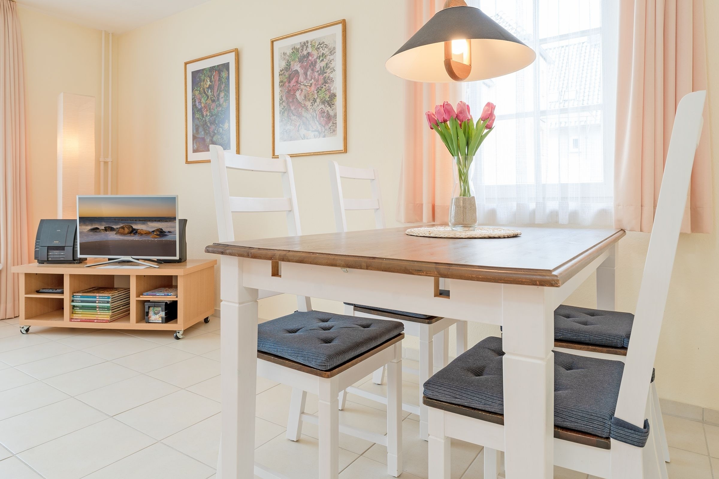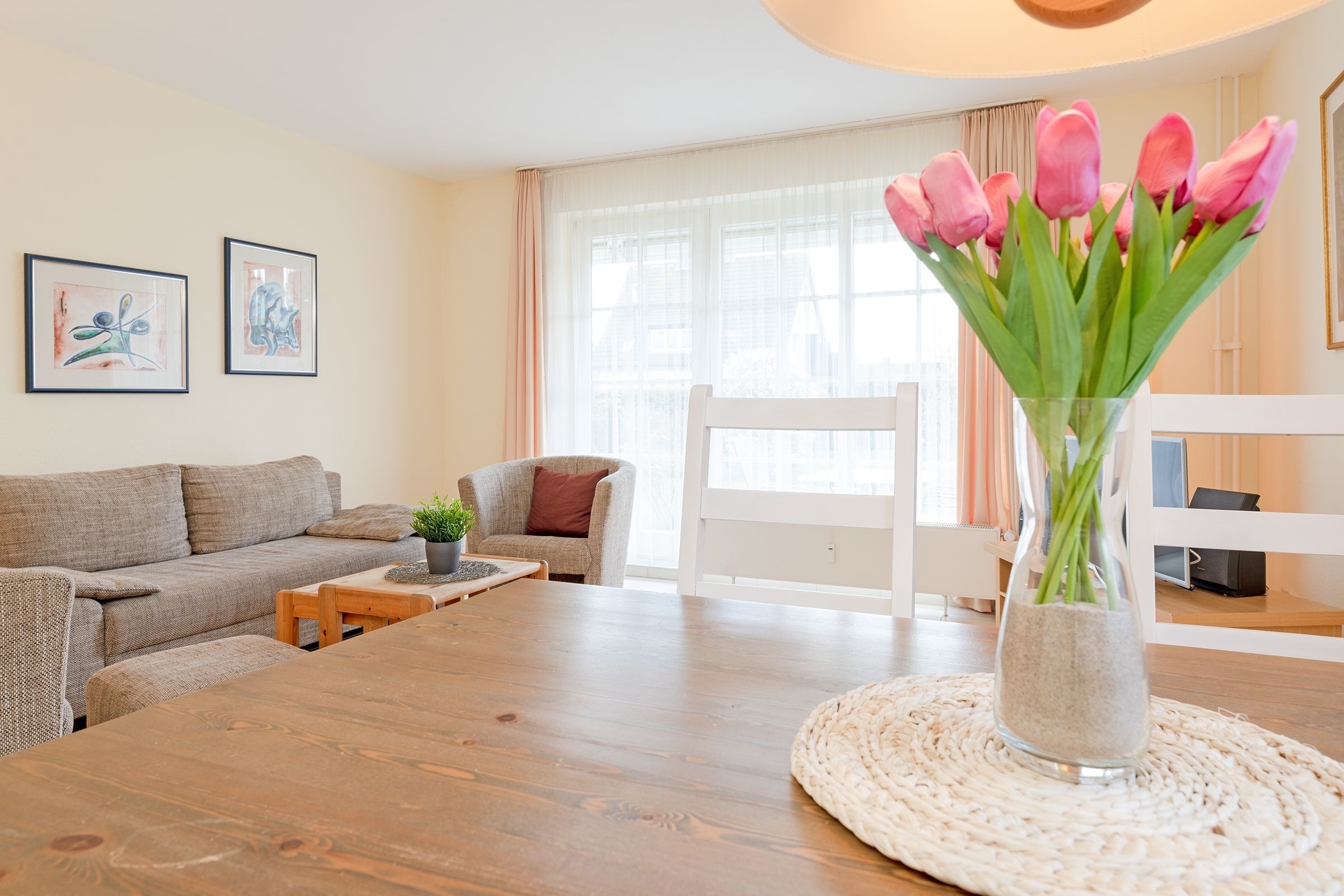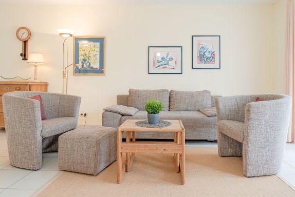 Im Herzen von Timmendorfer Strand liegt Ihr Urlaubsglück. Die kinderfreundliche Ferienwohnung besticht durch ihre gemütliche Einrichtung in warmen Farbtönen. Nehmen Sie im lichtdurchfluteten Wohnzimmer Platz und genießen Sie Ihre Auszeit auf dem kuscheligen Sofa oder den beiden Sesseln. Bei schönem Wetter lockt die möblierte Terrasse gleich nebenan. Die separate Küche mit Geschirrspüler ist gut ausgestattet und bringt sicher jeden Hobby-Koch zum Lächeln. Ihre leckeren Speisen können Sie im Wohnbereich genießen – die komfortable Ess-Ecke bietet sich aber auch für schöne Spiele-Abende an. Nach einem erlebnisreichen Tag an der Küste finden Sie in den beiden Schlafräumen eine wundervolle Nachtruhe: Ein Zimmer verfügt über ein Doppelbett (2x 90x200 cm). In dem anderen Zimmer stehen 2 Einzelbetten (je 90x200 cm). Beide Räume verfügen über genug Platz für ein zusätzliches Kinderreisebett. Das moderne Duschbad mit Fenster verspricht einen guten Start in den Tag.