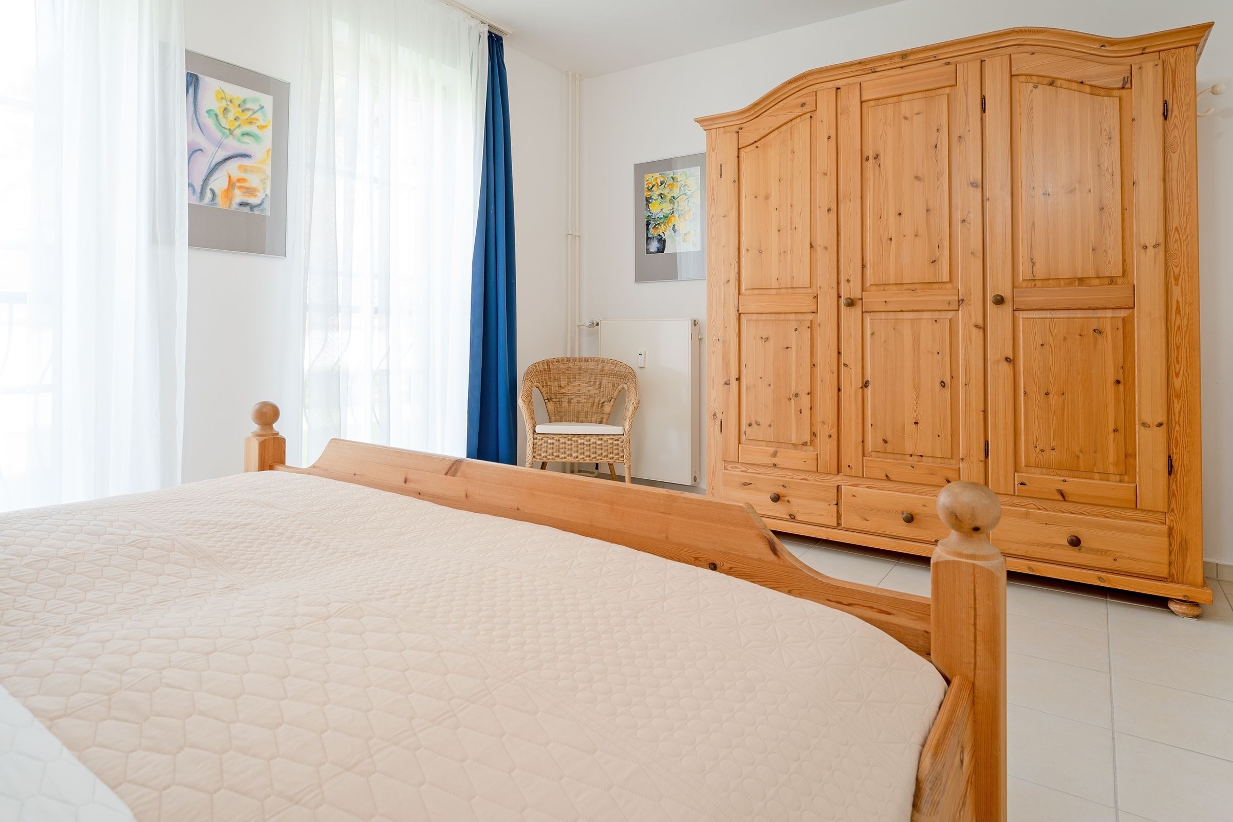 Schlafzimmer 1: Doppelbett (2x 90x200 cm), Kleiderschrank, Verdunkelung (Gardinen), Platz für Kinderreisebett vorhanden