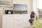 Sie möchten der Ostsee ganz nah sein? Vielleicht die Wellen durch das geöffnete Fenster hören? Dann sind Sie in dem gemütlichen Apartment in der Wohnanlage Haus Seepferdchen am Meer genau richtig. Nur rund 10 Meter ist der Ostseestrand entfernt. Der Wohn-/Schlafbereich empfängt Sie am Ende des Raumes mit einem schicken Sofa. Hier können Sie sich gemütliche vom TV-Gerät unterhalten lassen und Ihre Auszeit genießen. Direkt vor dem großen Fenster befindet sich eine schöne Sitzecke zum Essen – oder auch um Urlaubspläne zu schmieden. Am Ende eines erlebnisreichen Tages finden Sie Ihre wohlverdiente Nachtruhe im vorderen Bereich des Raumes, hier steht ein bequemes Boxspringbett (180x200 cm) für Sie bereit. Auch für ein Babybett ist hier genügend Platz. In der separaten, gut ausgestatteten Küche mit Spülmaschine ist alles vorhanden, was Sie zum Zubereiten Ihrer Urlaubs-Mahlzeiten brauchen. Das großzügige Duschbad ist hell gefliest und verfügt über ein Fenster.