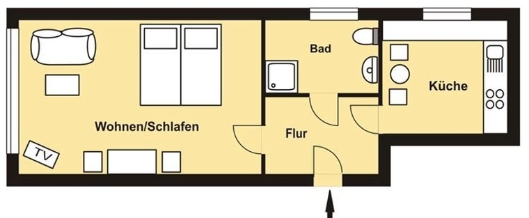 Freuen Sie sich auf ein charmantes 1-Zimmer-Apartment für bis zu 2 Personen mit einer Wohnfläche von ca. 35 m² in der ersten Reihe zum Strand in Timmendorfer Strand.