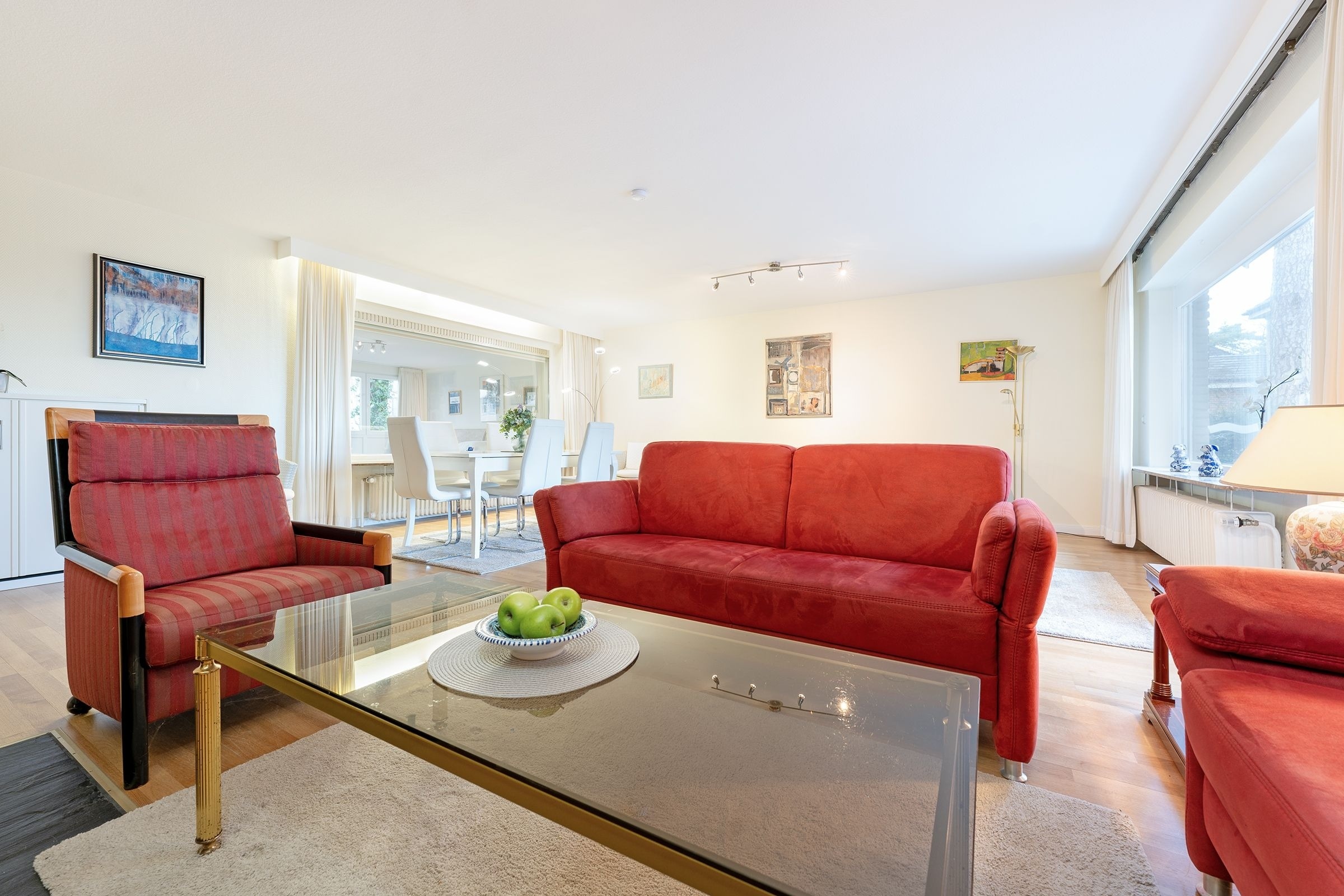 Urlaub in der 1. Reihe: Strandnahe 3-Zimmer-Ferienwohnung in bester Lage von Timmendorfer Strand für bis zu 4 Personen im Hochparterre mit 2 separaten Schlafzimmern, Gemeinschaftsgarten und einer Wohnfläche von ca. 103 m².