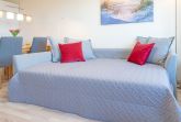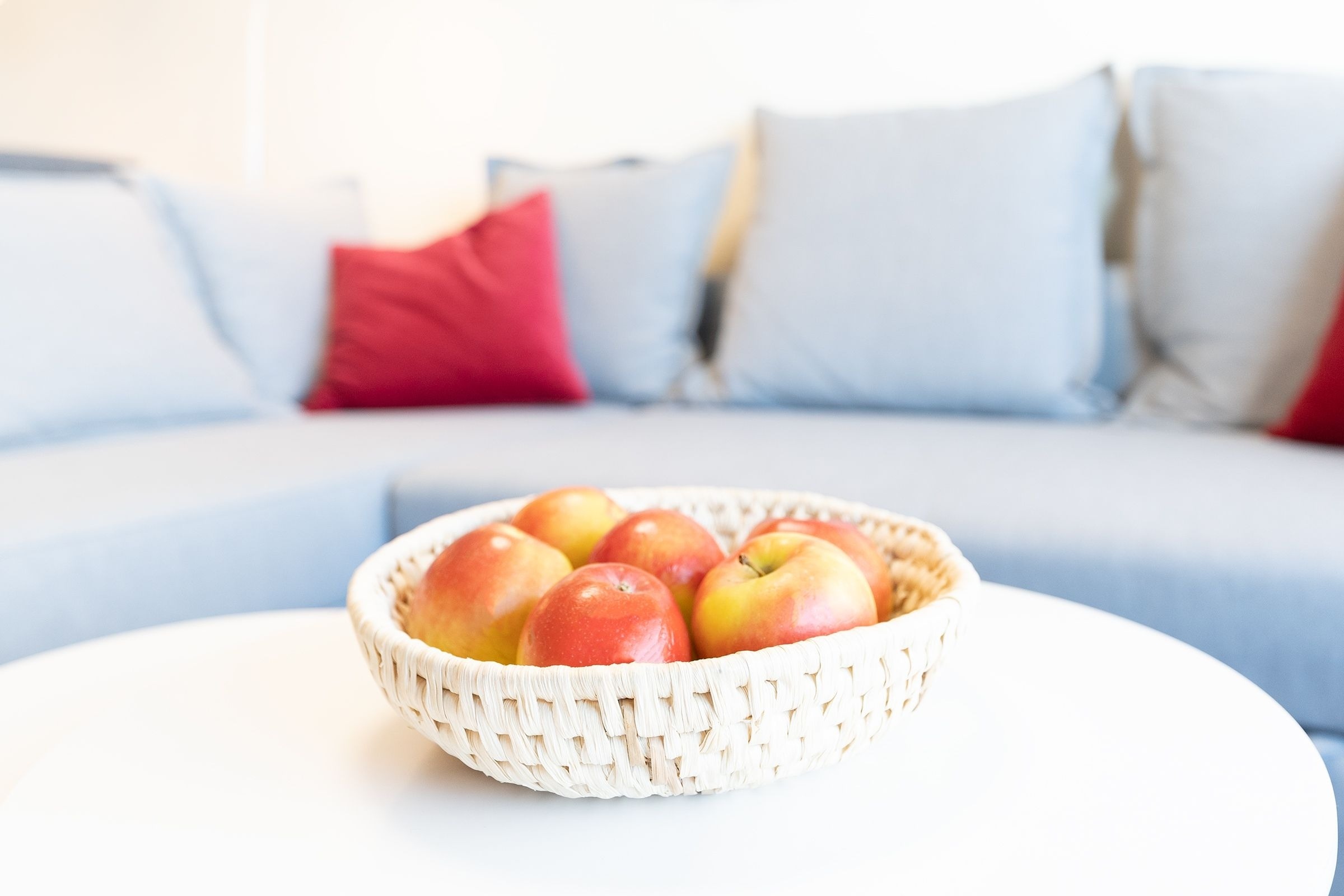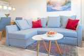 Sie möchten von Ihrer Wohnung aus den freien Blick auf die Ostsee genießen? Dann sind Sie hier genau richtig. Das Herzstück dieser Wohnung bildet das Wohnzimmer mit offener Küche und Zugang zum Balkon. Von hier aus können Sie mit einem frischen Kaffee - es ist eine Filter- sowie eine Kaffeepadmaschine vorhanden - in Richtung Osten auf die Ostsee und den Hansapark blicken. Neben einem Smart TV mit kostenlos nutzbarem Disney+-Streaming-Zugang und einen Radio mit Bluetooth-Eingang umfasst das Wohnzimmer außerdem eine Schlafcouch (140x200 cm). Die weiteren Gäste schlafen nebenan (auch hier gibt es Meerblick) im Boxspring-Doppelbett (180x200 cm). Das Schlafzimmer ist durch einen offenen Kleiderschrank mit dem dritten Schlafplatz, einem Schlafsofa (140x200 cm) verbunden und verspricht Nachtruhe. Das nebenan liegende Badezimmer lässt mit Dusche, beheizbarem Handtuchhalter und Föhn keine Wünsche offen.