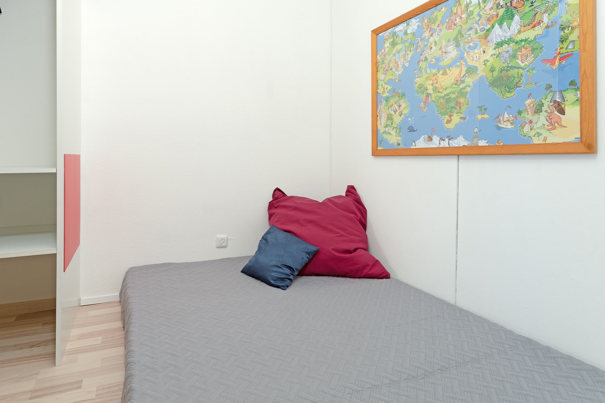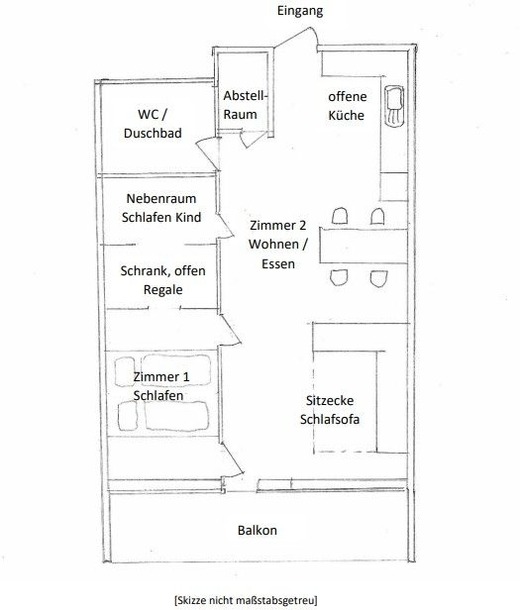 Schlafzimmer 1 (hinterer Bereich): Schlafsofa (140x200 cm), Verdunkelung (alternativ zum Schlafsofa: Platz für Kinderreisebett)