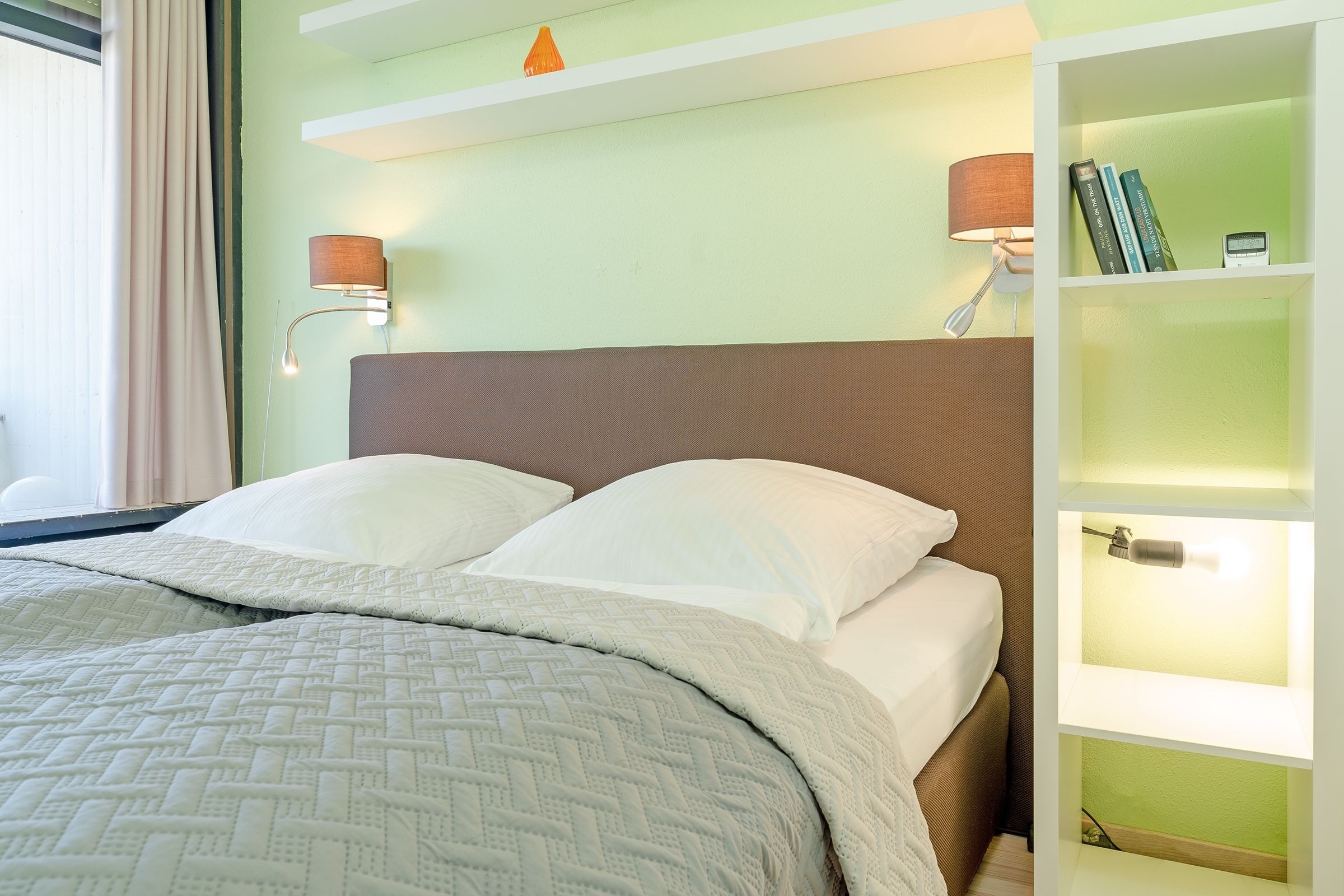 Diese 2-Zimmer-Ferienwohnung mit ca. 50 m² Wohnfläche wartet in der 9. Etage der Wohnanlage Panoramic auf Sie und steht für bis zu 4 Gäste zur Verfügung.