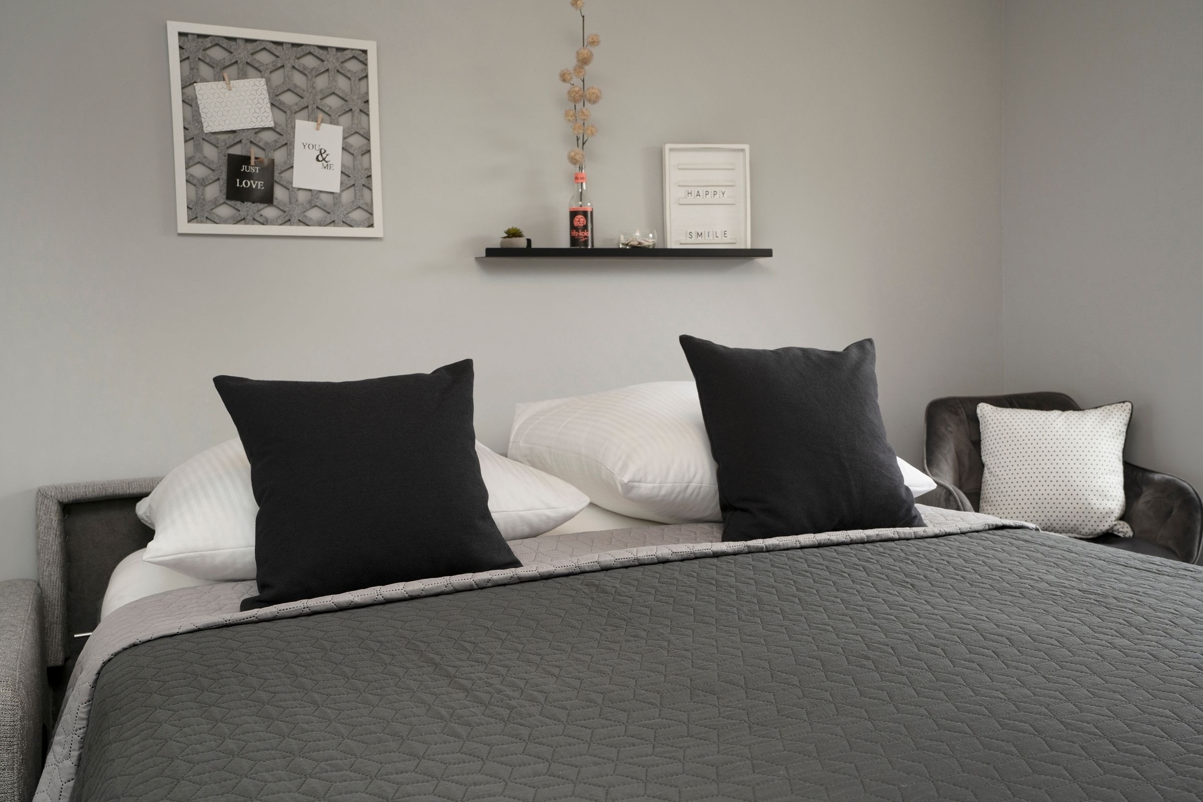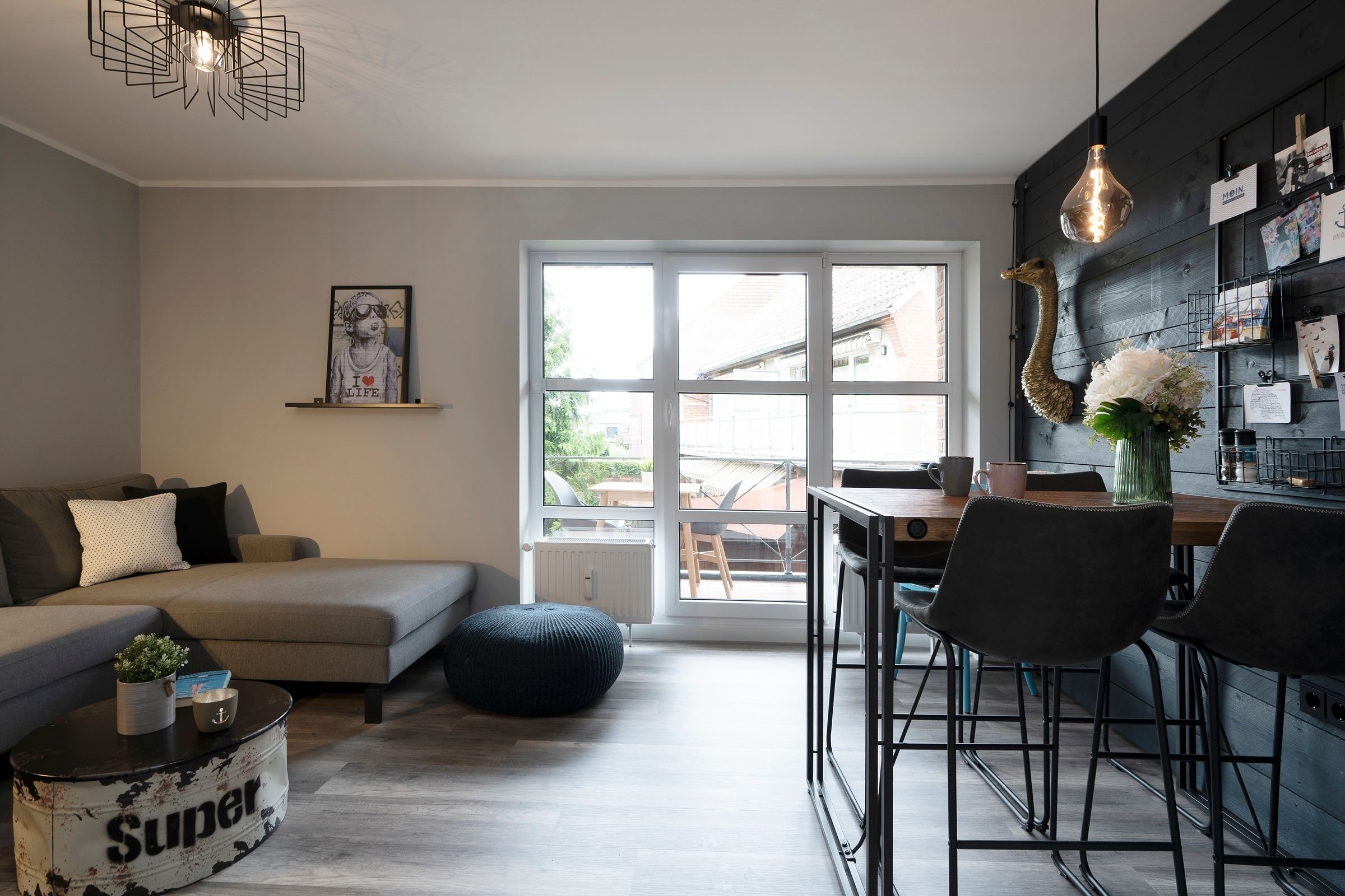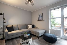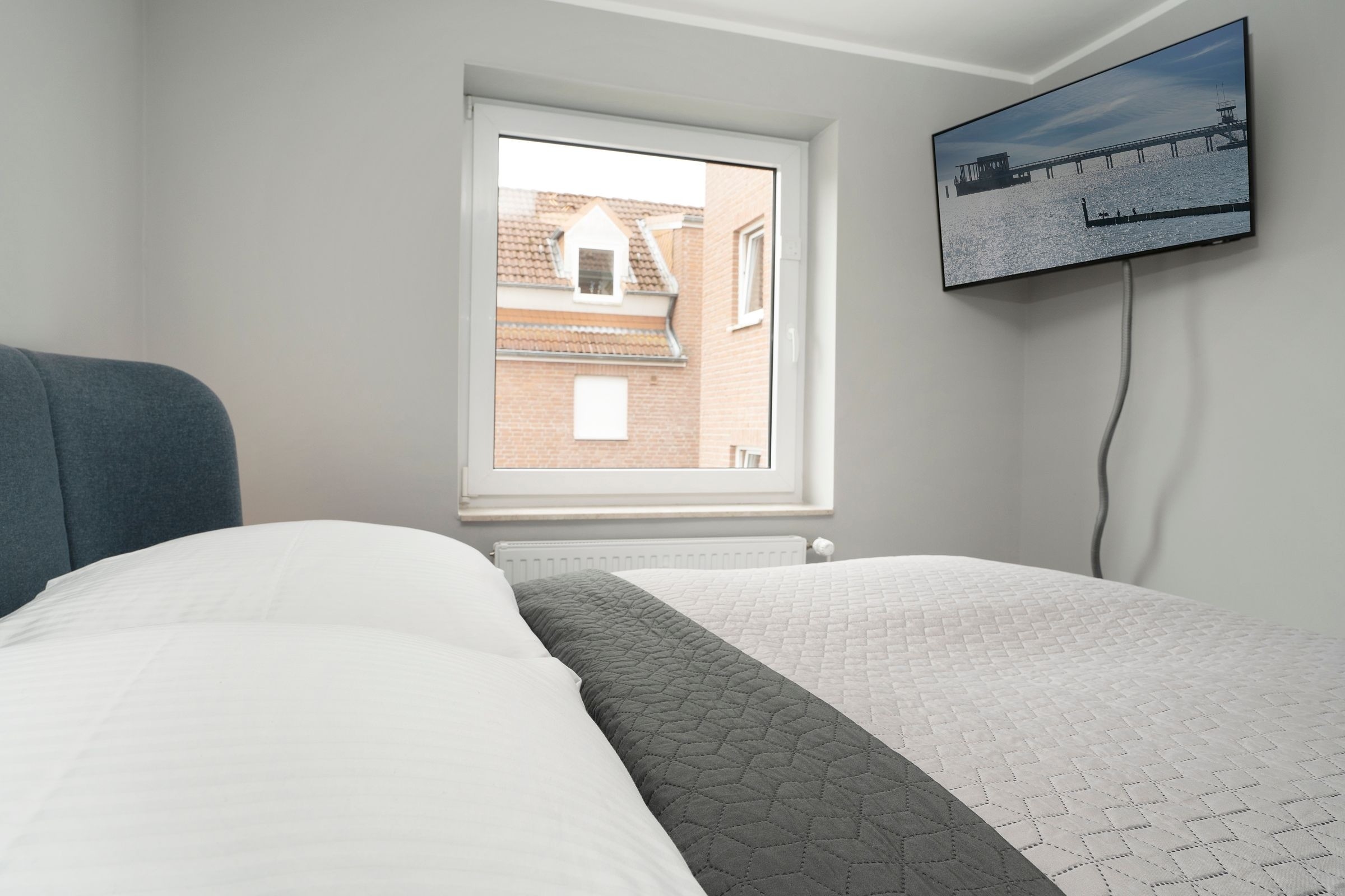 Wie wäre es mit einem kleinen Spaziergang am Meer – noch vor dem Frühstück? Das charmante Apartment liegt nur 150 Meter vom Ostseestrand entfernt. Durch einen kleinen Flur gelangen Sie ins liebevoll eingerichtete Wohnzimmer mit Zugang zum möblierten Balkon. Nehmen Sie Platz auf der kuscheligen Sofalandschaft und entspannen Sie vor dem TV. Zudem steht Ihnen im Wohnzimmer eine stylische Essecke zum Verweilen zur Verfügung. Die separate, großzügige Küche ist mit Induktionsherd und Spülmaschine modern ausgestattet und lässt beim Kochen sicher keine Wünsche offen. Für die Nacht stehen zwei Schlafräume bereit: In dem einem Zimmer befinden sich ein bequemes Boxspringbett (2x 90x200 cm) und ein zusätzliches TV-Gerät. Der andere Raum ist mit einem Schlafsofa (ca. 160x200 cm), einem Kleiderschrank für Ihre Urlaubsgarderobe, einem Schreibtisch sowie einem TV ausgestattet. Beide Räume können mit elektrischen Rollläden verdunkelt werden. Das moderne Badezimmer bietet mit Kosmetikspiegel und Handtuchwärmer den Komfort, den man sich im Urlaub wünscht.