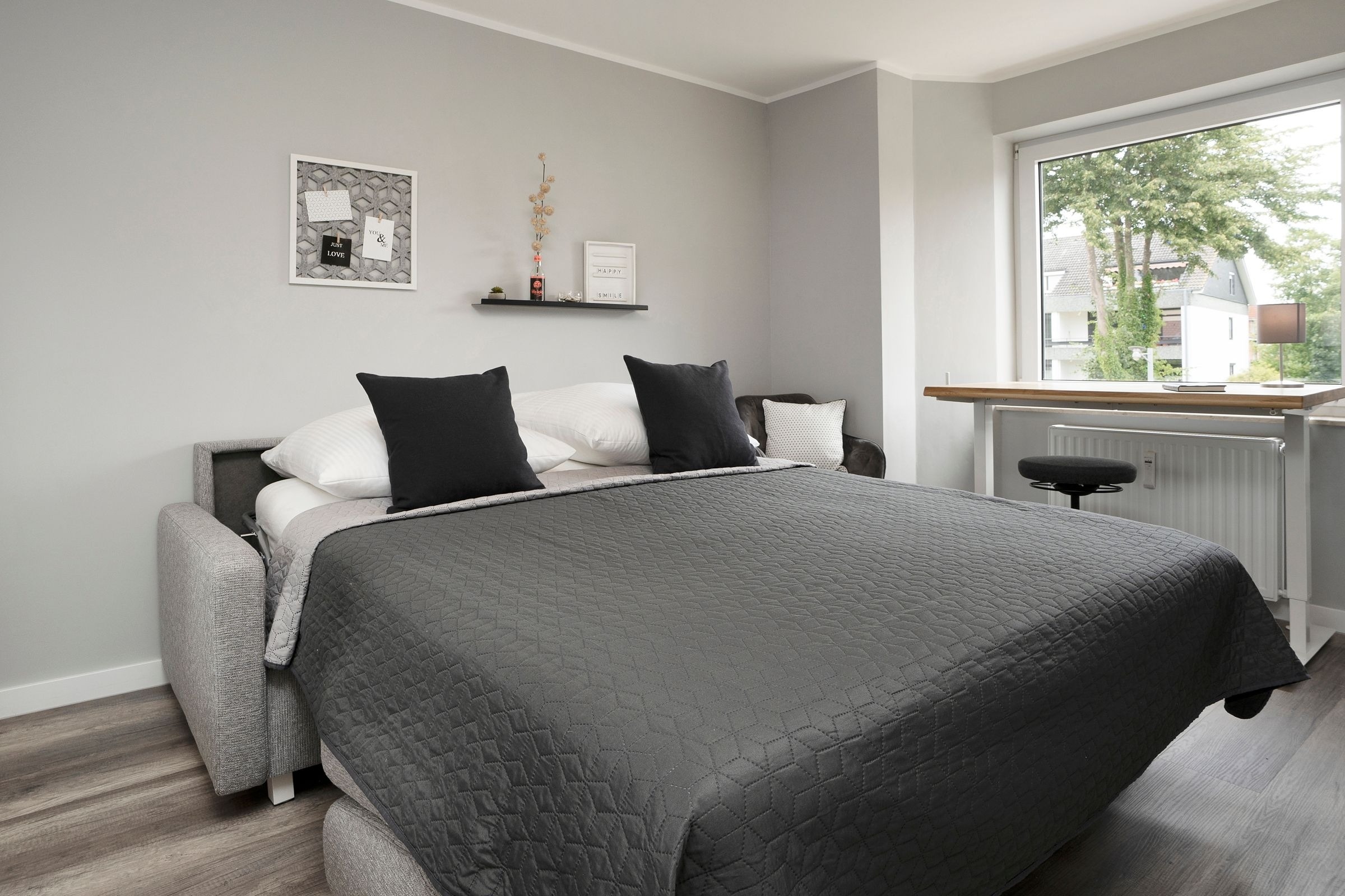 Schlafzimmer 2: 1 Schlafsofa (160x200 cm), Kleiderschrank, TV, Verdunkelung (elektr. Rollläden), Platz für Kinderreisebett vorhanden