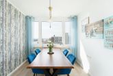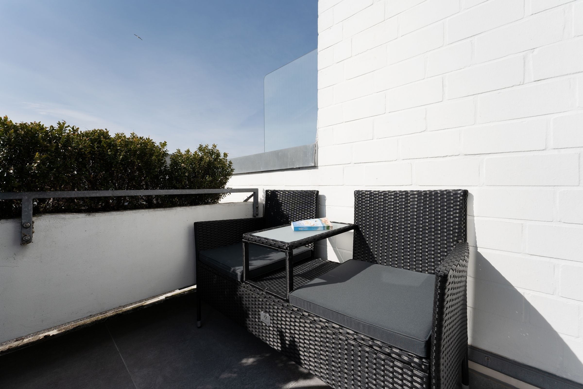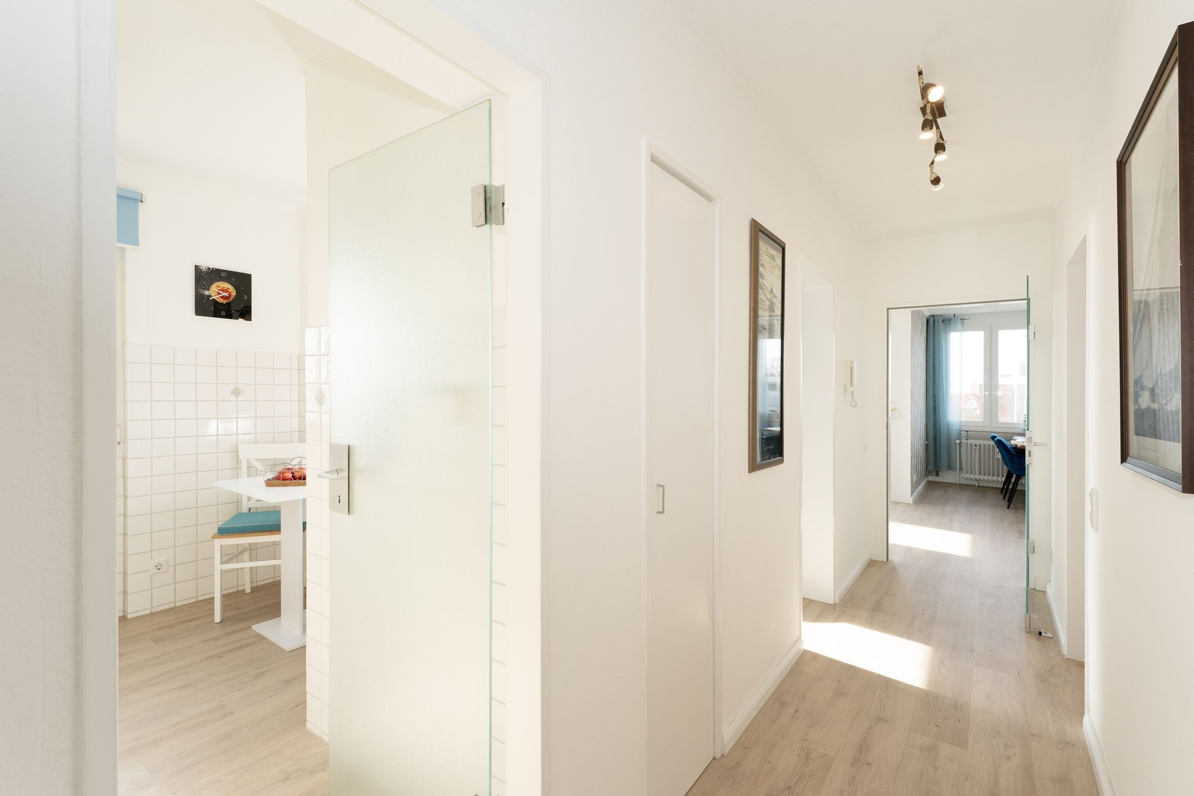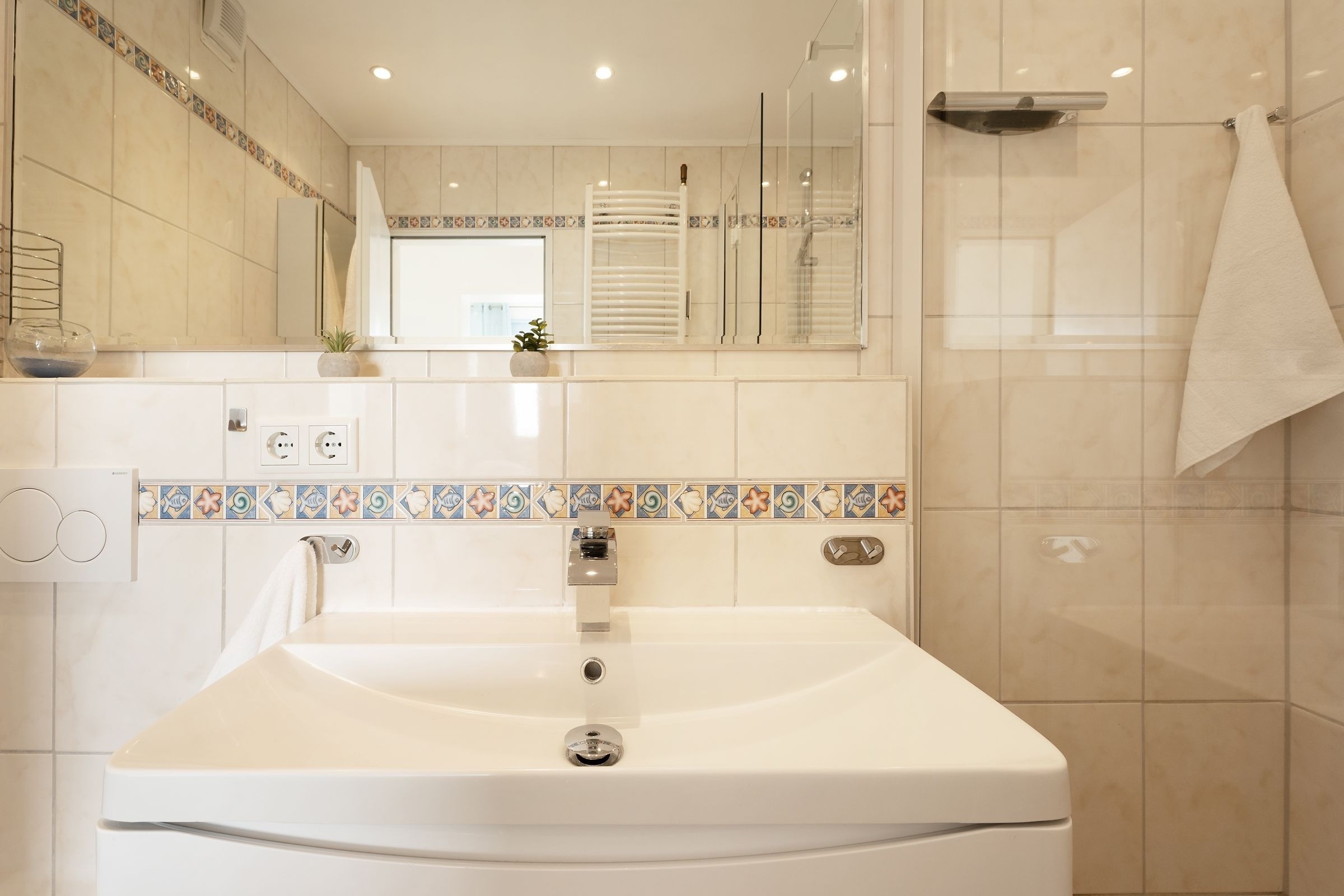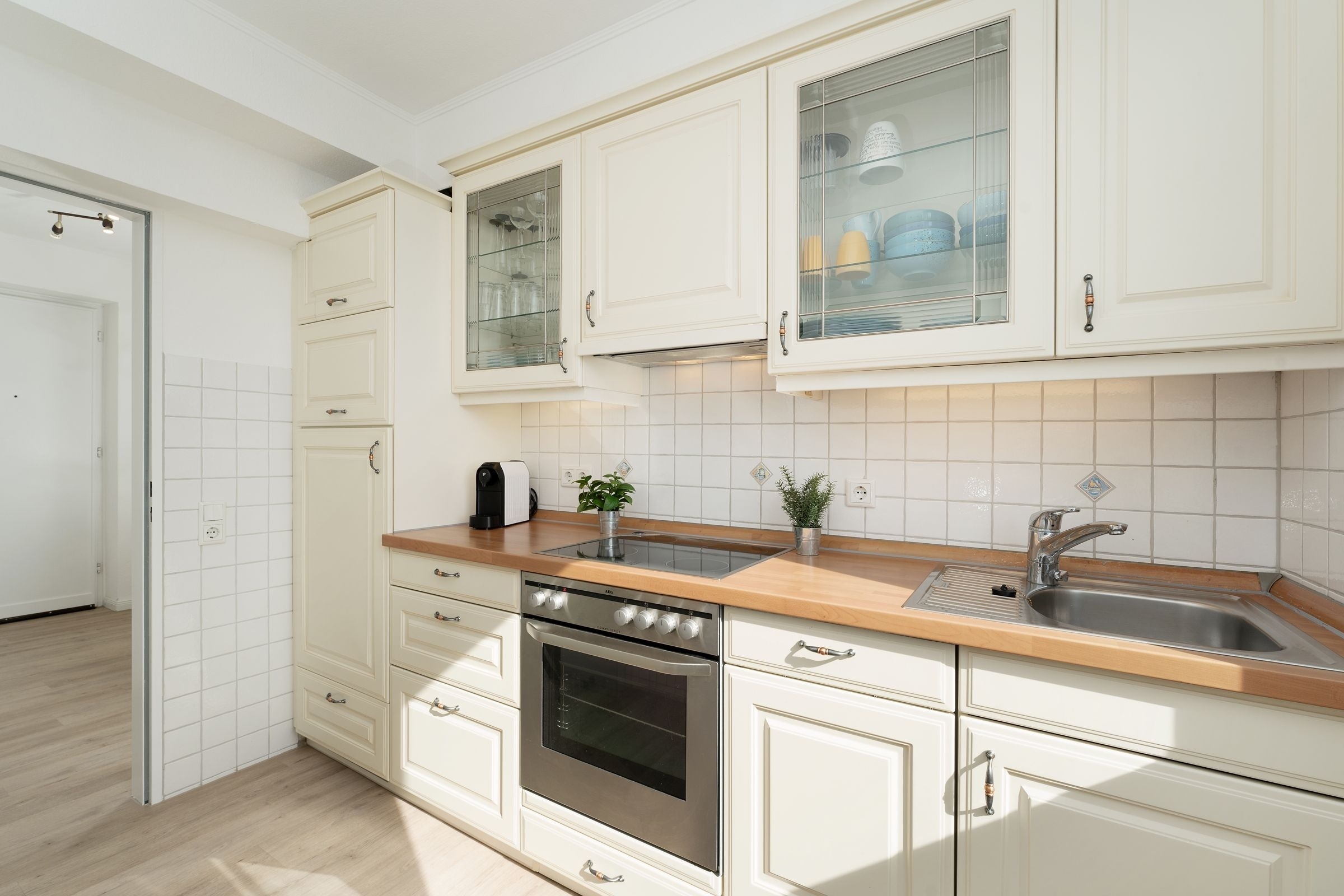 Ostsee pur. Das lichtdurchflutete Feriendomizil verwöhnt Sie mit einem herrlichen Meerblick aus allen Zimmern. Kommen Sie an, machen Sie es sich auf dem Sofa bequem und lassen Sie den Blick über die tiefblaue Ostsee schweifen. Ihre Speisen können Sie im angrenzenden Essbereich einnehmen, die separate Küche im Landhausstil ist sehr gut ausgestattet. Nach dem Essen lässt sich der Weitblick auf die Lübecker Bucht ideal auf dem großzügigen Ost-West-Balkon genießen. Das Schlafzimmer verfügt über 2 Einzelbetten (je 90x200 cm), zudem bietet das Schlafsofa im Wohnzimmer eine weitere Schlafmöglichkeit (ca. 134x197 cm). Das Duschbad mit Handtuchwärmer ist hell gefliest.
