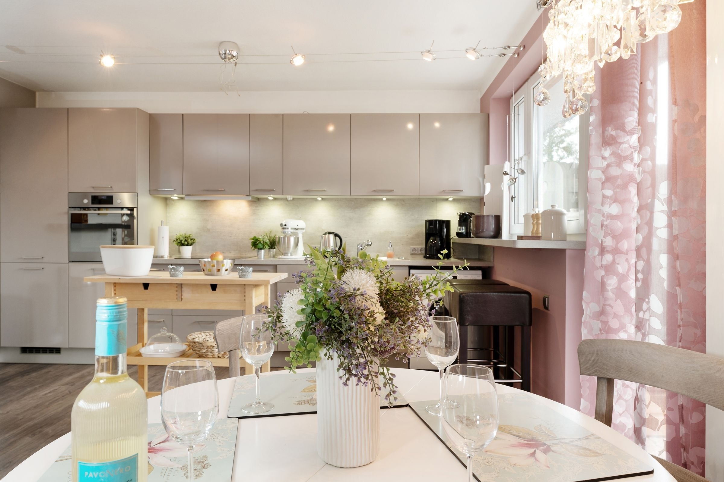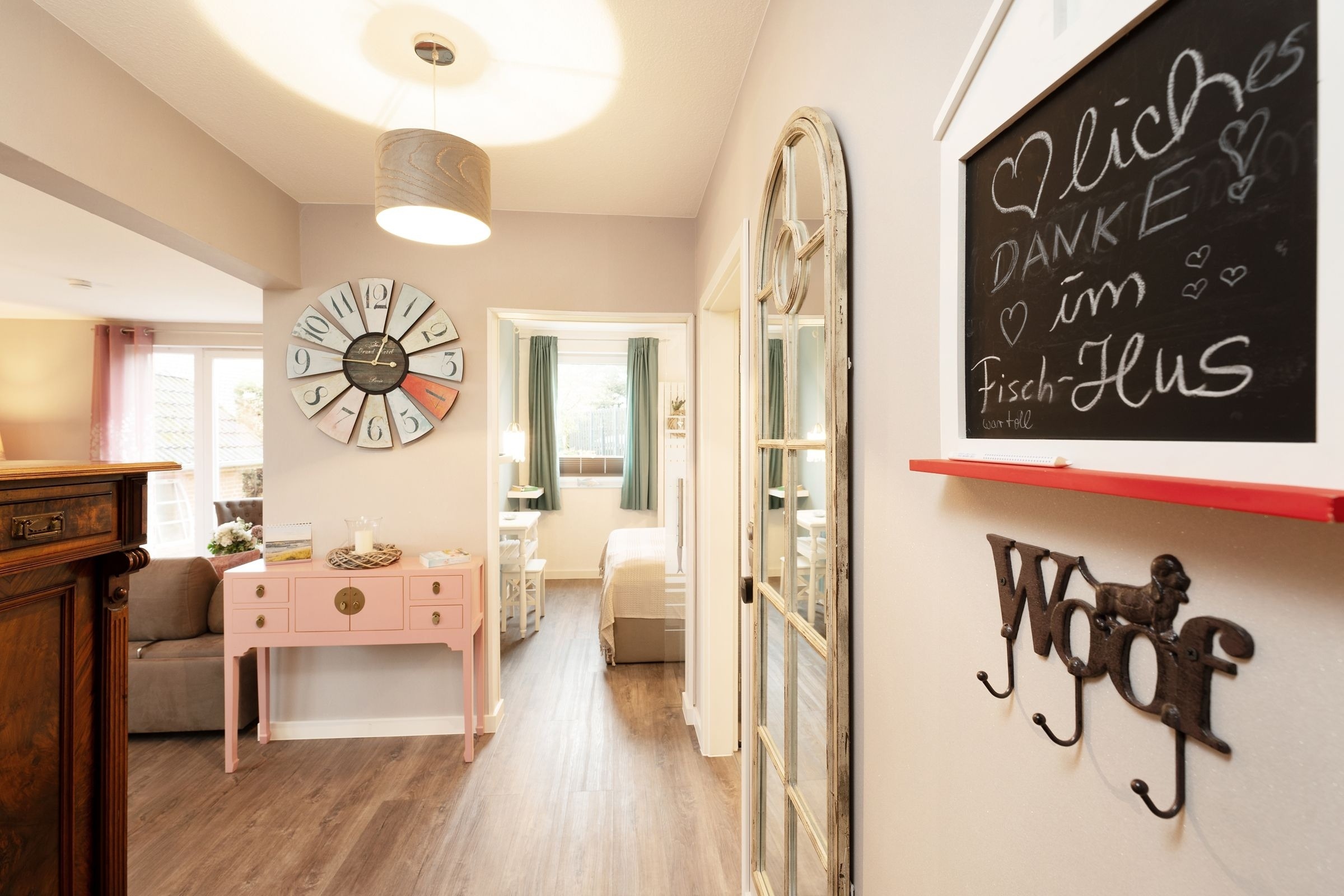Treten Sie ein – in der charmanten Wohnung Fischhus werden Sie sich sofort wohlfühlen. Hier trifft guter Geschmack auf Gemütlichkeit: die Farben der Einrichtung sind perfekt aufeinander abgestimmt und sorgen für eine herrliche Atmosphäre. Der lichtdurchflutete Wohnbereich bietet neben einer großen Sofalandschaft mit TV-Gerät noch weitere Sitzmöglichkeiten zum gemütlichen Verweilen. In den Wohnraum integriert ist die moderne Küche, die mit Induktions-Herd, Nespresso-Maschine und Geschirrspüler punktet und jedem Hobby-Koch ein Lächeln ins Gesicht zaubert. Wenn die Sonne scheint, lockt es Sie sicher auf eine der zwei Terrassen oder in den eingezäunten Garten. Entspannen Sie tagsüber auf den Sonnenliegen. Oder lassen Sie den Abend mit einem Glas Wein und leckerem Grillgut ausklingen. Für die Nacht steht für Sie ein Doppelbett (2x 80x200 cm) im Schlafzimmer bereit. Die liebevolle Einrichtung wird Ihnen sicher süße Träume bescheren. Ihre Urlaubsgarderobe findet im Kleiderschrank Platz. Das moderne Badezimmer mit Tageslicht, bodengleicher Dusche und Badewanne sowie Föhn, Handtuchwärmer und Kosmetikspiegel bietet sicher den Komfort, den man sich im Urlaub wünscht.