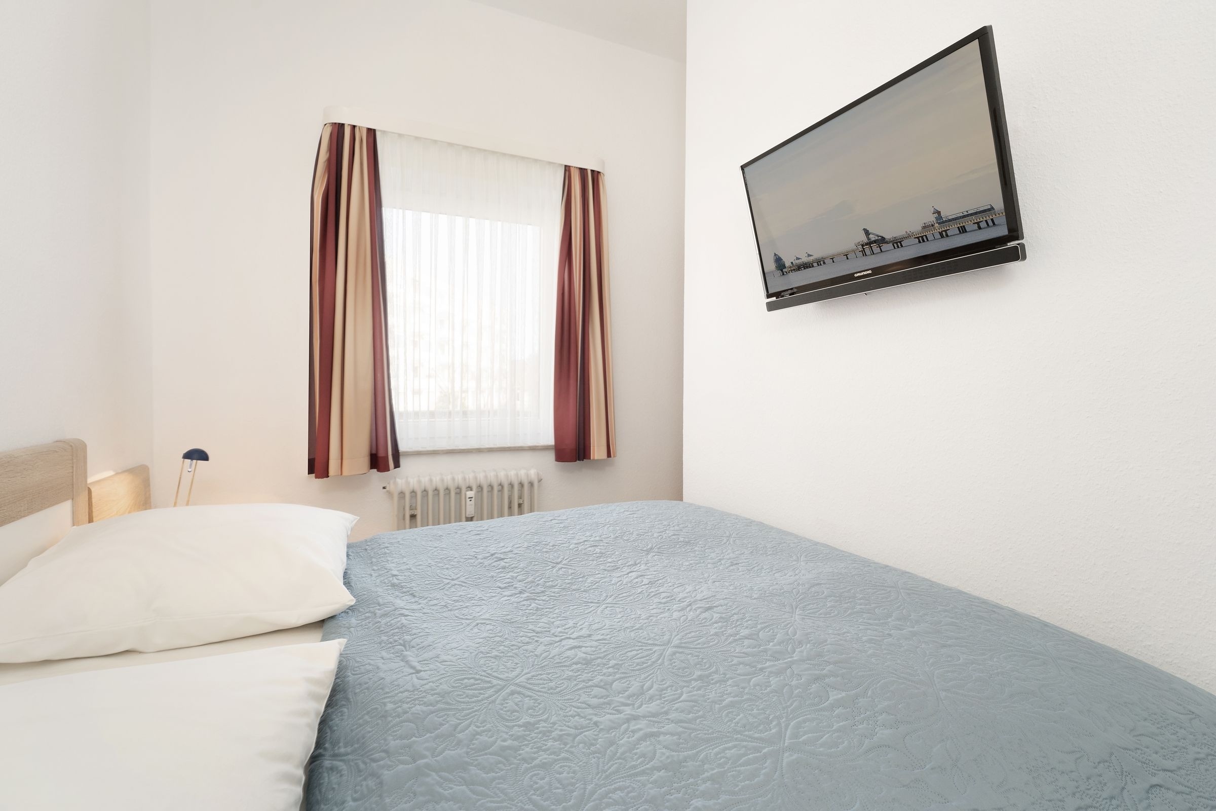 Schlafzimmer: Doppelbett (2x 90x200 cm), Kleiderschrank, TV