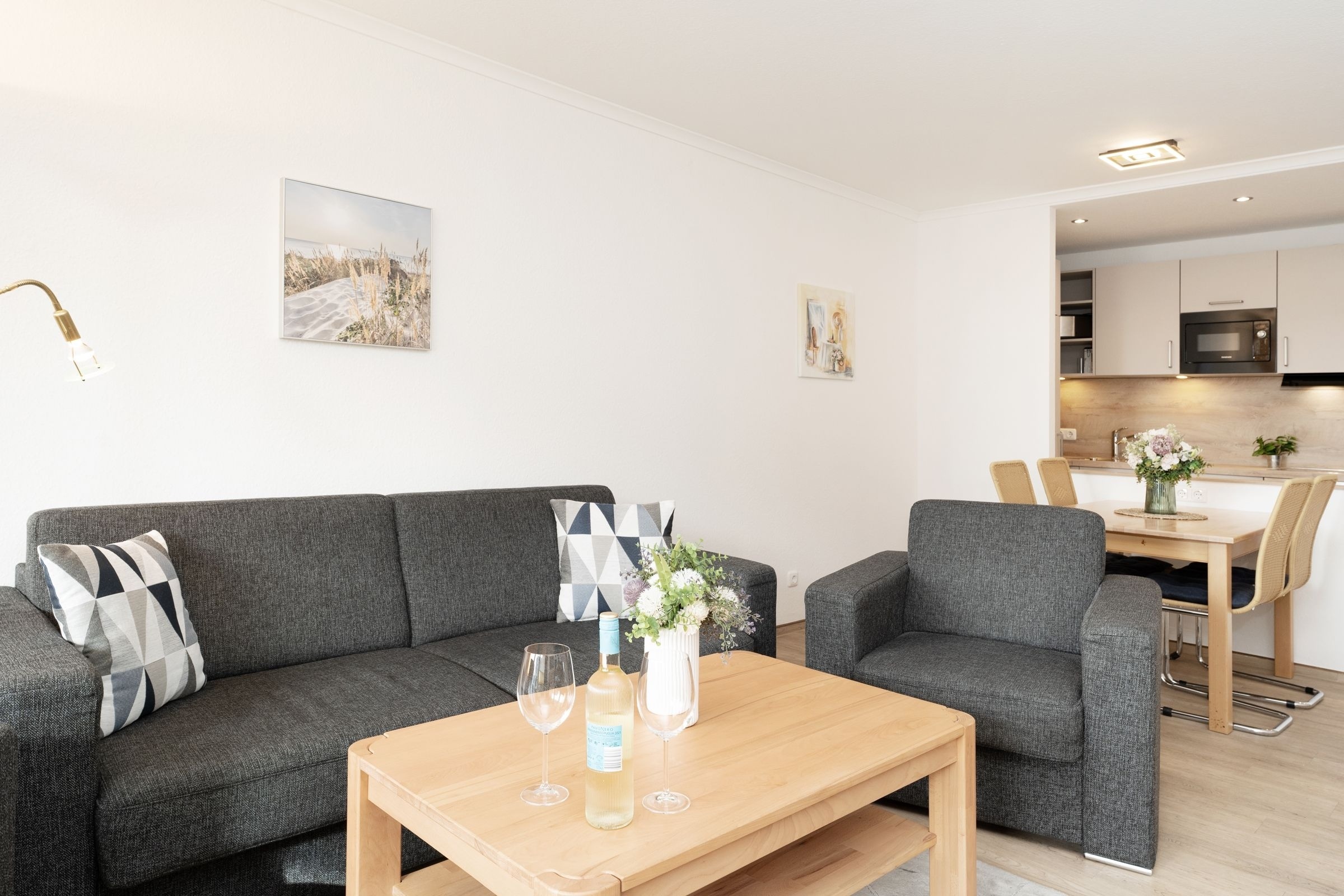 In der besten Lage von Grömitz: strandnahe 2-Zimmer-Ferienwohnung im 1. Stock mit Balkon, Fahrstuhl und einer Wohnfläche von 51 m² für bis zu 4 Personen.