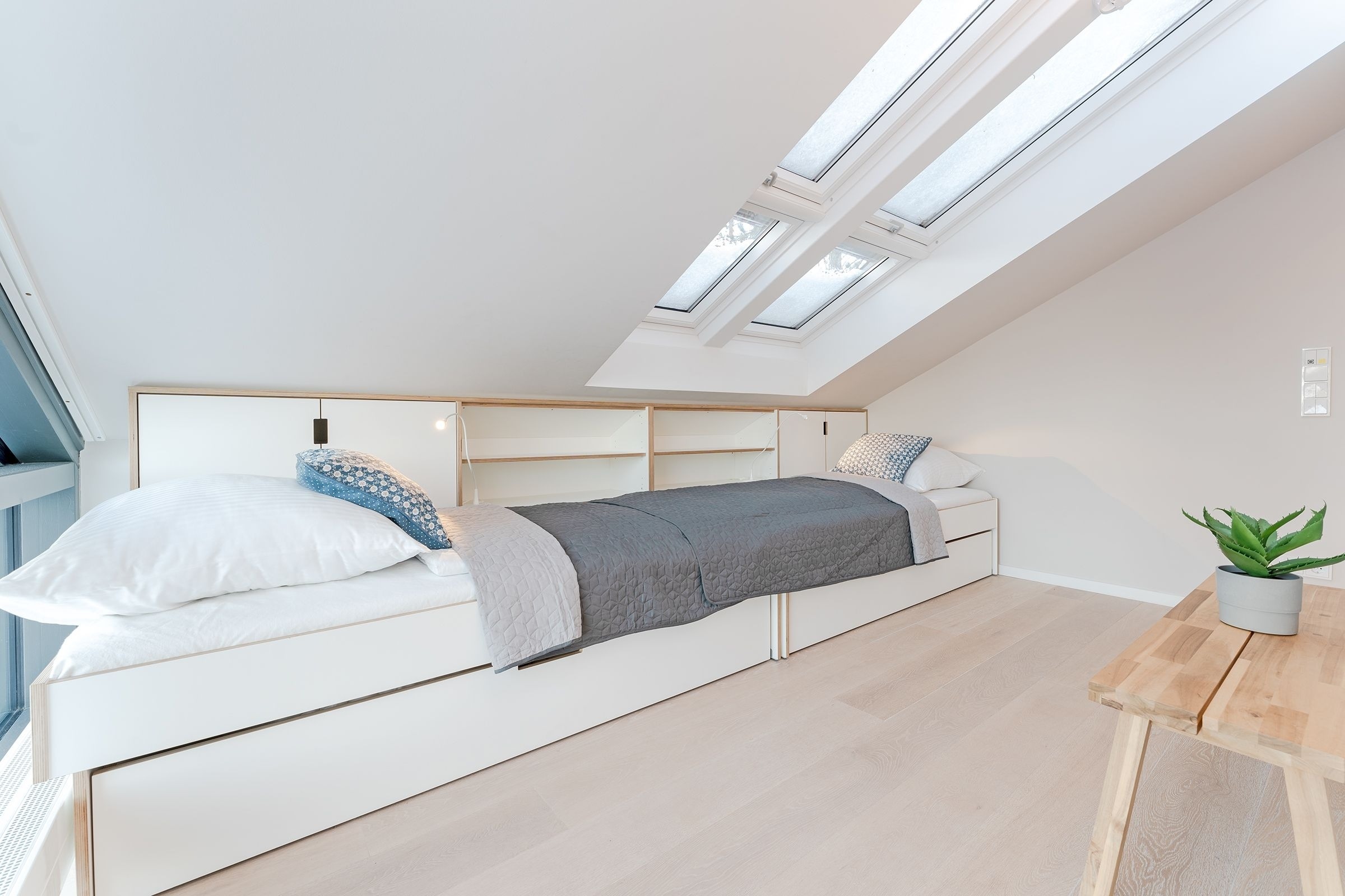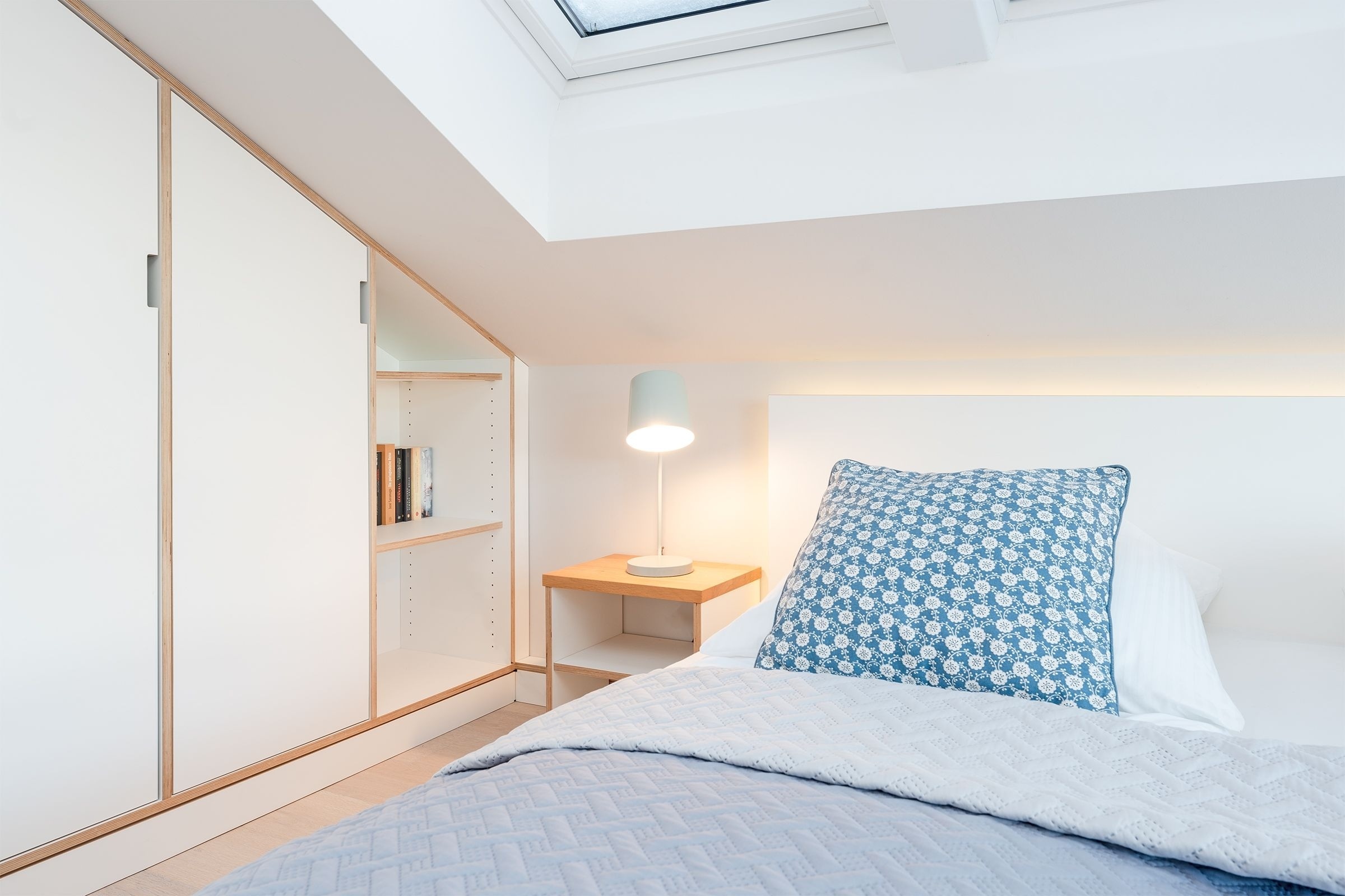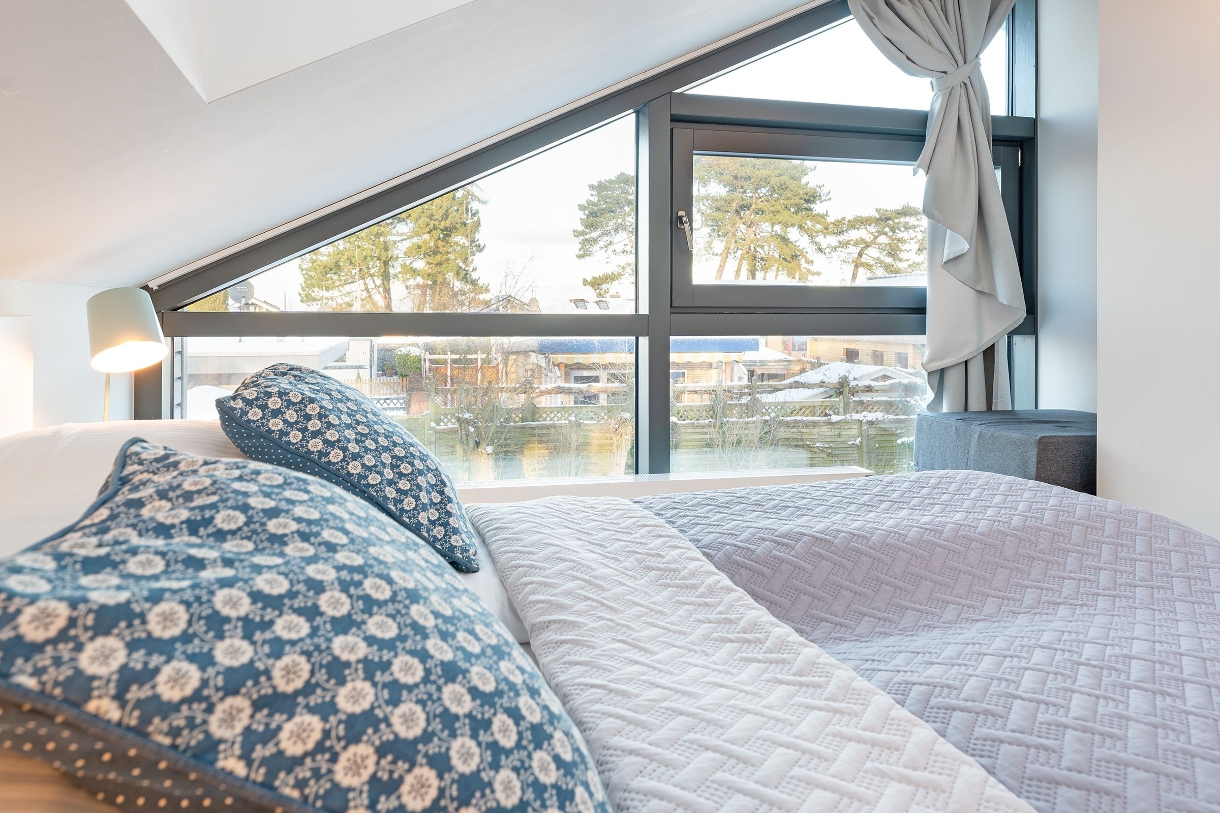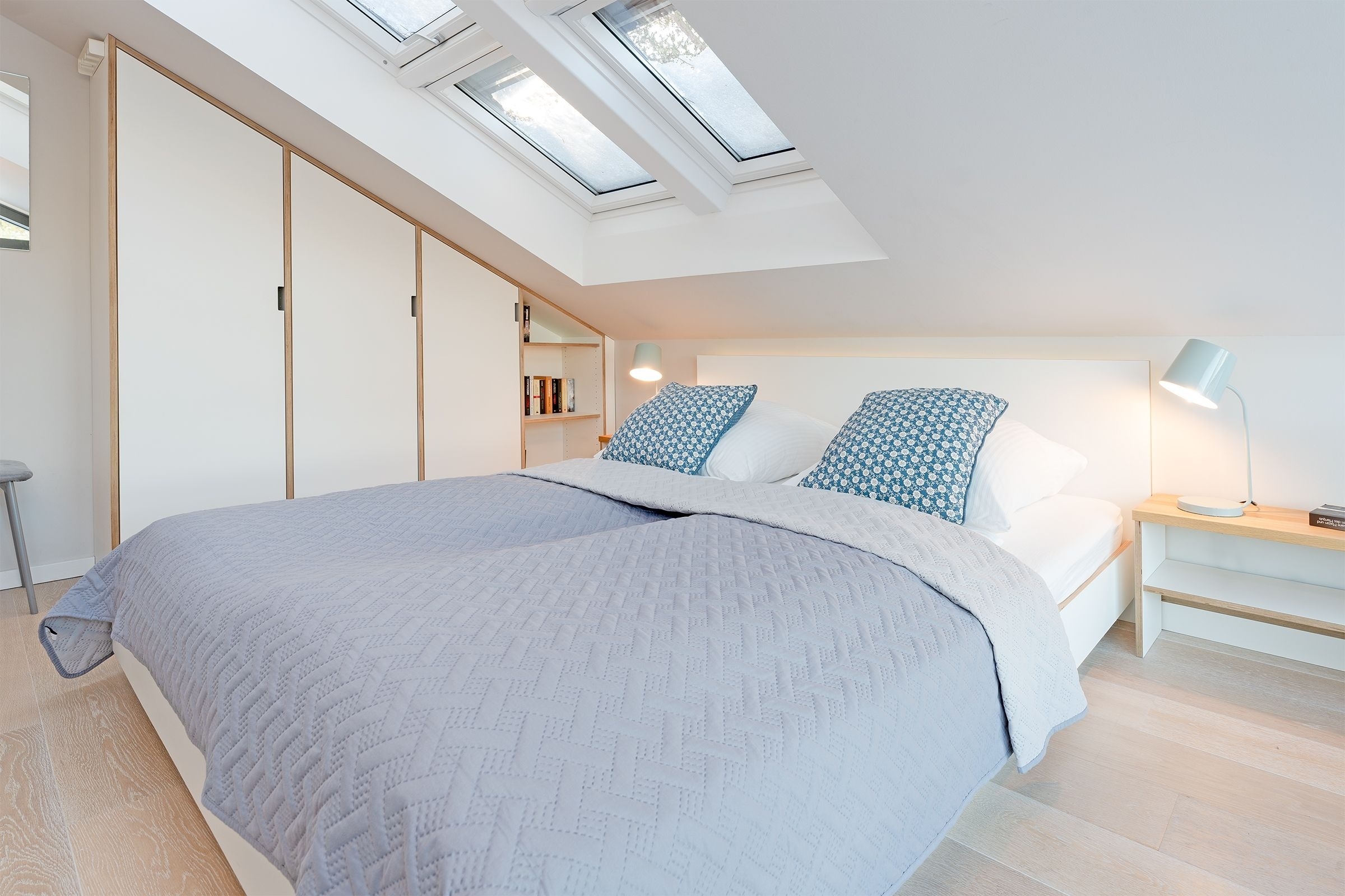 Schlafzimmer 1 (OG): 1 Doppelbett (180x200cm), Kleiderschrank, Verdunkelung Dachfenster: elektr. Rolläden, Verdunkelung Fenster: Vorhänge
