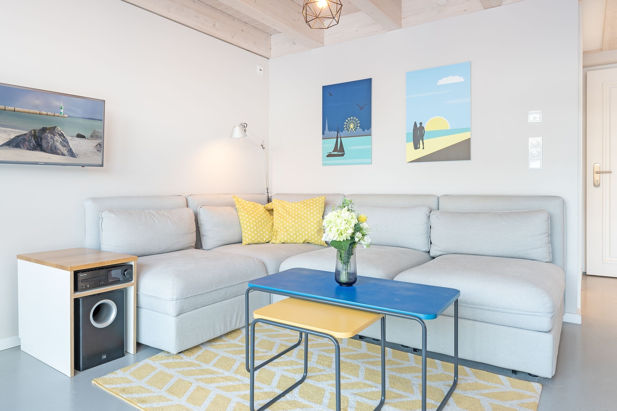 Urlaub der Extraklasse: stylisches Ferienhaus (ca. 70 m²) mit großer Terrasse und großem Garten in bester Lage von Travemünde auf der Priwall Halbinsel. 3 Zimmer und 2 Bäder auf 2 Etagen für bis zu 4 Personen.