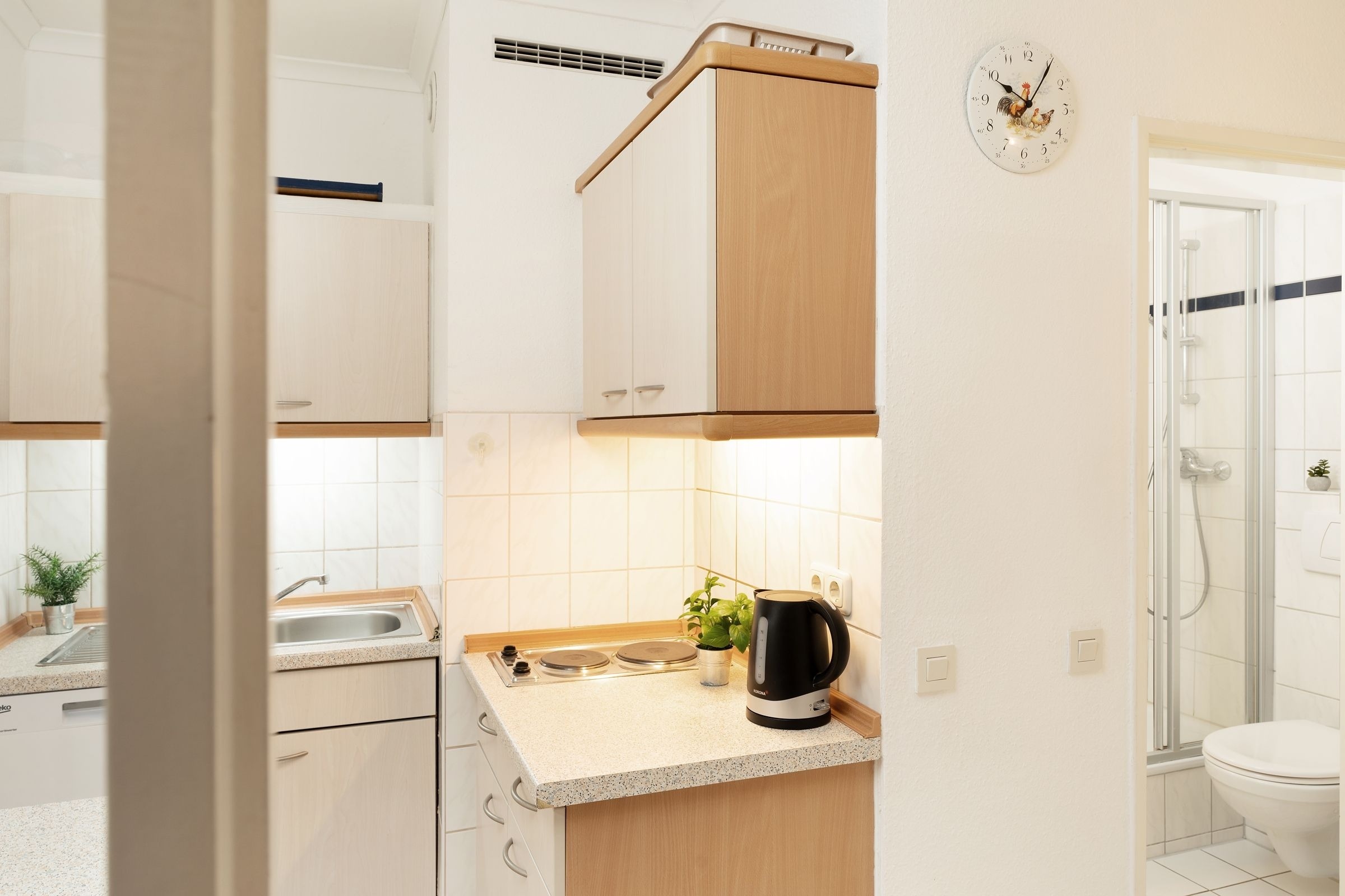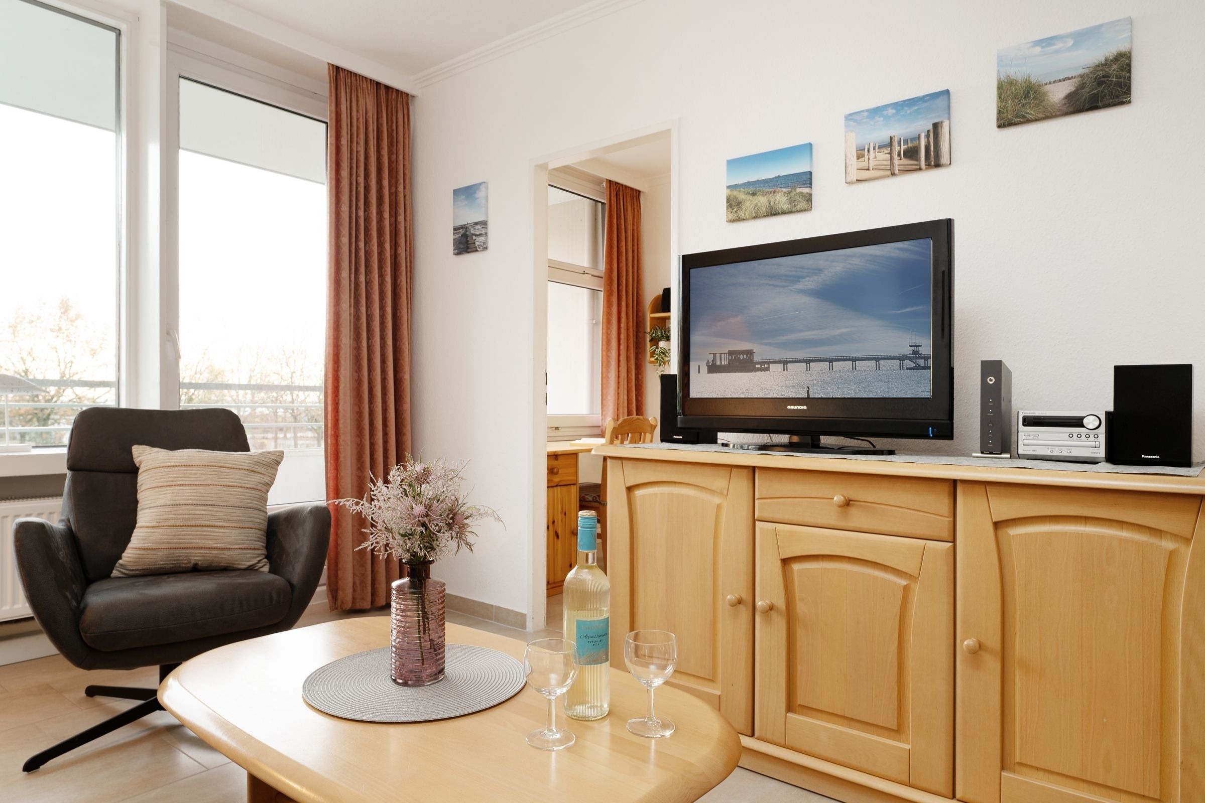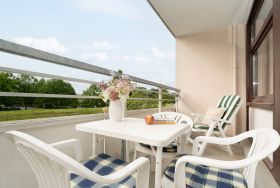 In bester Lage von Kellenhusen: strandnahe 2-Zimmer-Ferienwohnung im 1. Stock mit Balkon, Fahrstuhl und einer Wohnfläche von ca. 42 m² für bis zu 3 Personen.