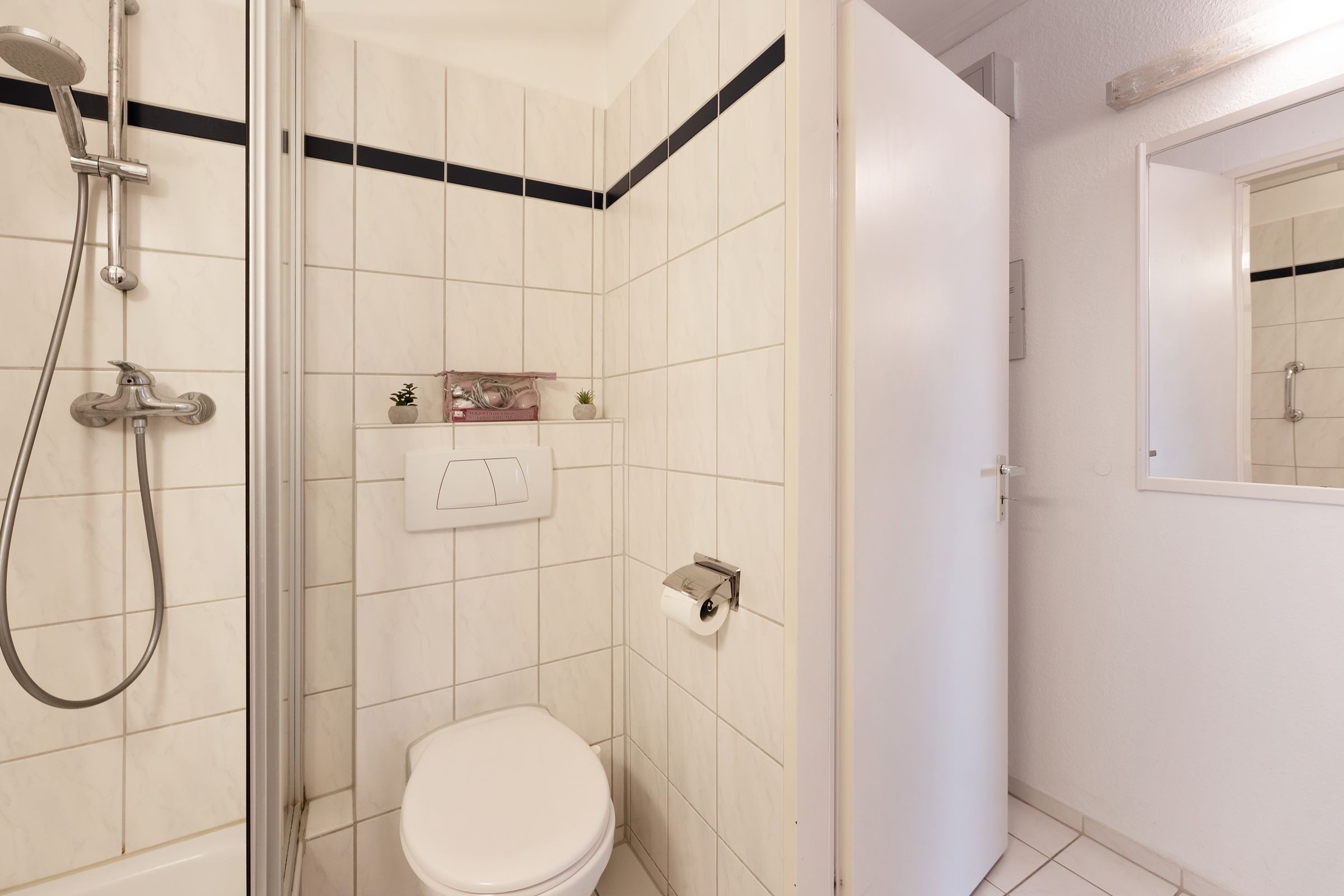 Klein und fein – so präsentiert sich die Wohnung mit dem schönen Namen Zwei Möwen in der Ferienwohnanlage Leuchtturmweg. Das Besondere: Der zauberhafte Ostseestrand ist nur rund 100 Meter entfernt. Die durchdachte Aufteilung des Wohnbereichs wird Sie überzeugen: Im vorderen Bereich versprechen ein Sofa sowie ein Sessel entspannte Stunden vor dem TV-Gerät. Direkt dahinter haben Sie Zutritt auf den möblierten Balkon. Dieser ist überdacht, sodass Sie die Ostseeluft gut geschützt genießen können. Die vom Wohnbereich abgetrennte Küche mit Spülmaschine gestaltet die Selbstversorgung angenehm. Im hinteren Bereich stehen für die Nacht 2 Einzelbetten (je 90x190 cm) für Sie bereit. Lange Vorhänge sorgen für einen Schlafplatz mit Privatsphäre. Das separate Schlafzimmer ist mit einem Einzelbett (90x200 cm) ausgestattet. Das innenliegende Duschbad ist hell gefliest.