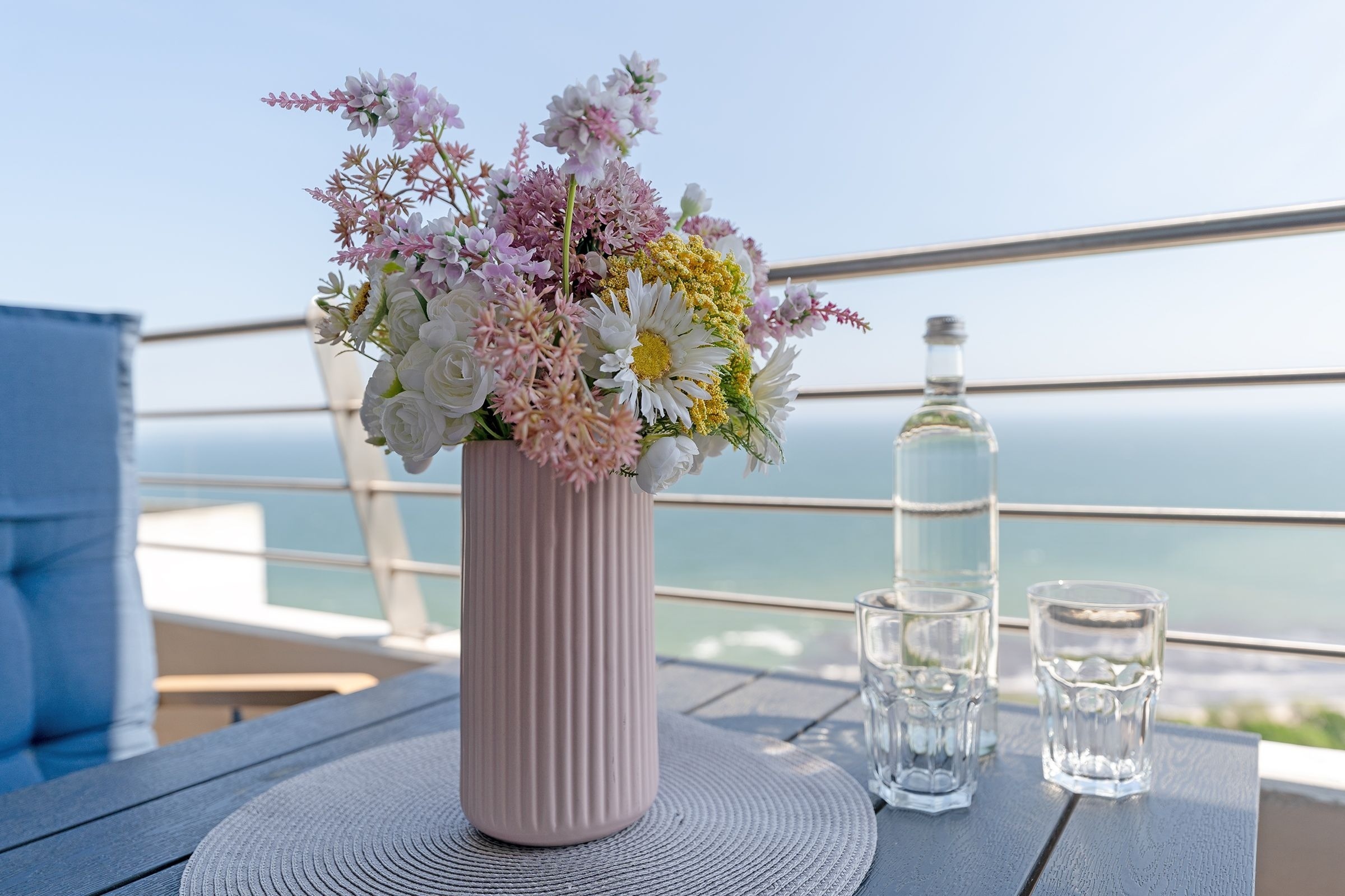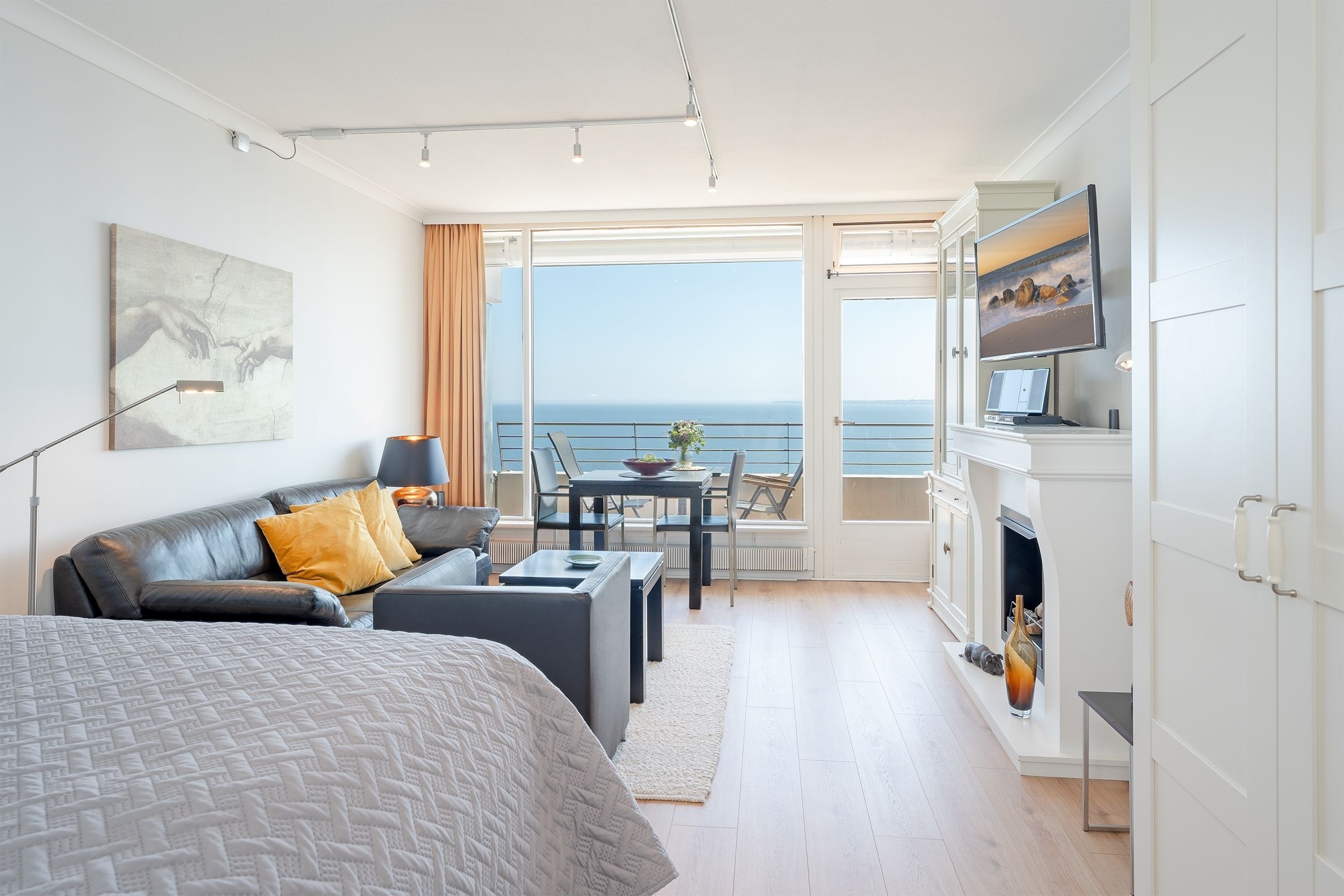 Hier wollen Sie nicht mehr weg - die lichtdurchflutete Ferienunterkunft verzaubert mit einer fantastischen Perspektive auf unsere wunderschöne Ostsee. Sowohl beim Frühstücken am Esstisch als auch beim gemütlichen Fernsehabend haben Sie immer das Meer im Blick. Auf dem überdachten Balkon lauschen Sie dem beruhigenden Rauschen der Wellen. In der kleinen, aber gut ausgestatteten Küche können Sie sich kleine Snacks zubereiten, falls Sie einmal nicht auswärts essen gehen möchten. Nach einem ereignisreichen Tag am Strand kommen Sie dann abends im komfortablen Doppelbett (ca. 160x200cm) zur Ruhe und tanken Kraft für den neuen Tag. Das moderne Badezimmer mit großer Dusche verspricht einen schwungvollen Start in den Tag.