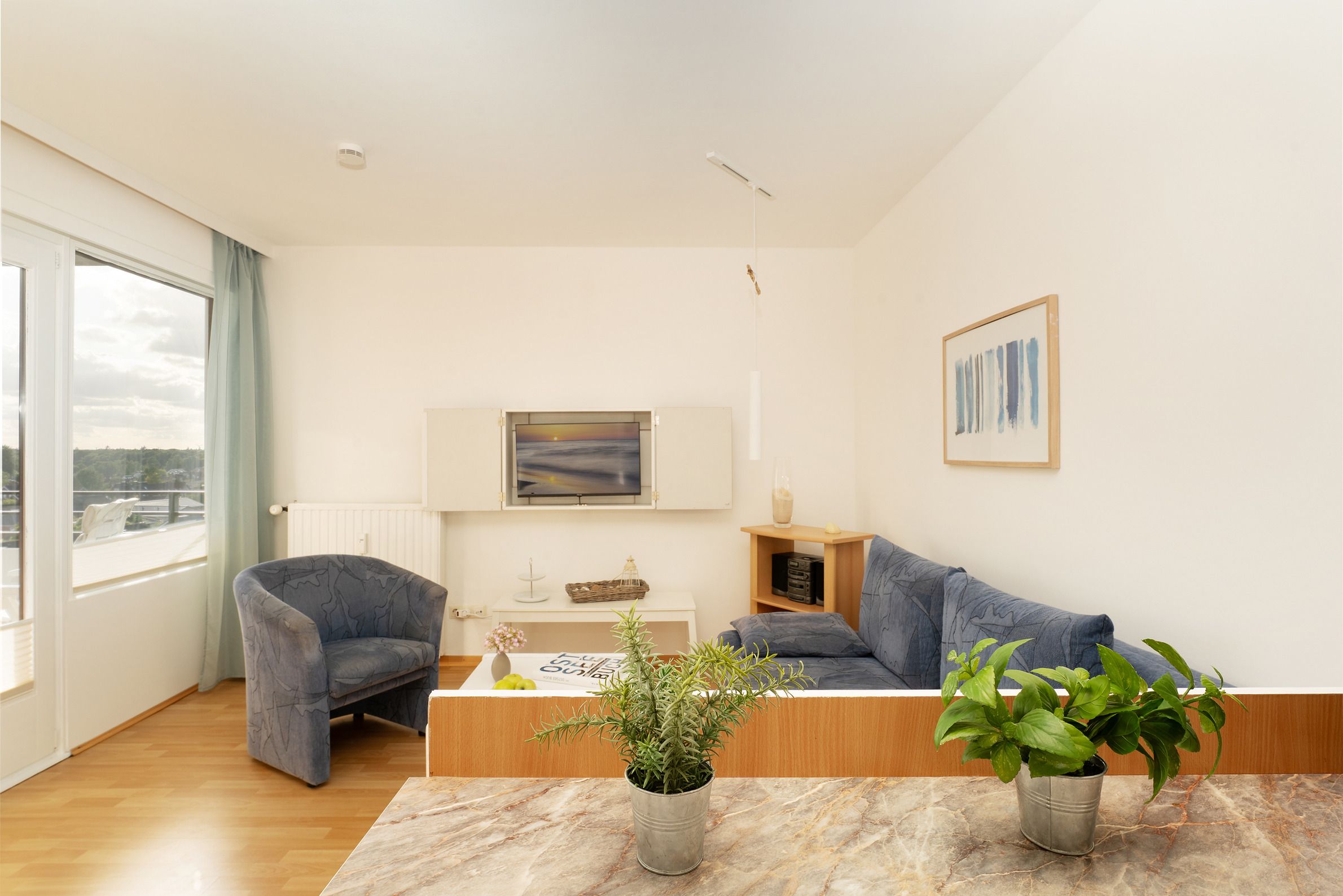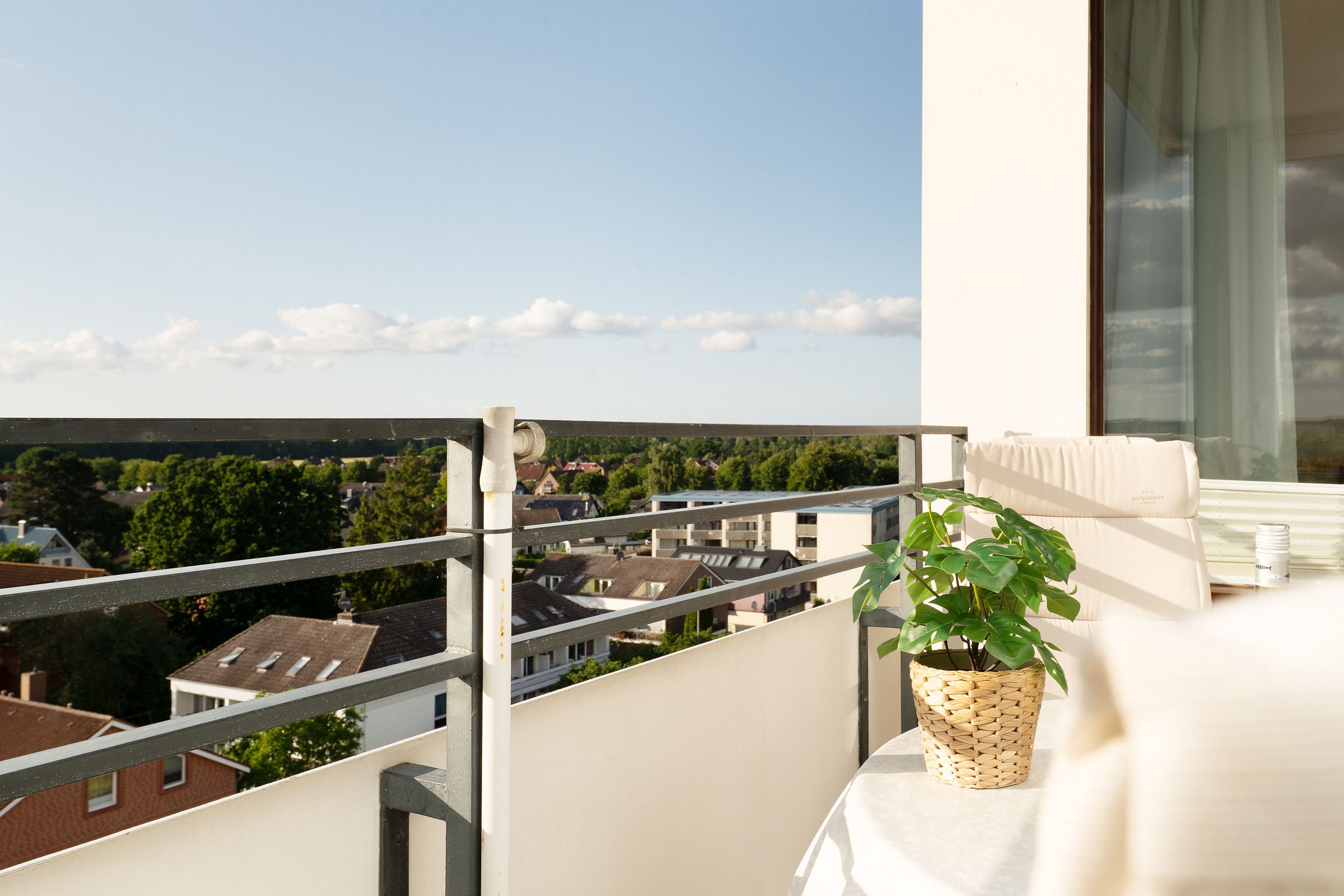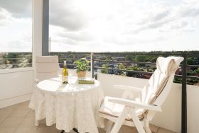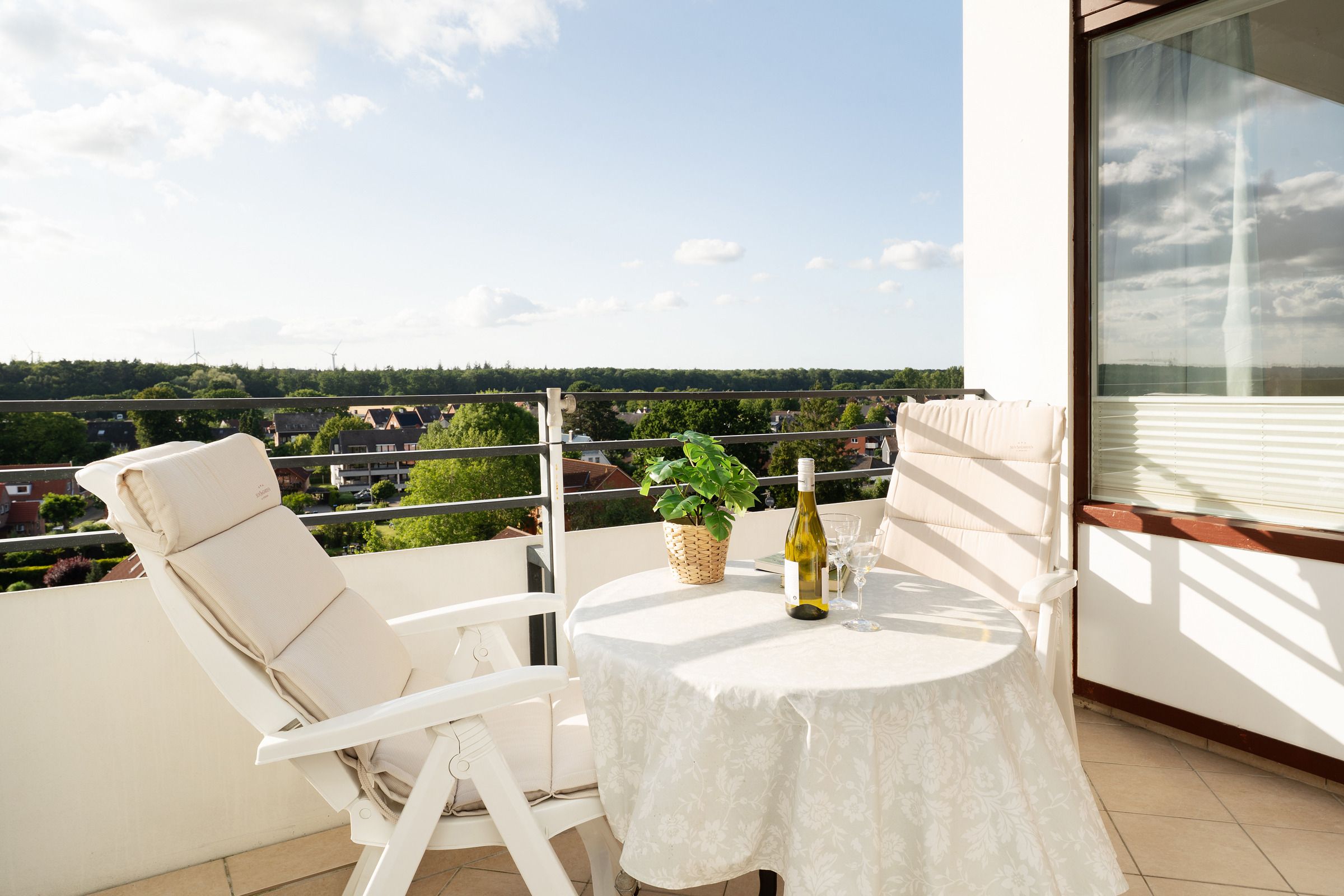Urlaub in bester Lage von Kellenhusen: strandnahe, ca. 39 m² große 2-Zimmer-Ferienwohnung im Haus Meeresblick im 8. Stock mit Balkon für bis zu 2 Personen.