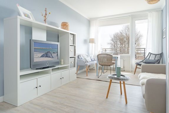 Das Hygge-Glück liegt in den Strandappartements am Leuchtturmweg – denn so heißt die charmante Ferienwohnung, die Ihnen eine gemütliche, glückliche Auszeit verspricht. Die Einrichtung wurde liebevoll ausgesucht. Entspannen Sie auf dem kuscheligen Sofa oder auf dem überdachten, möblierten Balkon mit Meerblick. Genießen Sie die gute Seeluft und lauschen Sie den Wellen. Während Ihres Aufenthalts können Sie sich dank der funktional ausgestatteten Kochnische mit Nespresso-Maschine prima selbst versorgen. Süß träumen werden Sie im Doppelbett (160x200 cm) im hinteren Bereich des Wohnzimmers oder auf dem Schlafsofa (140x200 cm) im separaten Schlafzimmer. Das innenliegende Duschbad bringt Sie gut in den neuen Tag. Auf geht es an den Strand, denn die Ostsee ist nur rund 100 Meter entfernt.