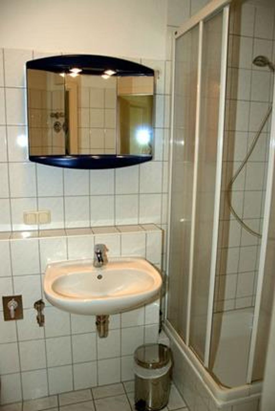 Das separate Schlafzimmer ist mit einem Doppelbett und einem Kleiderschrank möbliert und im Badezimmer stehen Ihnen eine Dusche, Waschtisch und WC zur Verfügung.