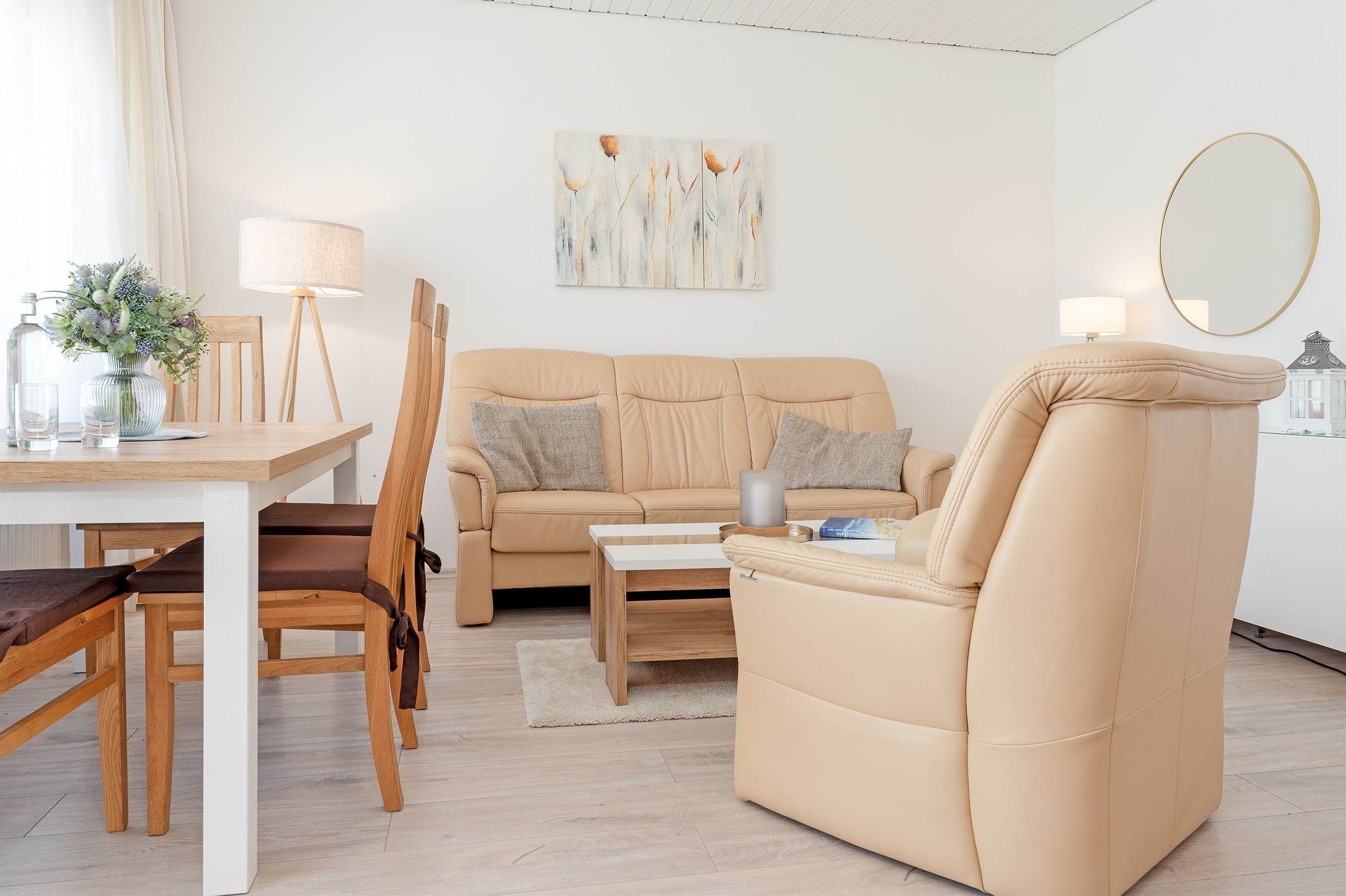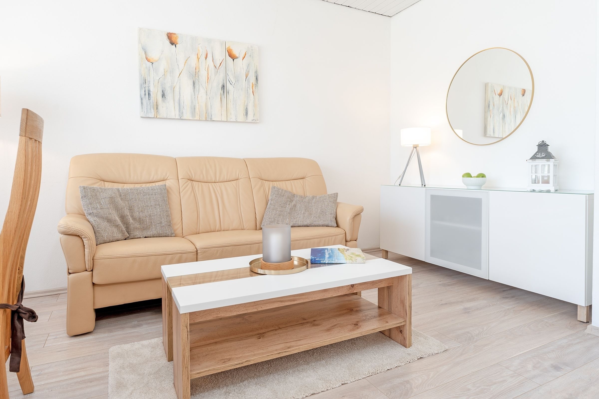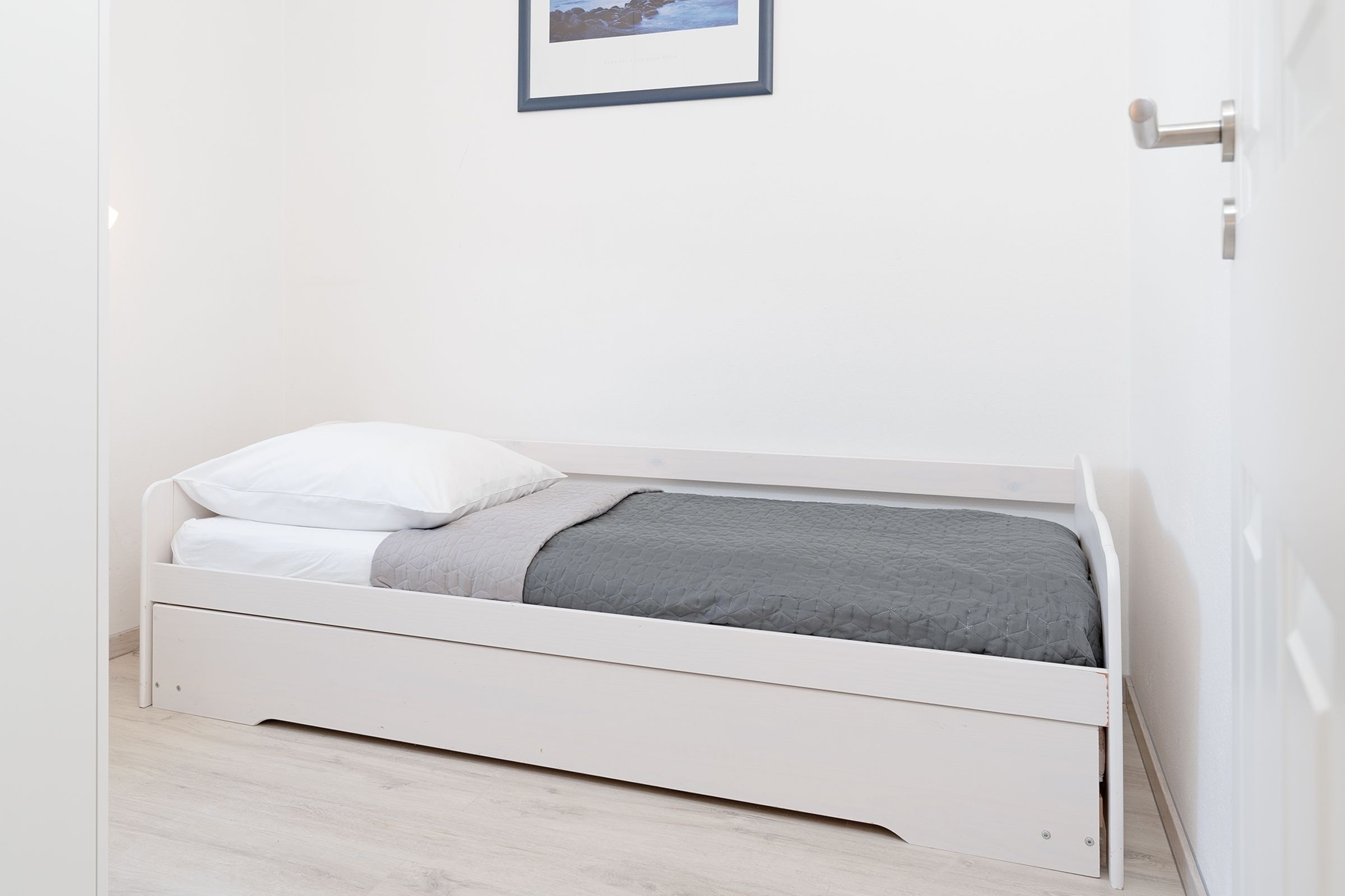 Herzlich willkommen im Urlaub! Die schöne und durchdachte Aufteilung der Wohnung Meeresluft im Haus Godewind wird Sie begeistern: Im gemütlichen Wohn-/Schlafbereich empfängt Sie eine bequeme Polstergarnitur für entspannte Stunden vor dem TV-Gerät. Hier haben Sie auch Zutritt auf den möblierten Balkon, den Sie dank der Überdachung bei jedem Wetter gut geschützt nutzen können. Für die Nacht steht Ihnen im Wohnzimmer im räumlich leicht abgetrennten Bereich ein komfortables Boxspringbett (180x200 cm) zur Verfügung. Im kleinen Schlafzimmer steht ein Einzelbett (90x200 cm). Die kleine Küche punktet mit einer Espressomaschine (Senseo) und einem Geschirrspüler. Das moderne, tageslichthelle Duschbad verfügt über einen Handtuchwärmer.