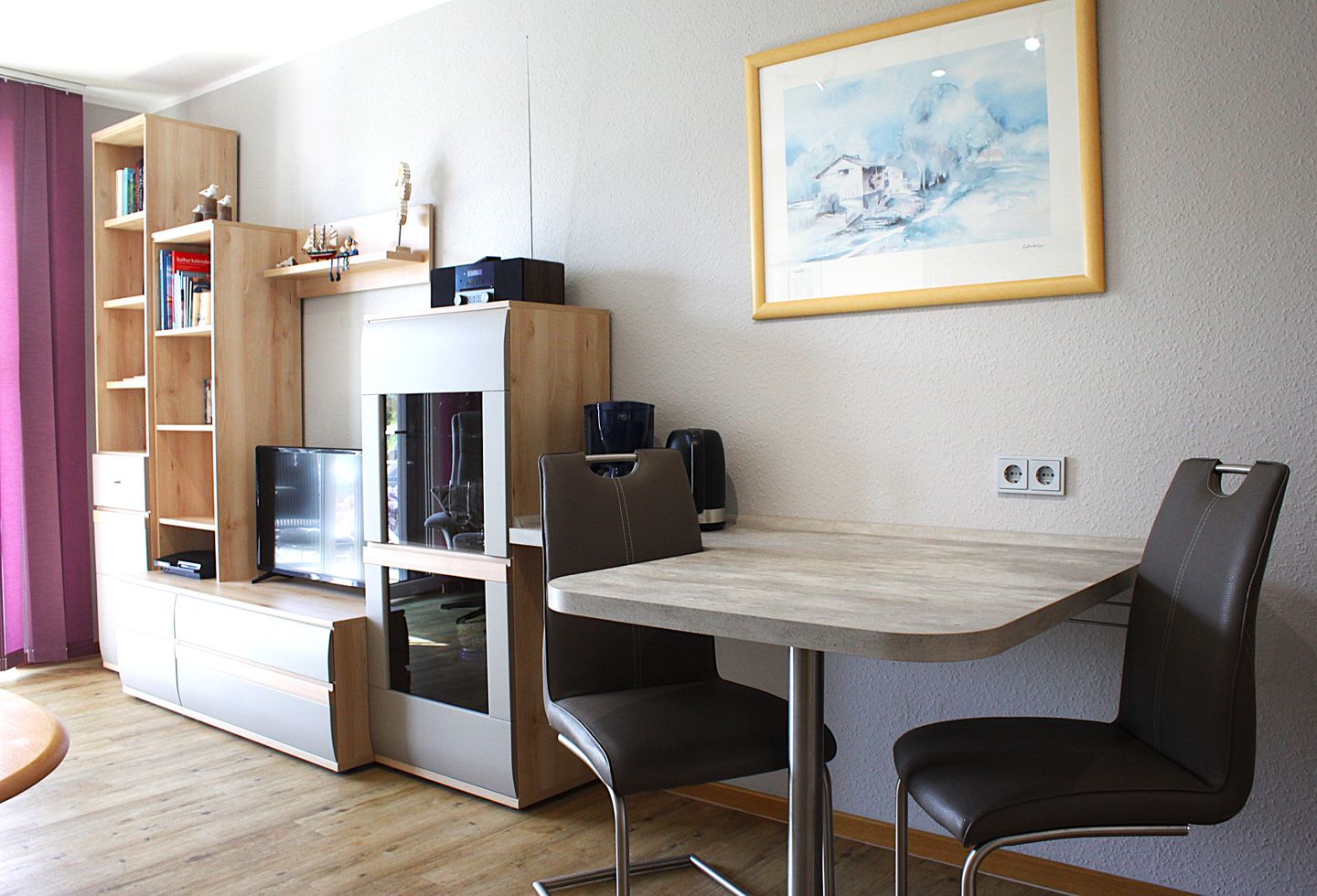Diese Ferienwohnung ist für 2 Personen komfortabel eingerichtet und ermöglicht einen schönen Urlaub am Hafen von Kirchdorf auf Poel. Der gemütliche Wohn- und Essbereich verfügt über eine Sofaecke mit TV-Gerät, DVD-Player, Playstation 3, einen Esstisch und Zugang zum möblierten Balkon. Von hier haben Sie einen eingeschränkten Blick auf den Hafen von Kirchdorf und einen freien Blick auf den Hinterhof der Appartementanlage.